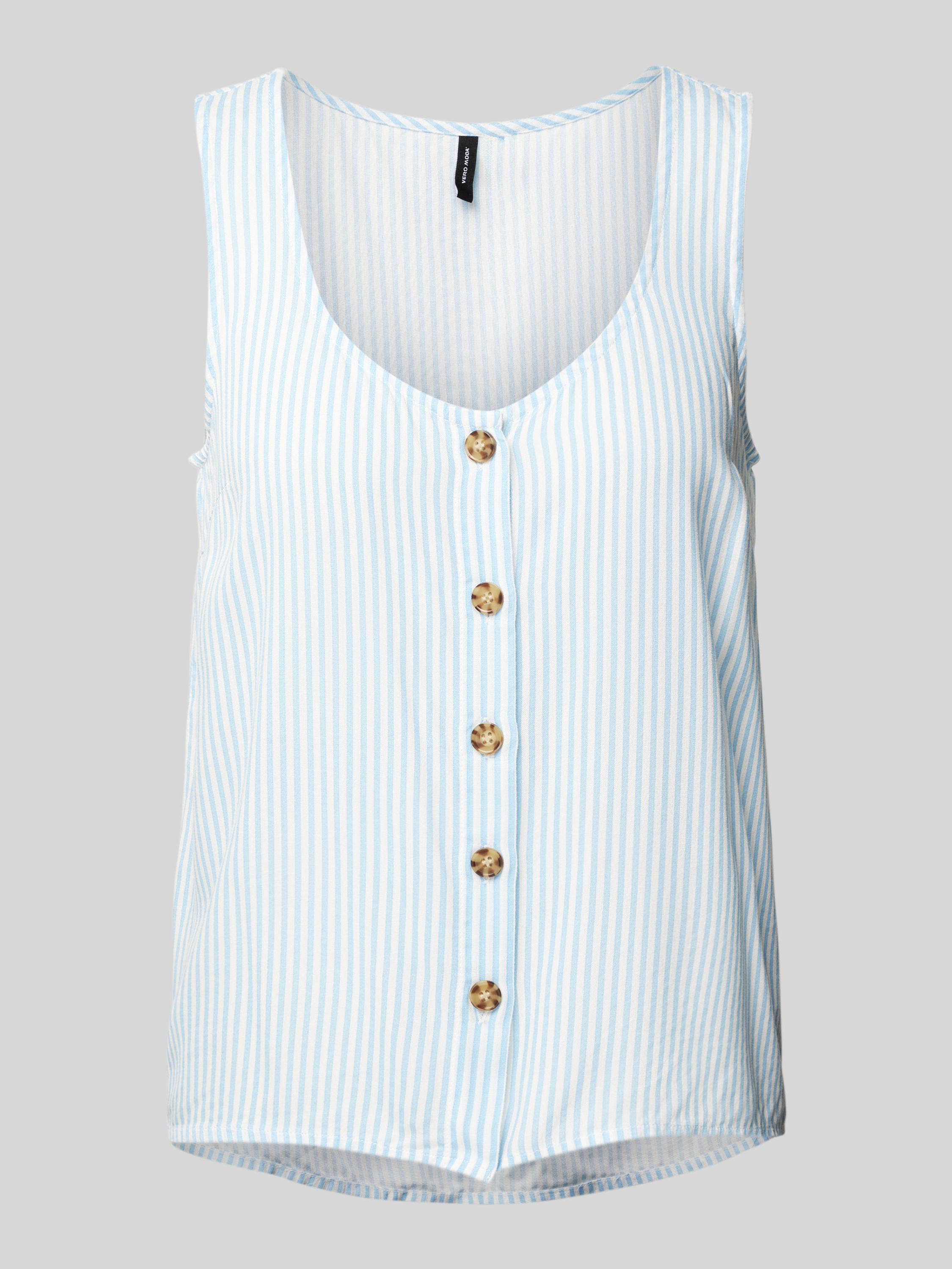 Das Blusentop von Vero Moda, Modell 'Bumpy', beeindruckt durch ein ansprechendes Allover-Muster und einen klassischen Crew Neck. Dank der Regular Fit Passform und dem feinen Twillgewebe aus reiner Viskose bietet es angenehmen Tragekomfort. Zierknöpfe runden das ärmellose Design harmonisch ab.
