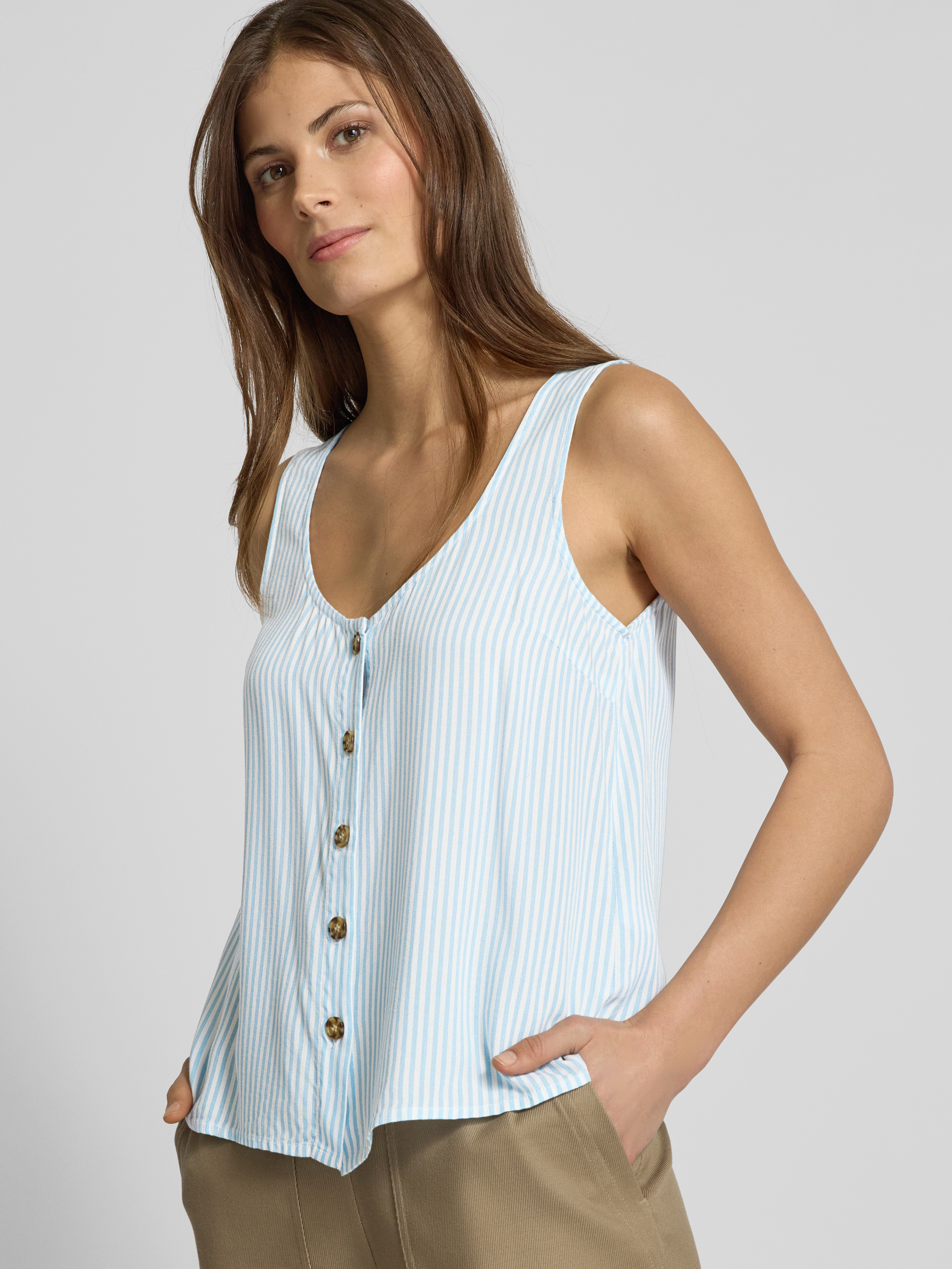 Vero ModaRegular Fit Blusentop aus reiner Viskose Modell 'BUMPY' in hellblau