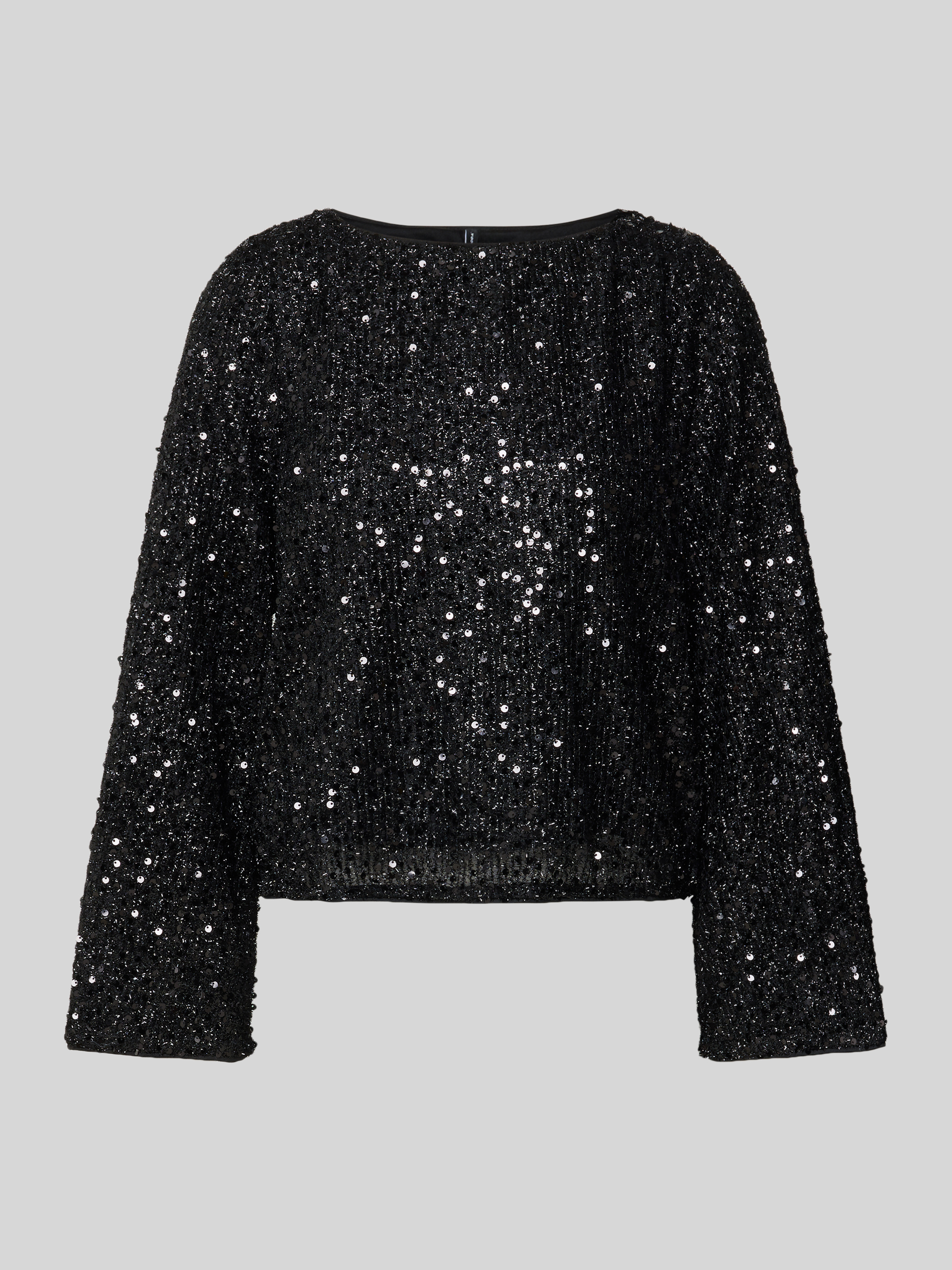 Vero ModaRegular Fit Langarmshirt mit Pailletten-Besatz Modell 'NAJA' in black