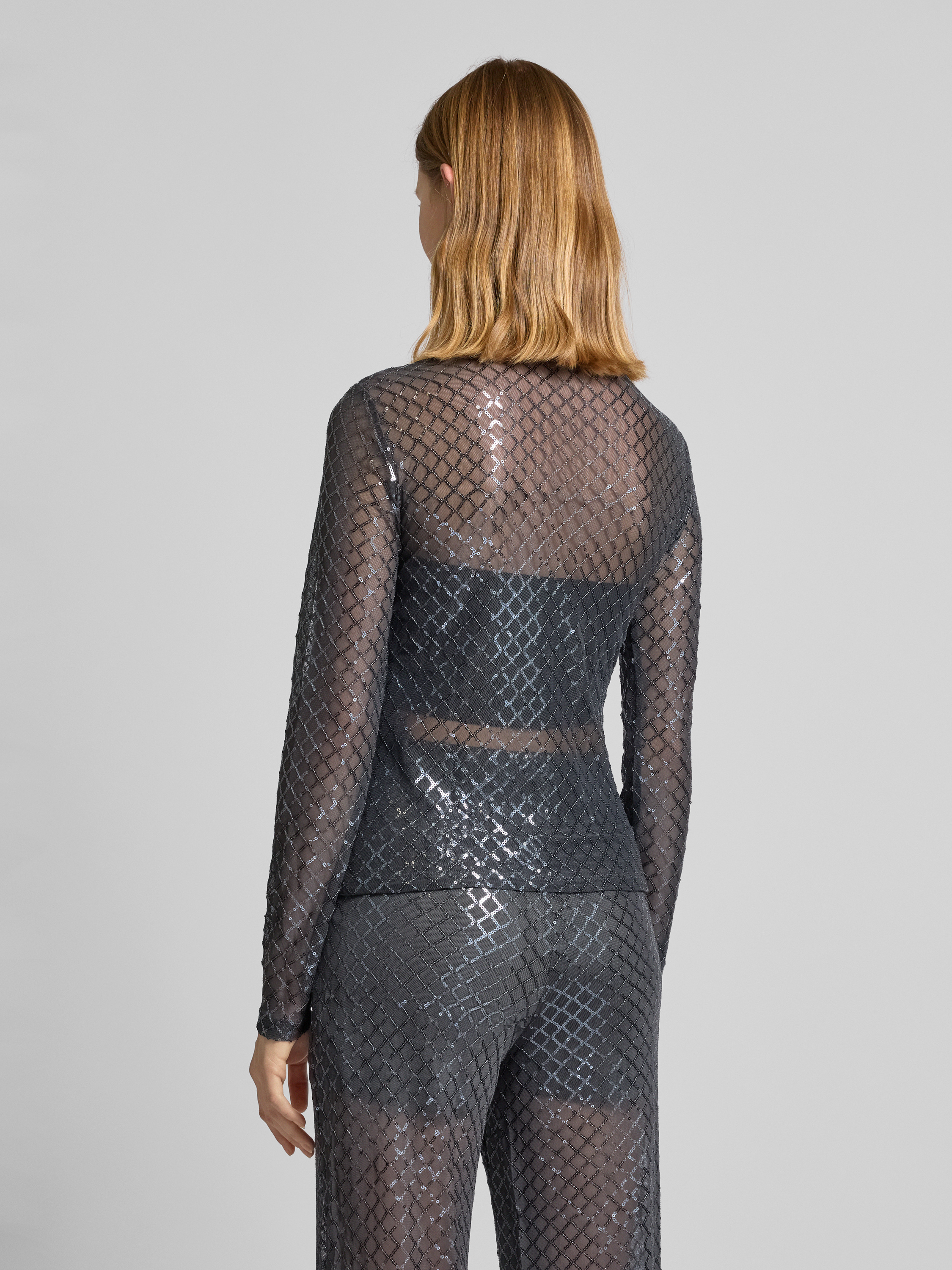 Vero ModaRegular Fit Langarmshirt mit Paillettenbesatz Modell 'SAFINA' in anthrazit