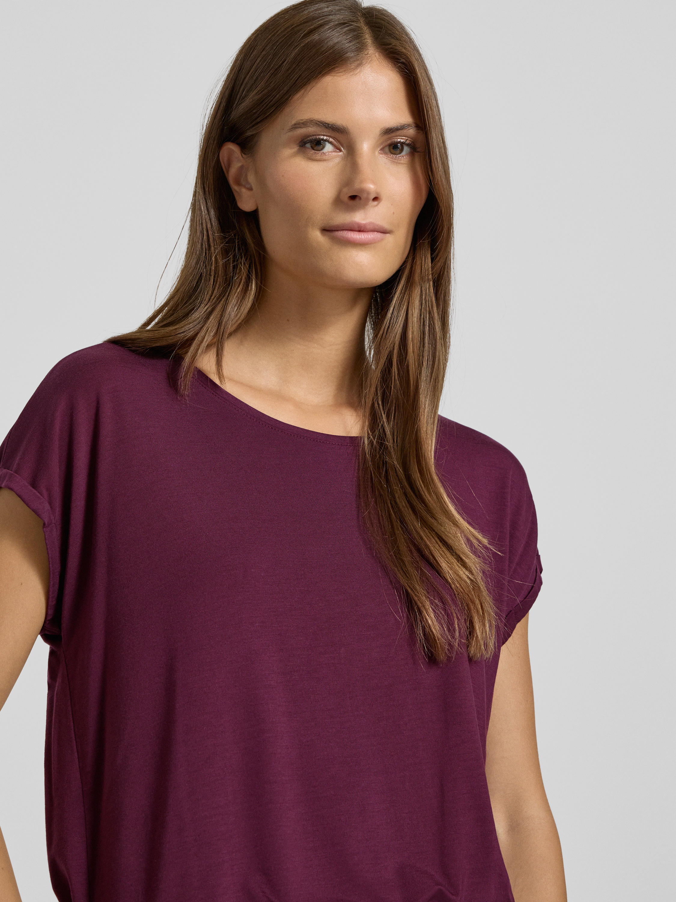 Vero ModaRegular Fit T-Shirt aus Lyocell-Mix Modell 'AVA' in bordeaux