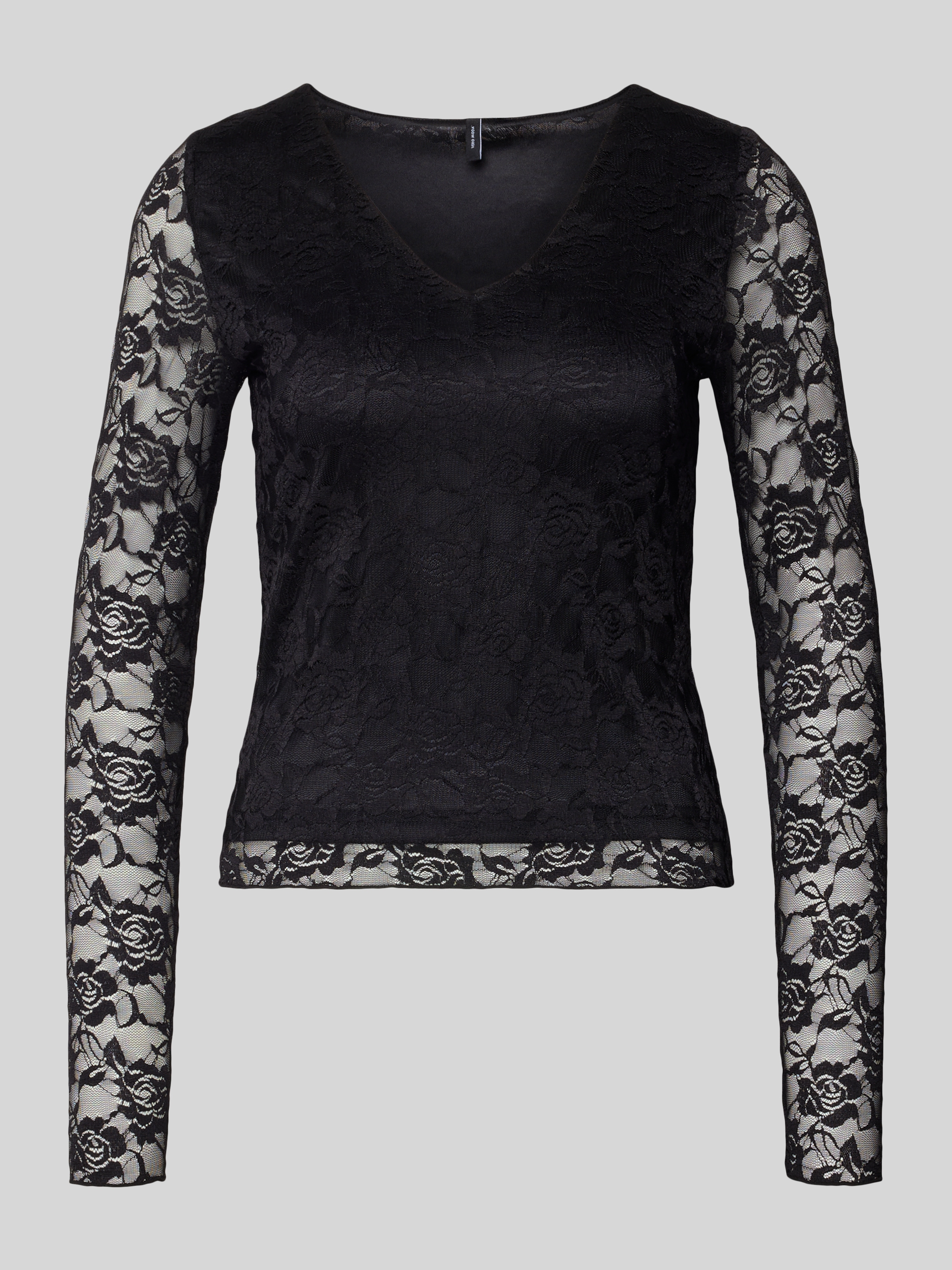 Vero ModaSlim Fit Langarmshirt in Spitzen-Optik Modell 'IBEN' in black