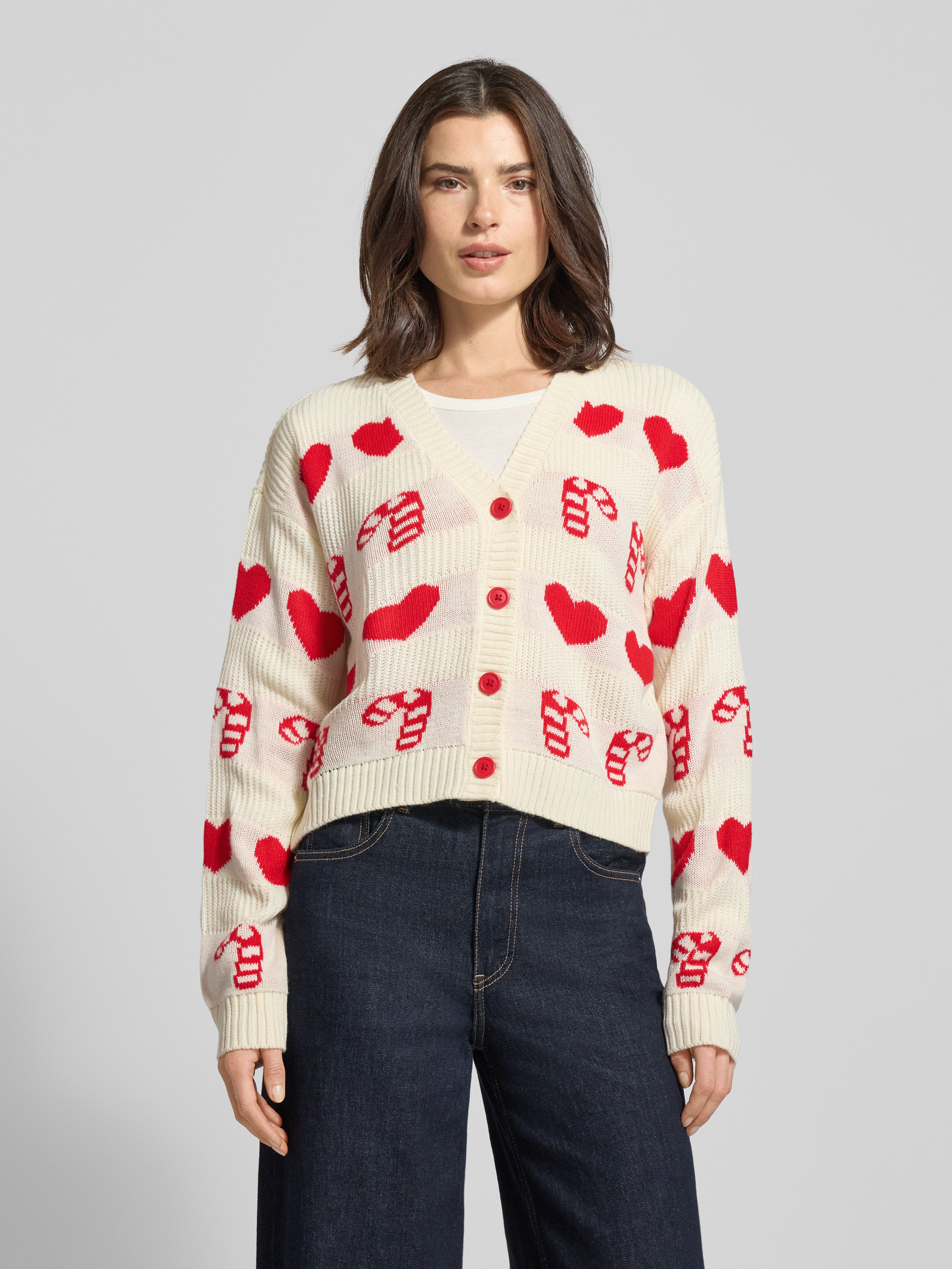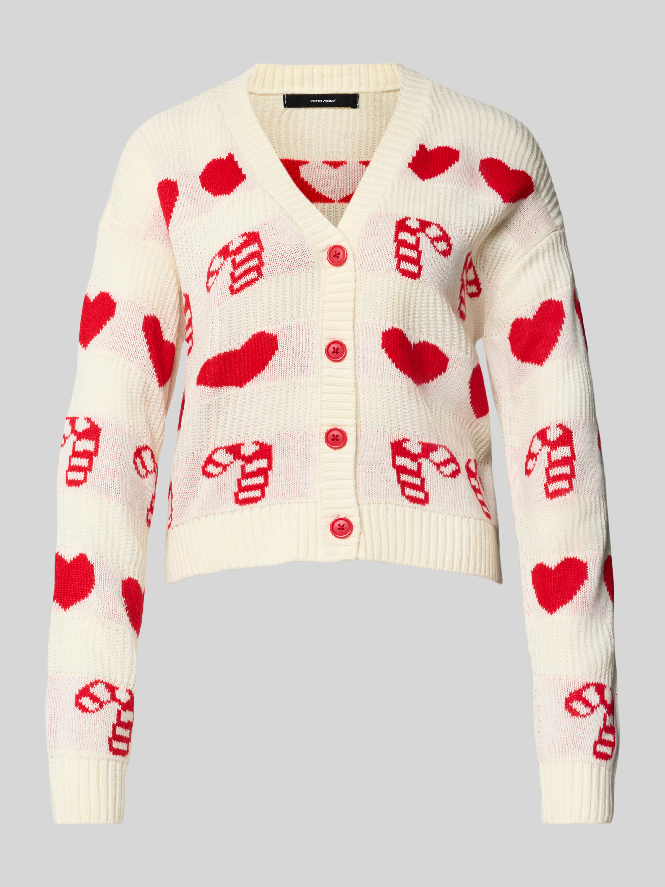 Vero ModaStrickjacke mit Weihnachts-Motiv Modell 'CANDYHEARTS' in offwhite
