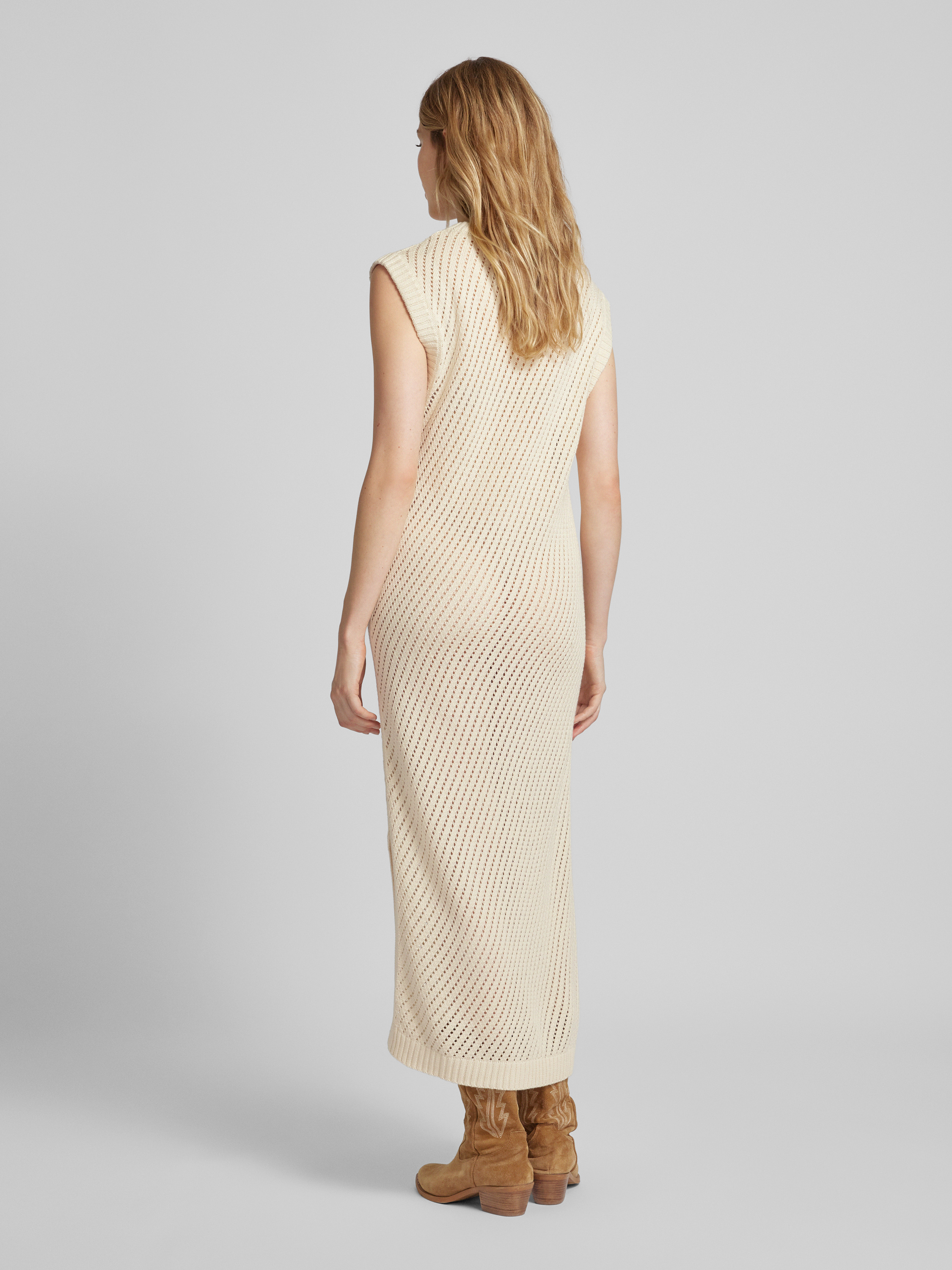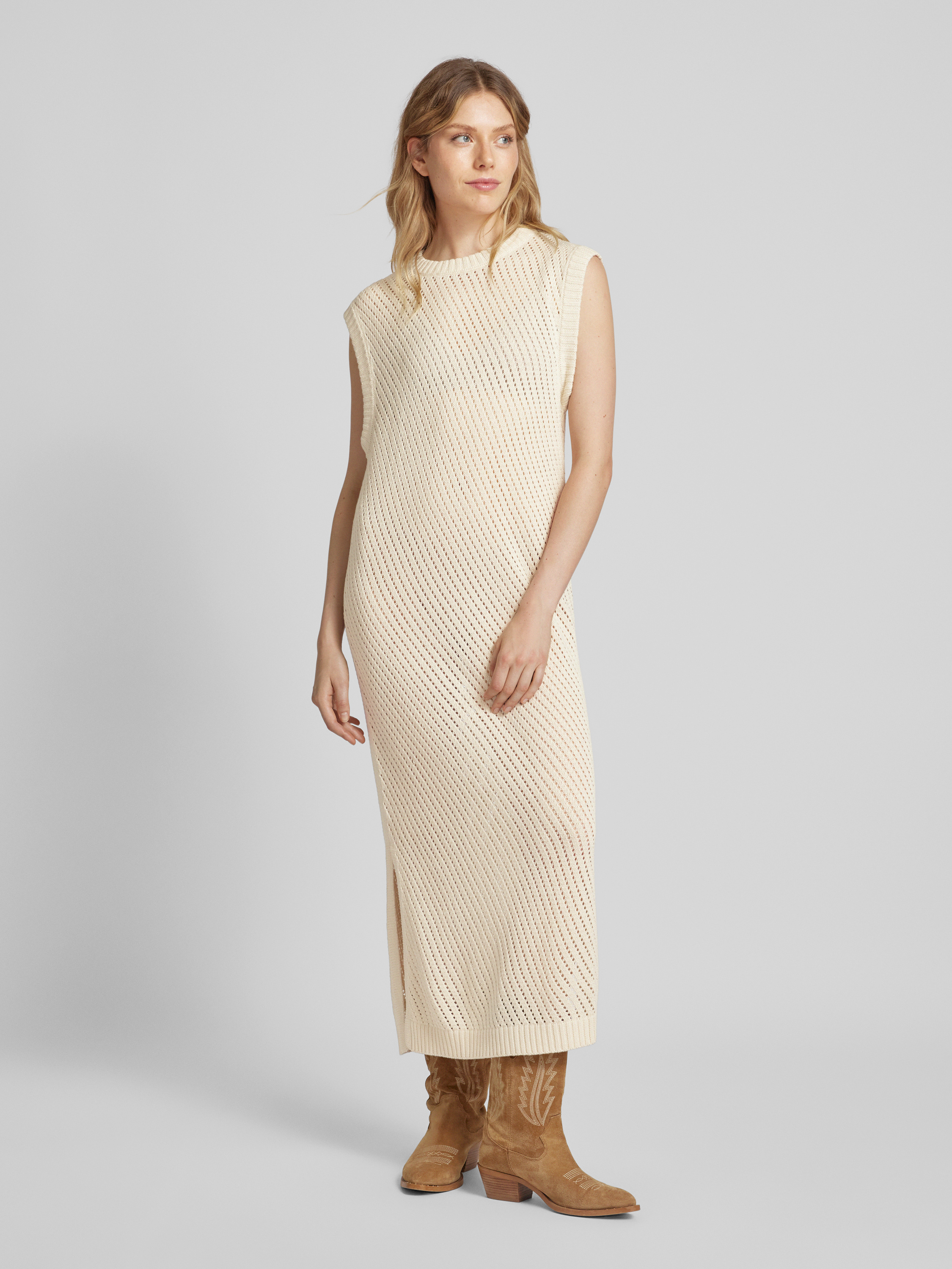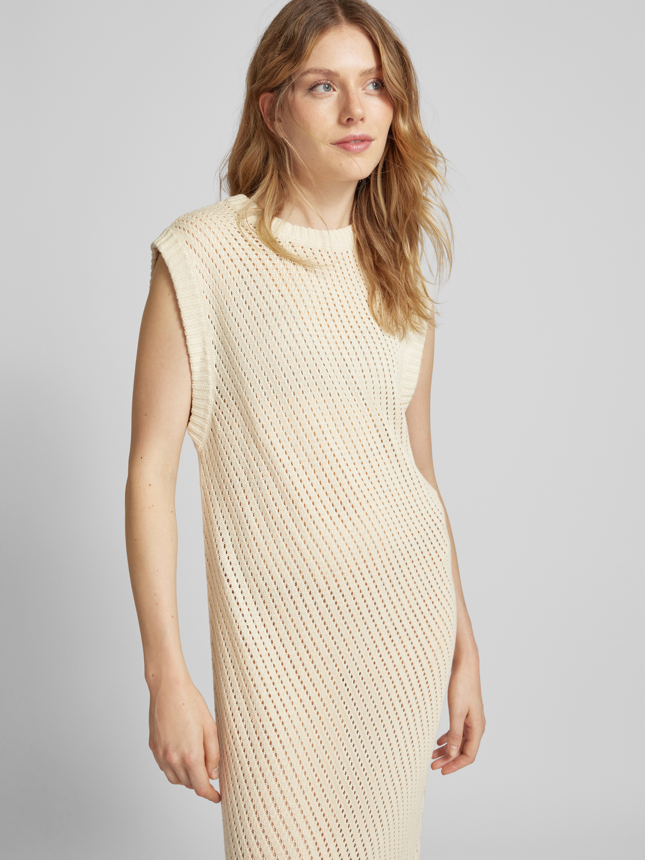 Das Damen Strickkleid 'MALTA' von VERO MODA kombiniert eine elegante Strick-Optik mit einem raffinierten Lochmuster. Der gerade Schnitt und der Gehschlitz sorgen für eine angenehme Bewegungsfreiheit, während die ärmellose Form und der U-Rückenausschnitt eine moderne Silhouette betonen. Ideal für verschiedenste Anlässe.