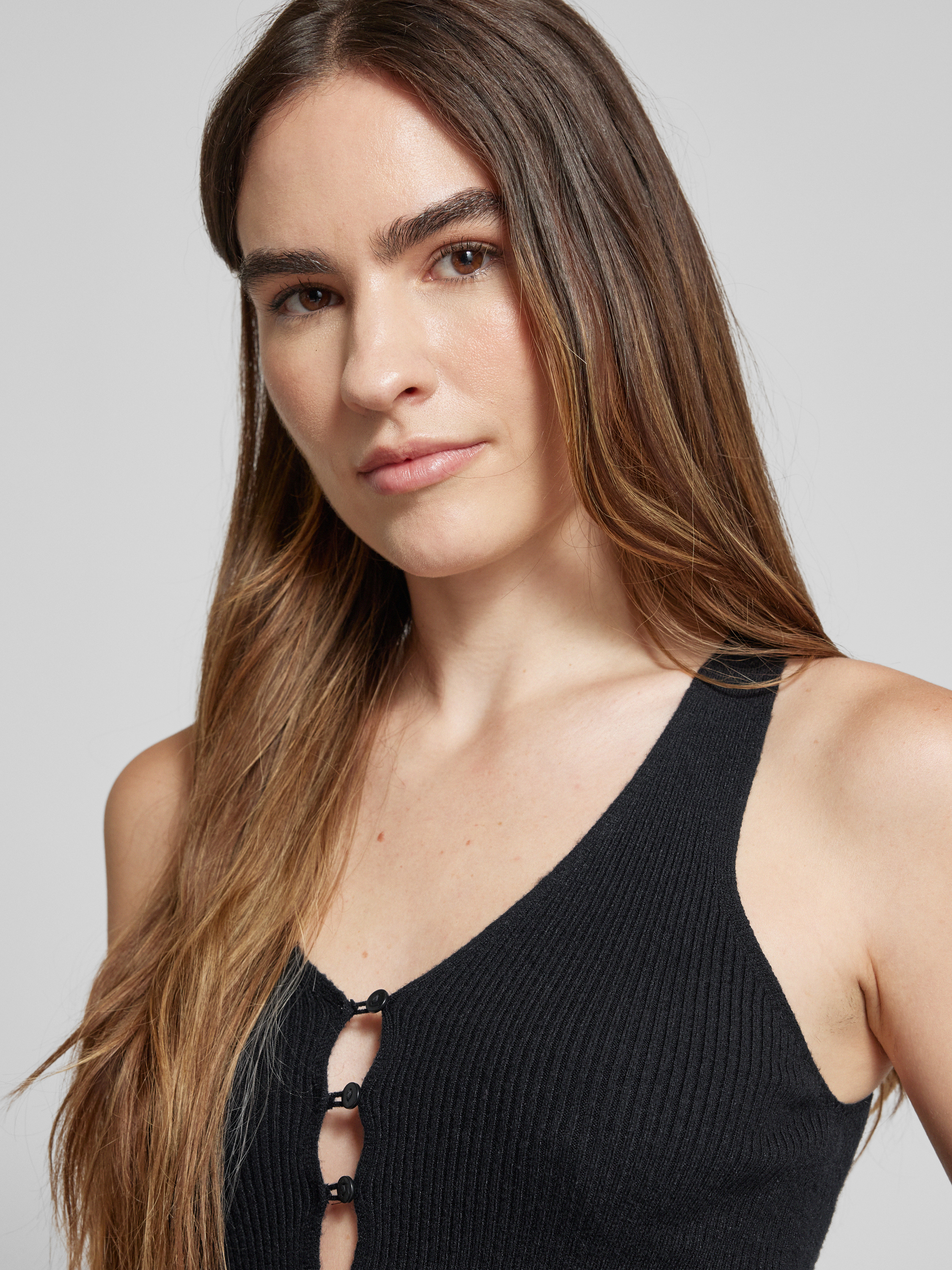 Das Trägertop mit V-Ausschnitt von Vero Moda präsentiert sich in einem schlichten, unifarbenen Design, das vielseitig kombinierbar ist. Die schlanke Passform und breiten Träger bieten einen angenehmen Sitz, während der Viskose-Mix für ein leichtes Tragegefühl sorgt. Ideal für warme Tage.