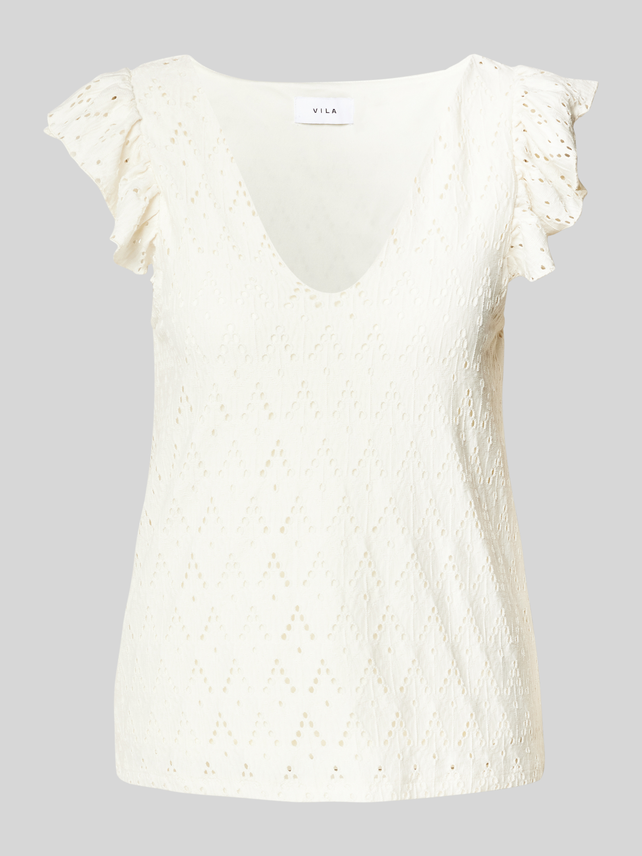 • Vila Blusentop mit Lochstickerei Modell 'AMALINA' Offwhite