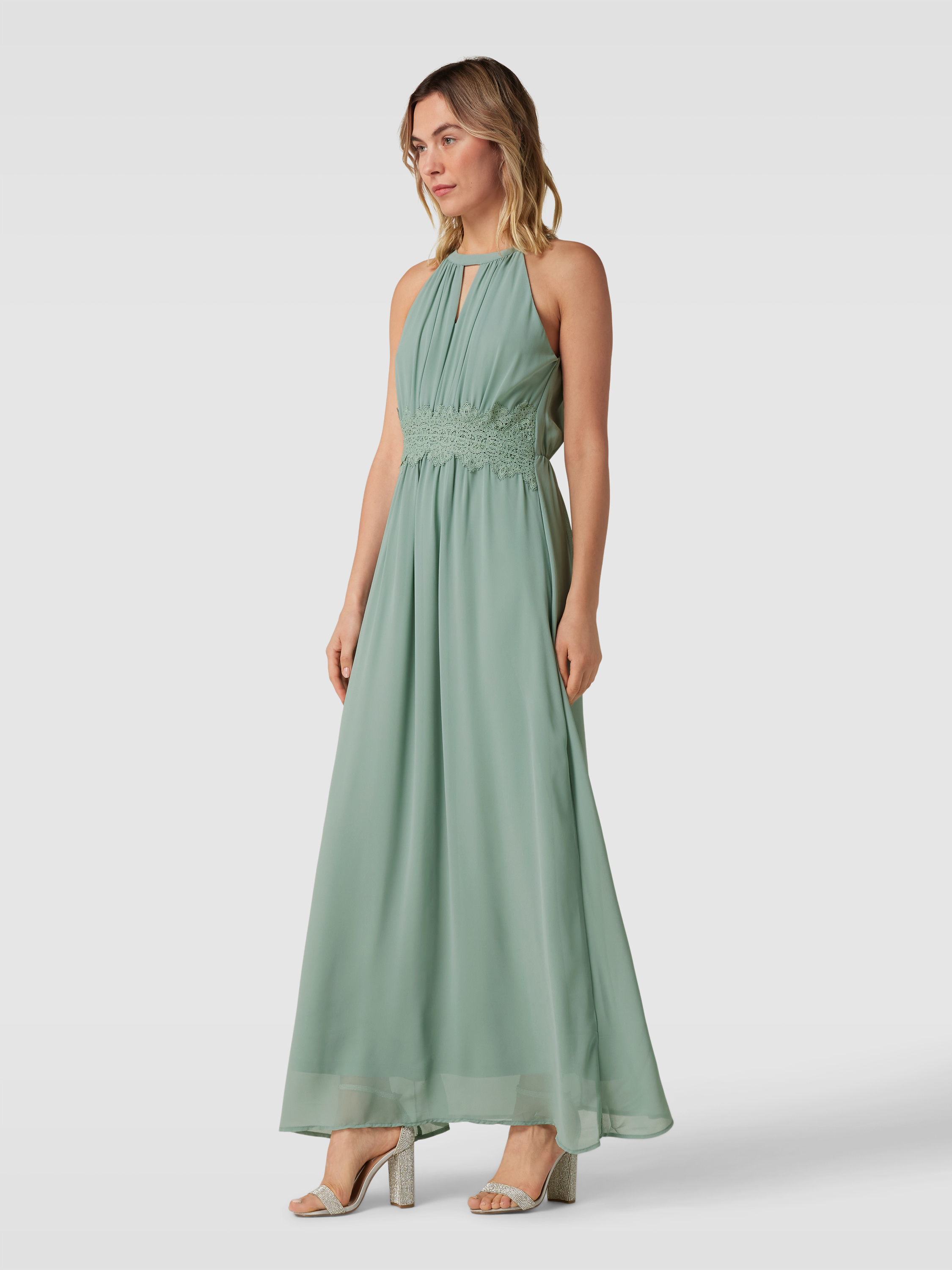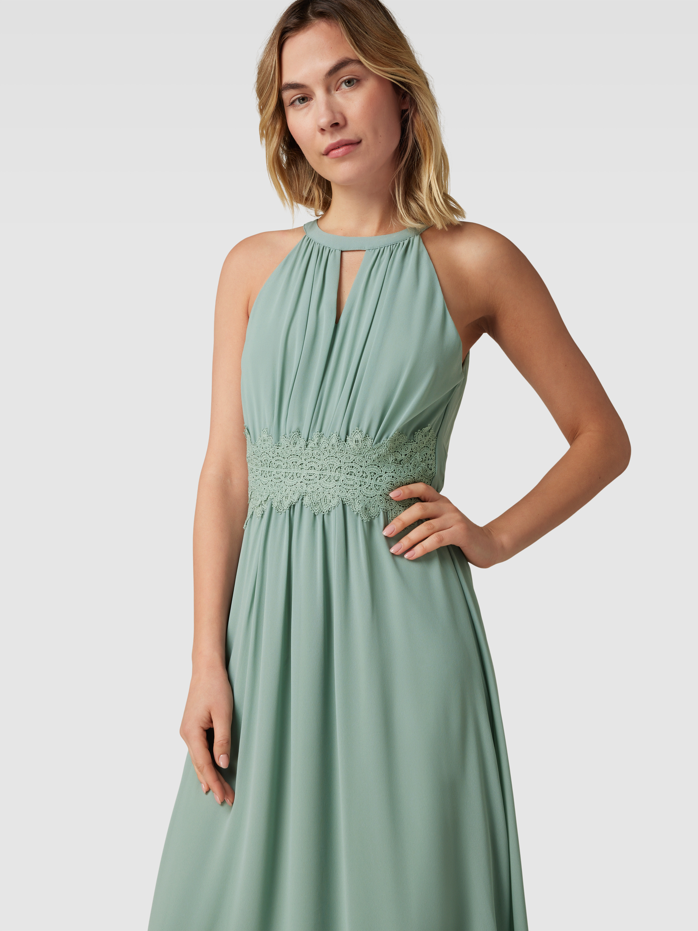 Maxikleid mit Spitzenbesatz Modell 'MILINA' in lind