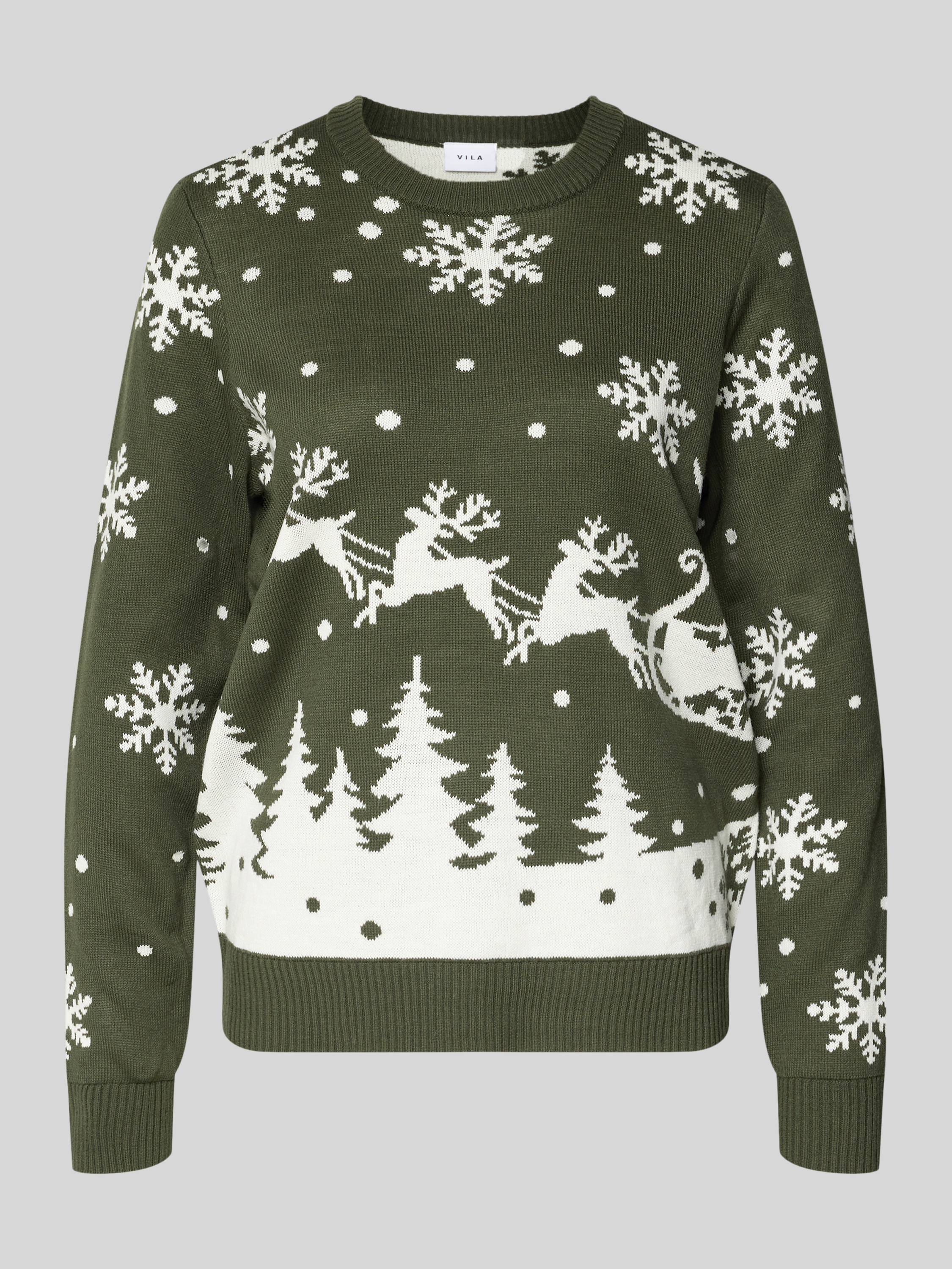 VilaStrickpullover mit Rundhalsausschnitt Modell 'SNOWI' in khaki