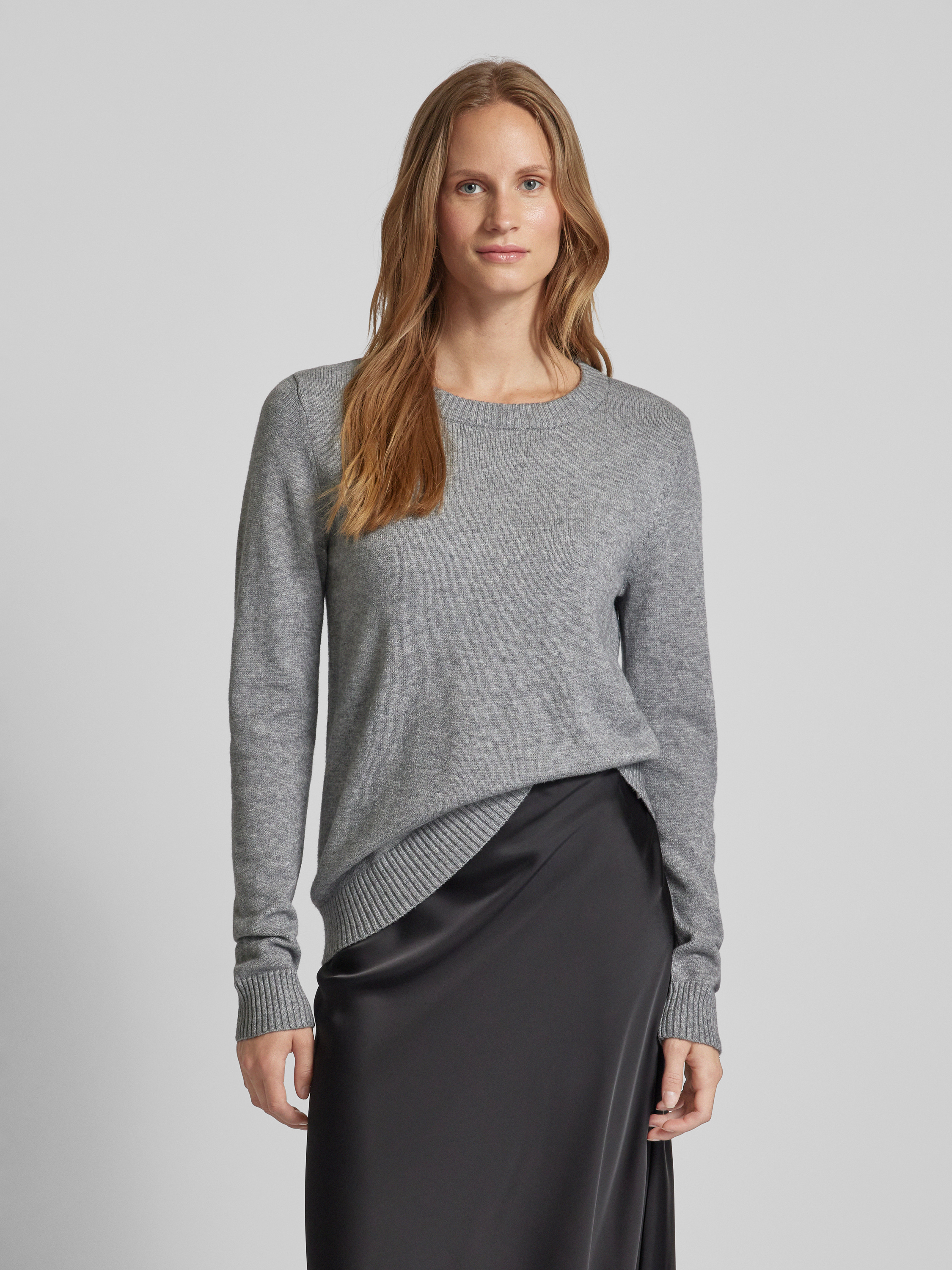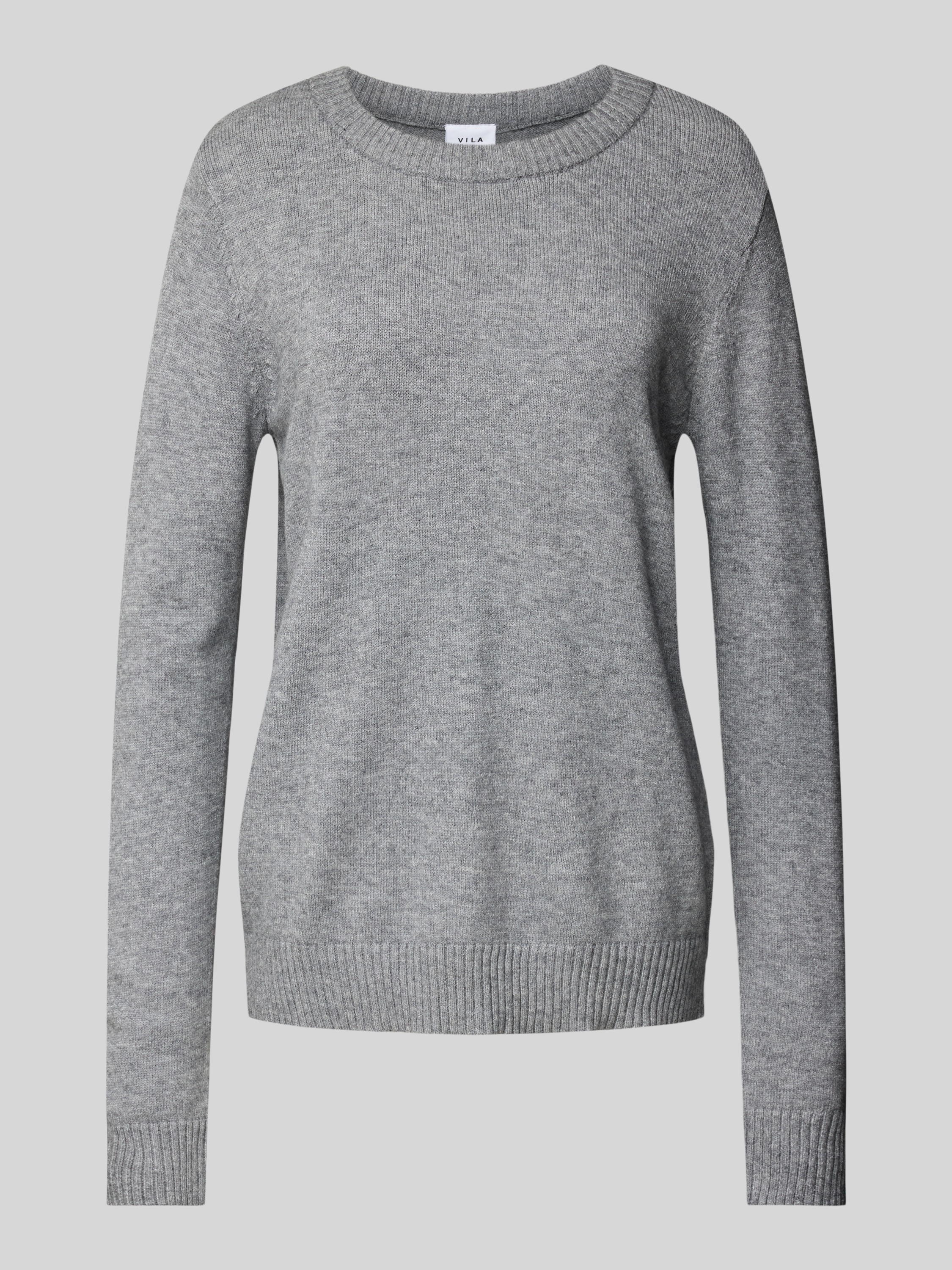 VilaStrickpullover mit Rundhalsausschnitt Modell 'Viril' in mittelgrau melange