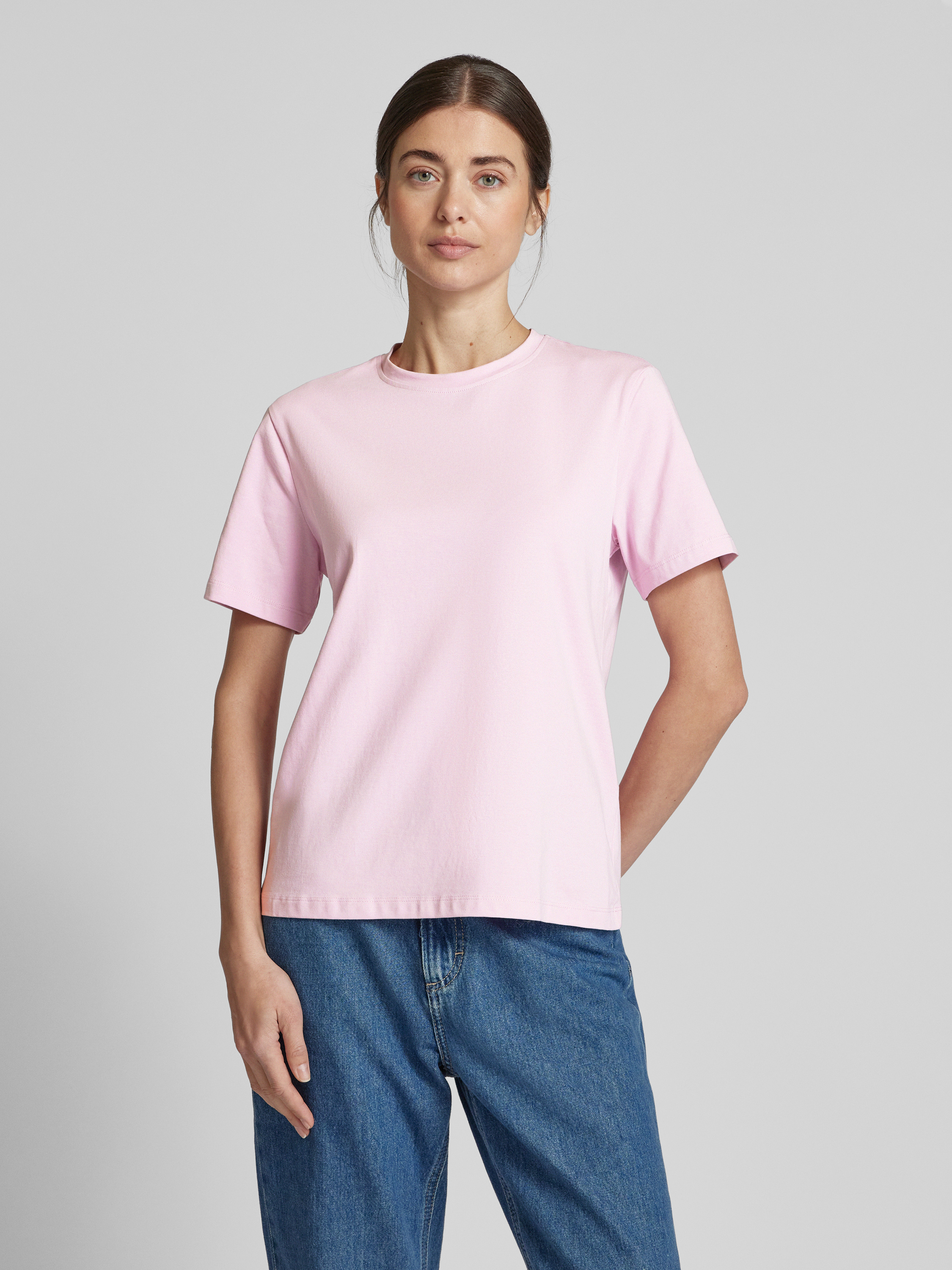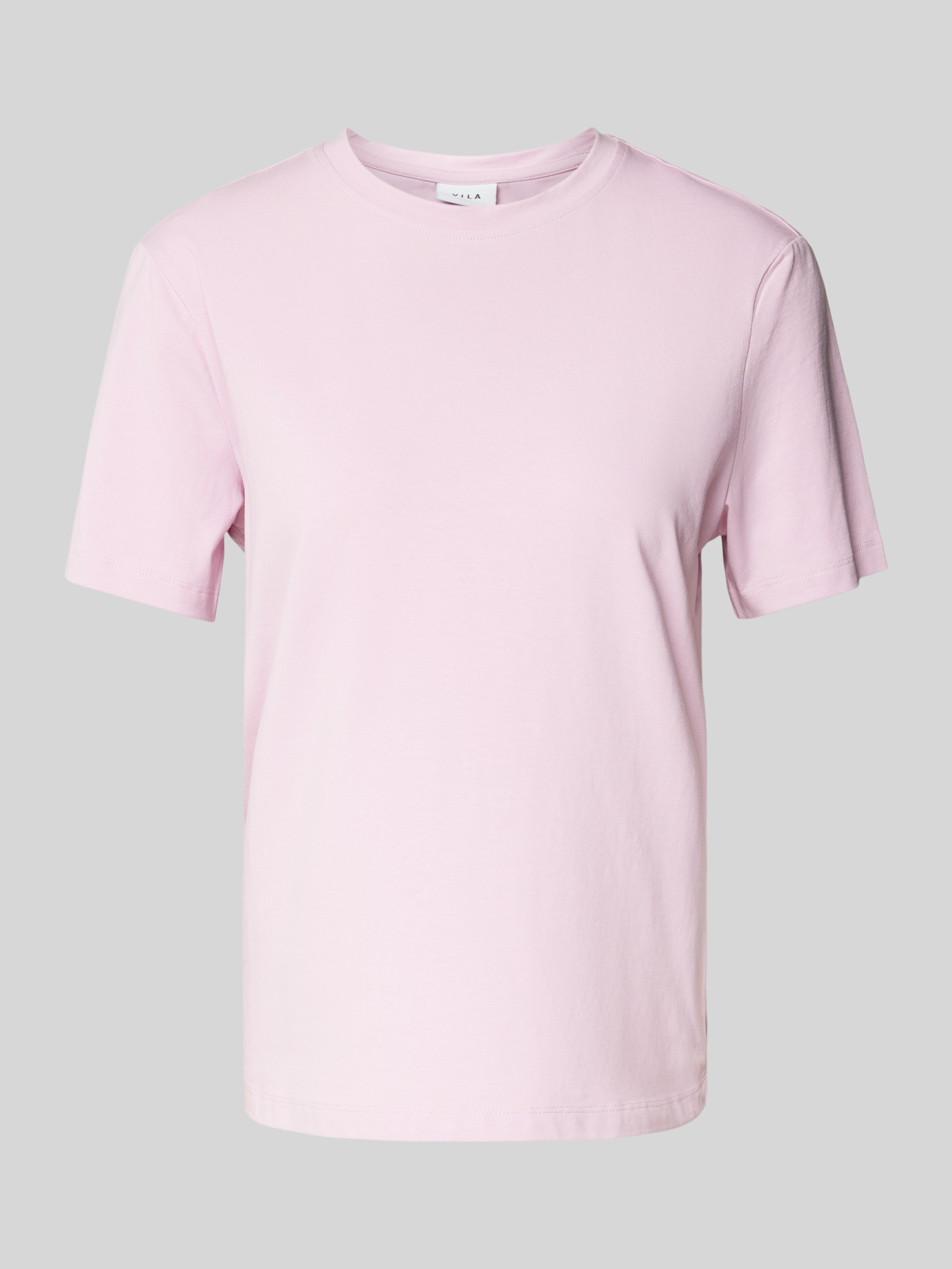 VilaT-Shirt mit geripptem Rundhalsausschnitt Modell 'NORA' in rosa