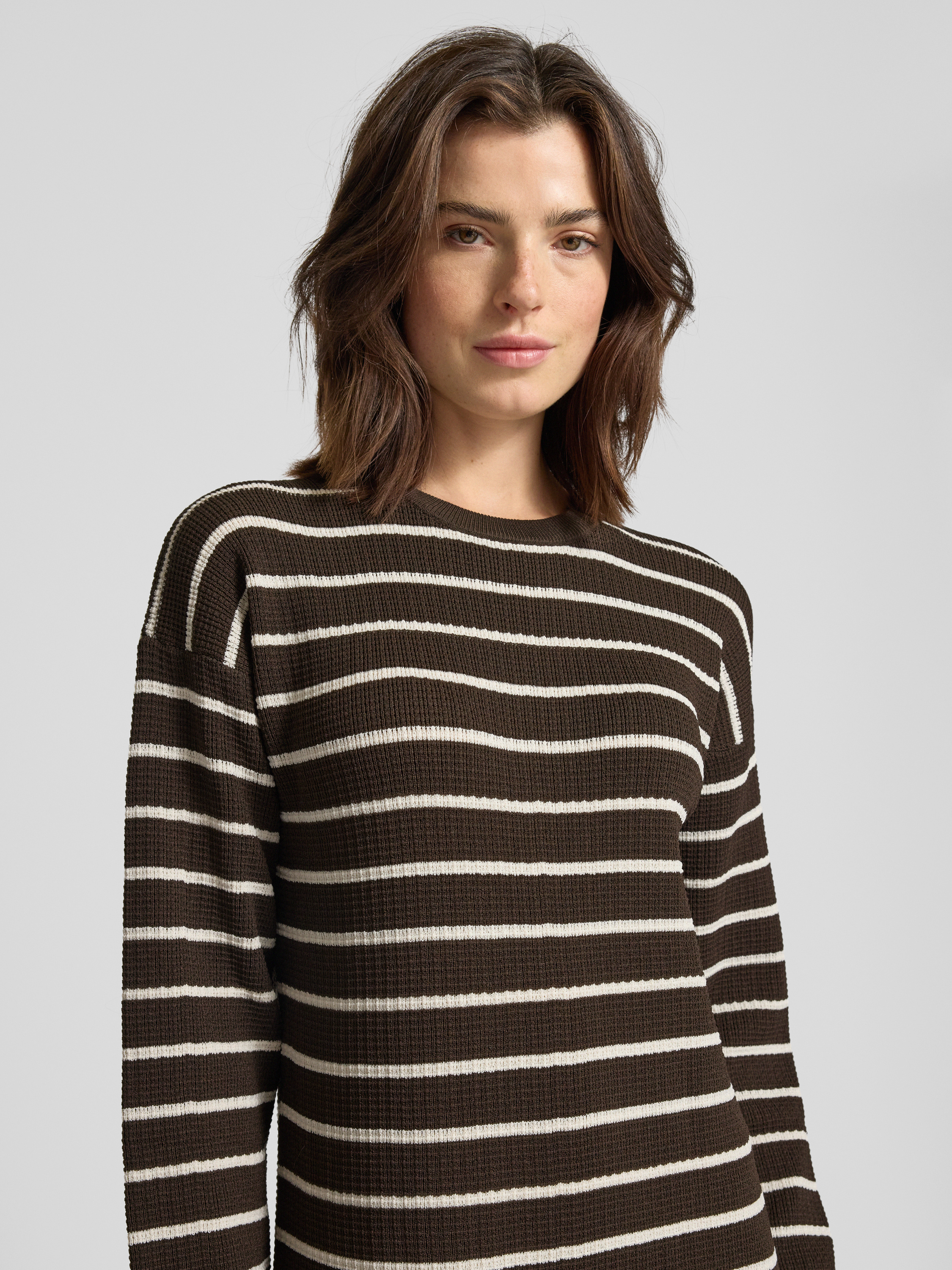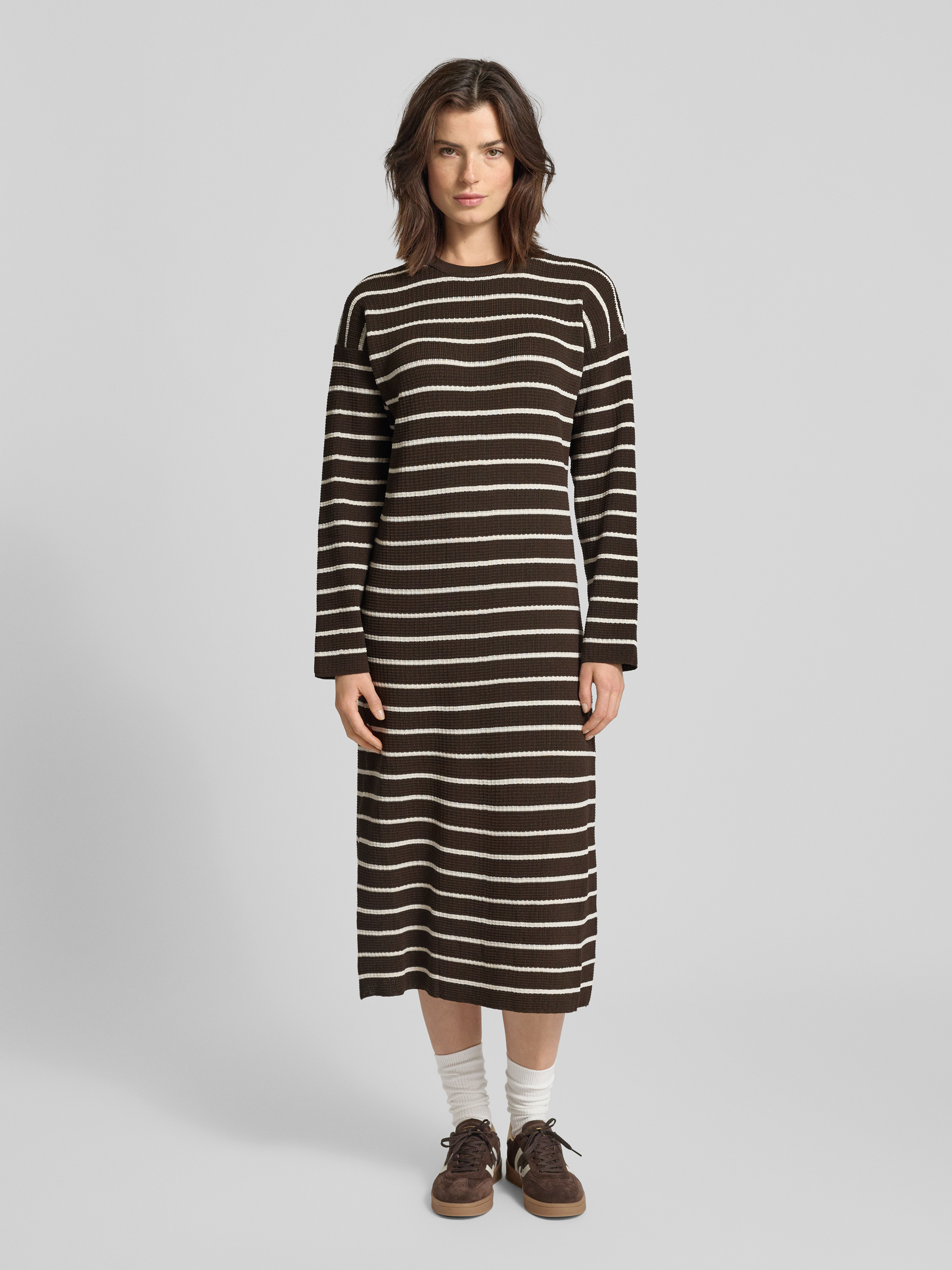 Das Strickkleid NURIA von VILLA SOPHIE fällt durch seinen geraden Schnitt angenehm locker und wirkt durch den Rundhalsausschnitt zeitgemäß. Dank des Viskose-Mix fühlt es sich leicht an und bleibt auch über längere Zeit komfortabel. Überschnittene Schultern unterstreichen den entspannten Charakter, sodass man sich flexibel kleiden kann.