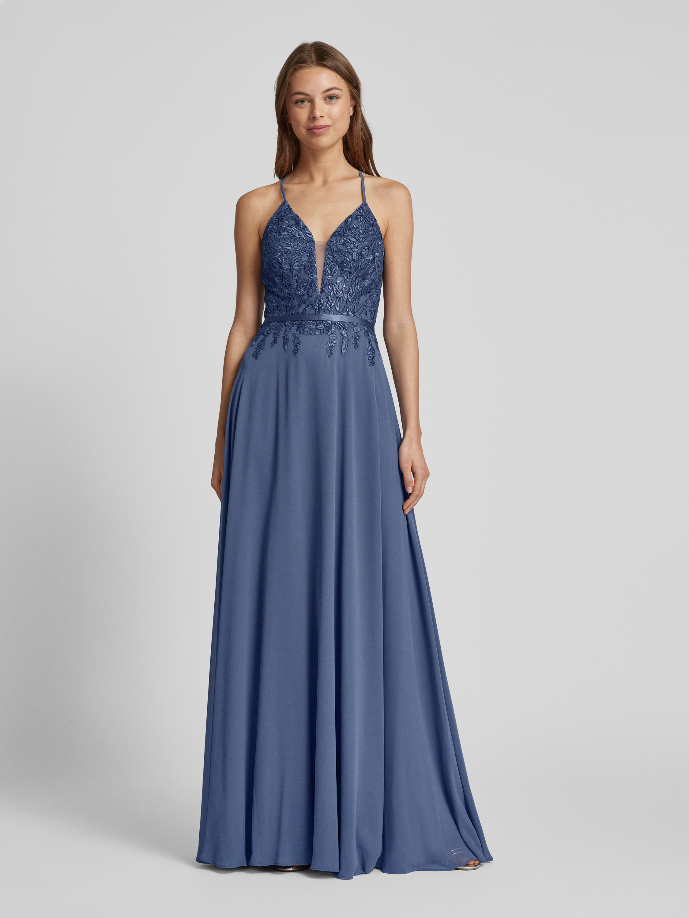 V.M.Abendkleid mit Häkelspitze in hellblau