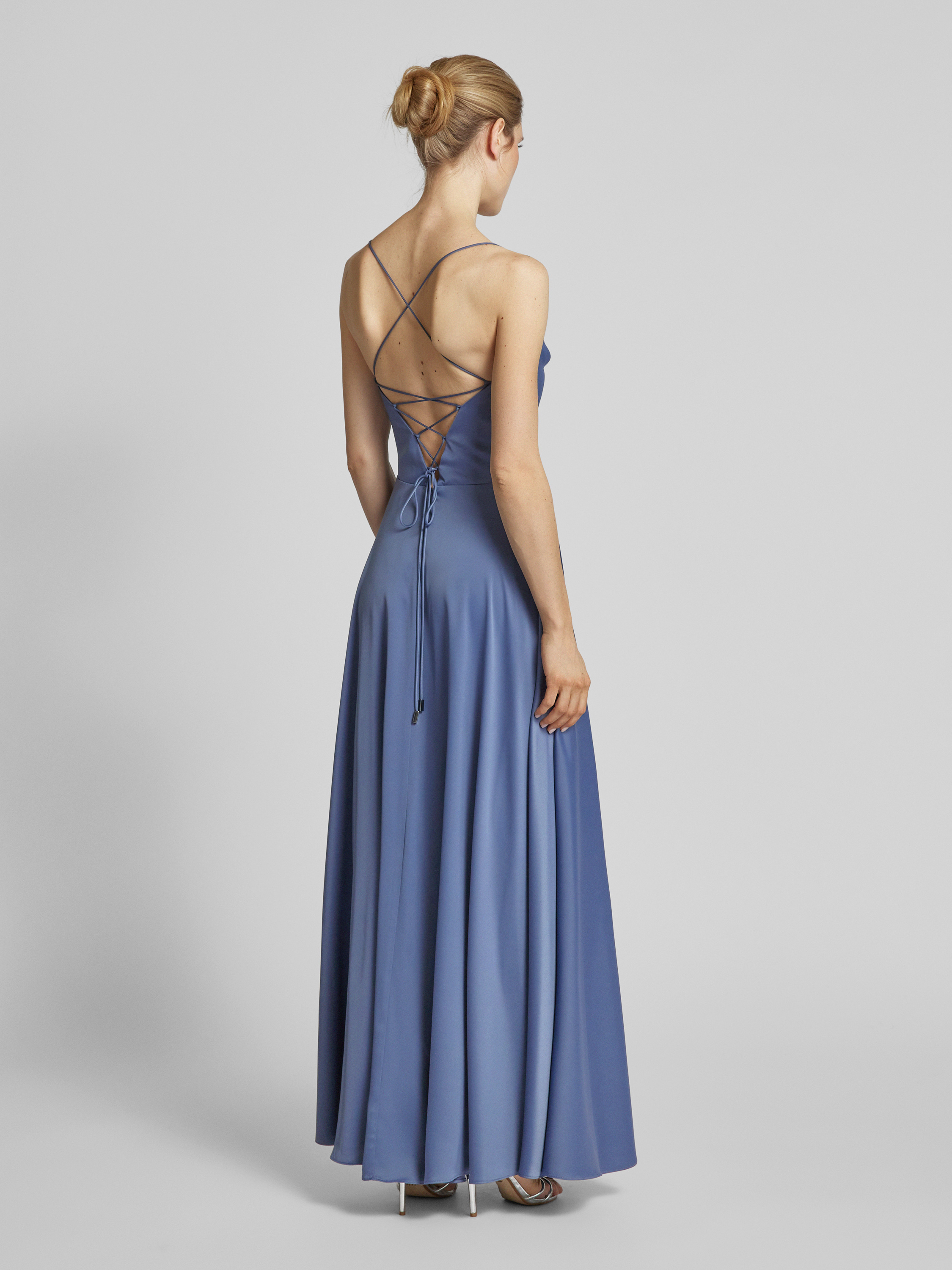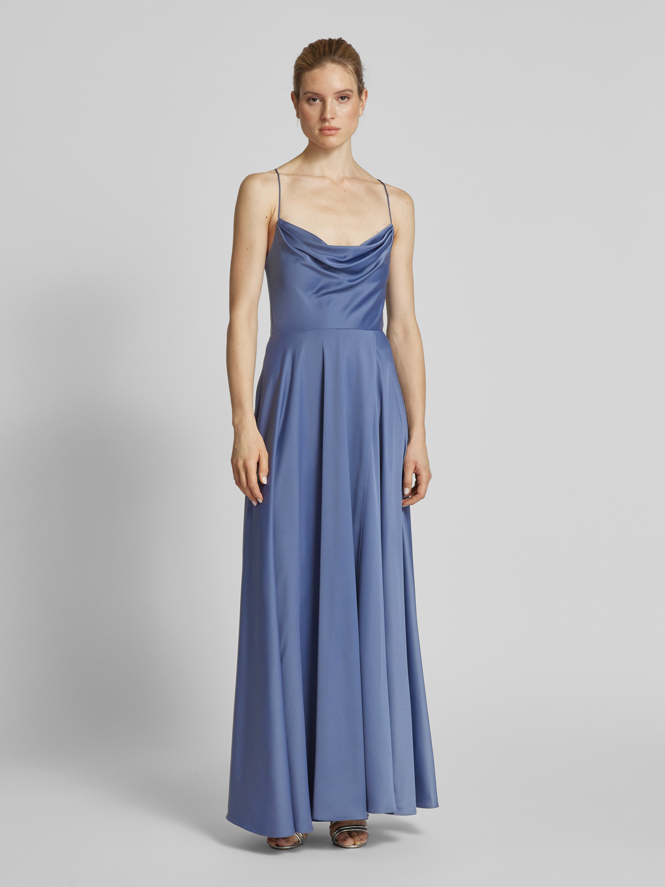 V.M.Abendkleid mit Wasserfall-Ausschnitt in hellblau