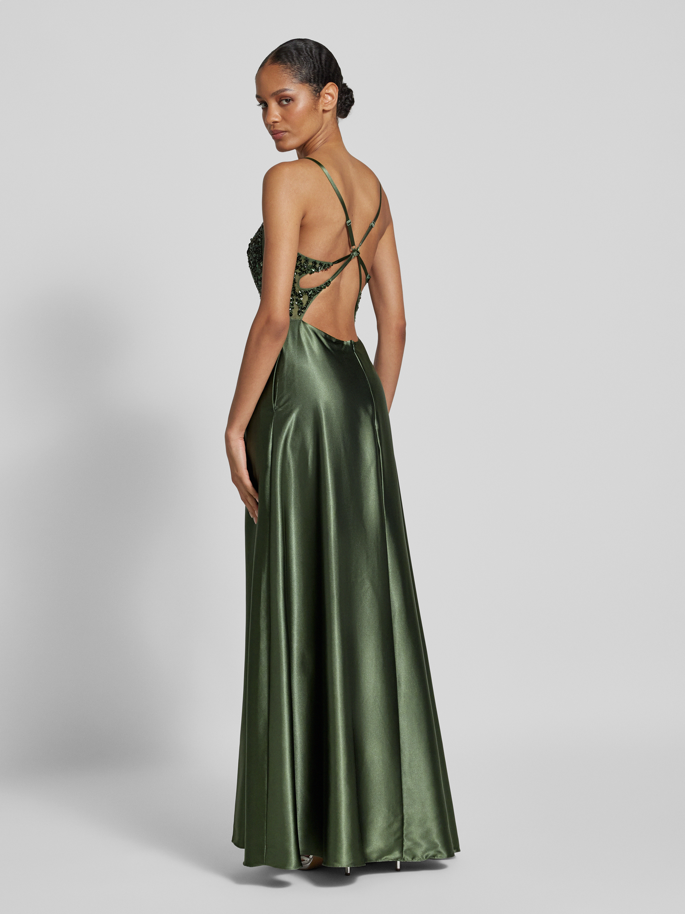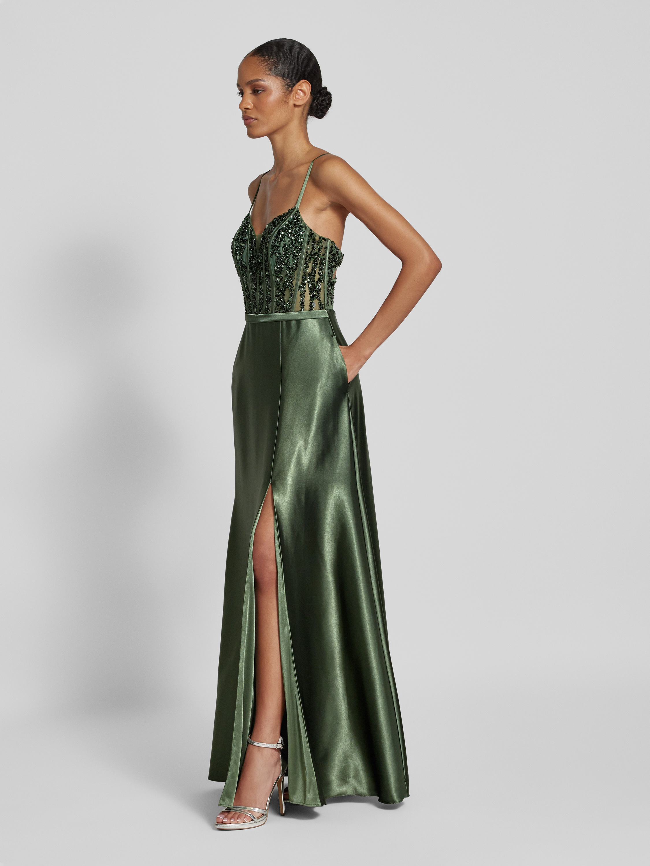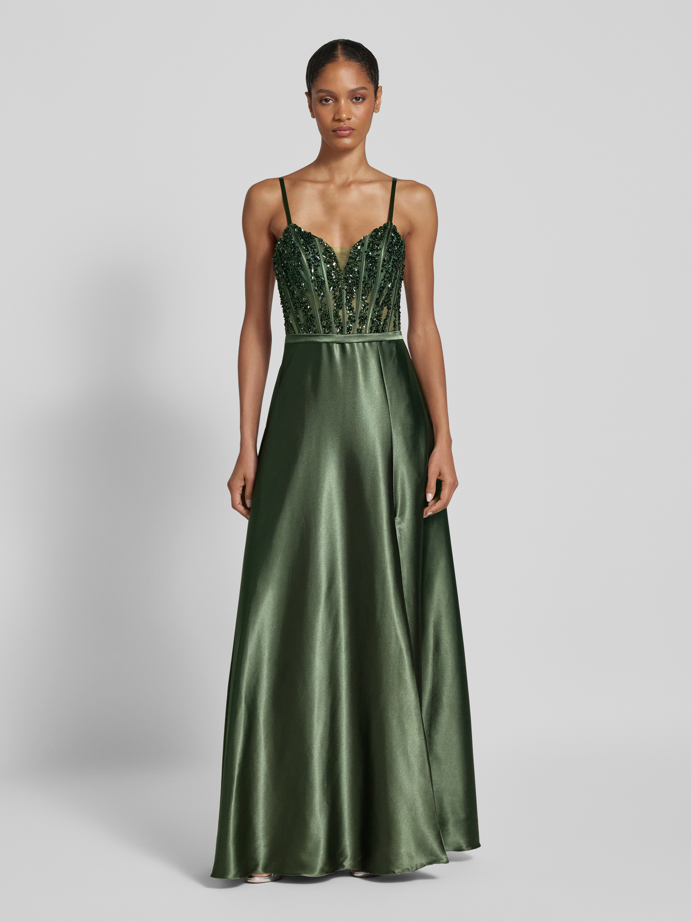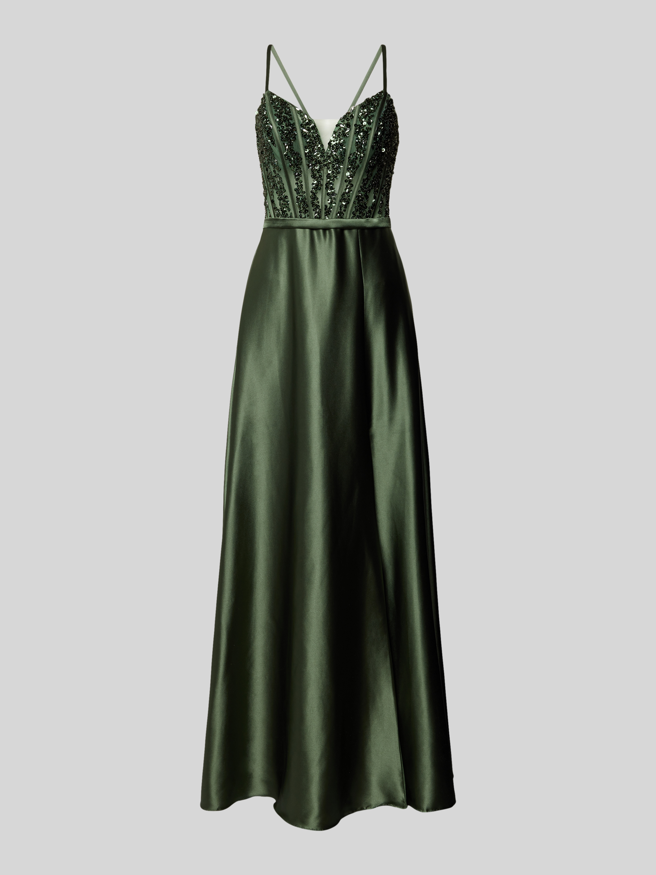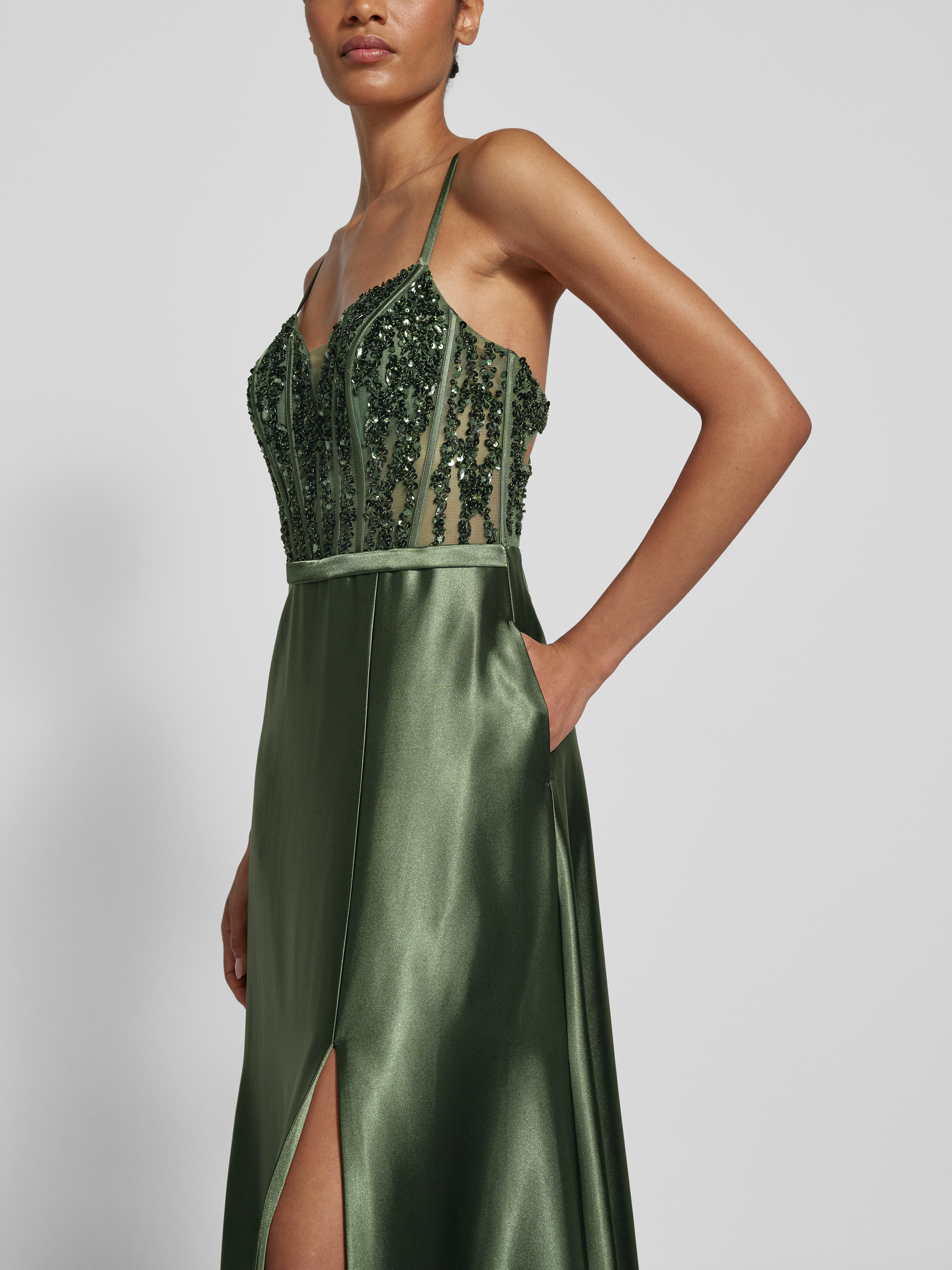 V.M.Abendkleid mit Zierstein- und Paillettenbesatz in gruen