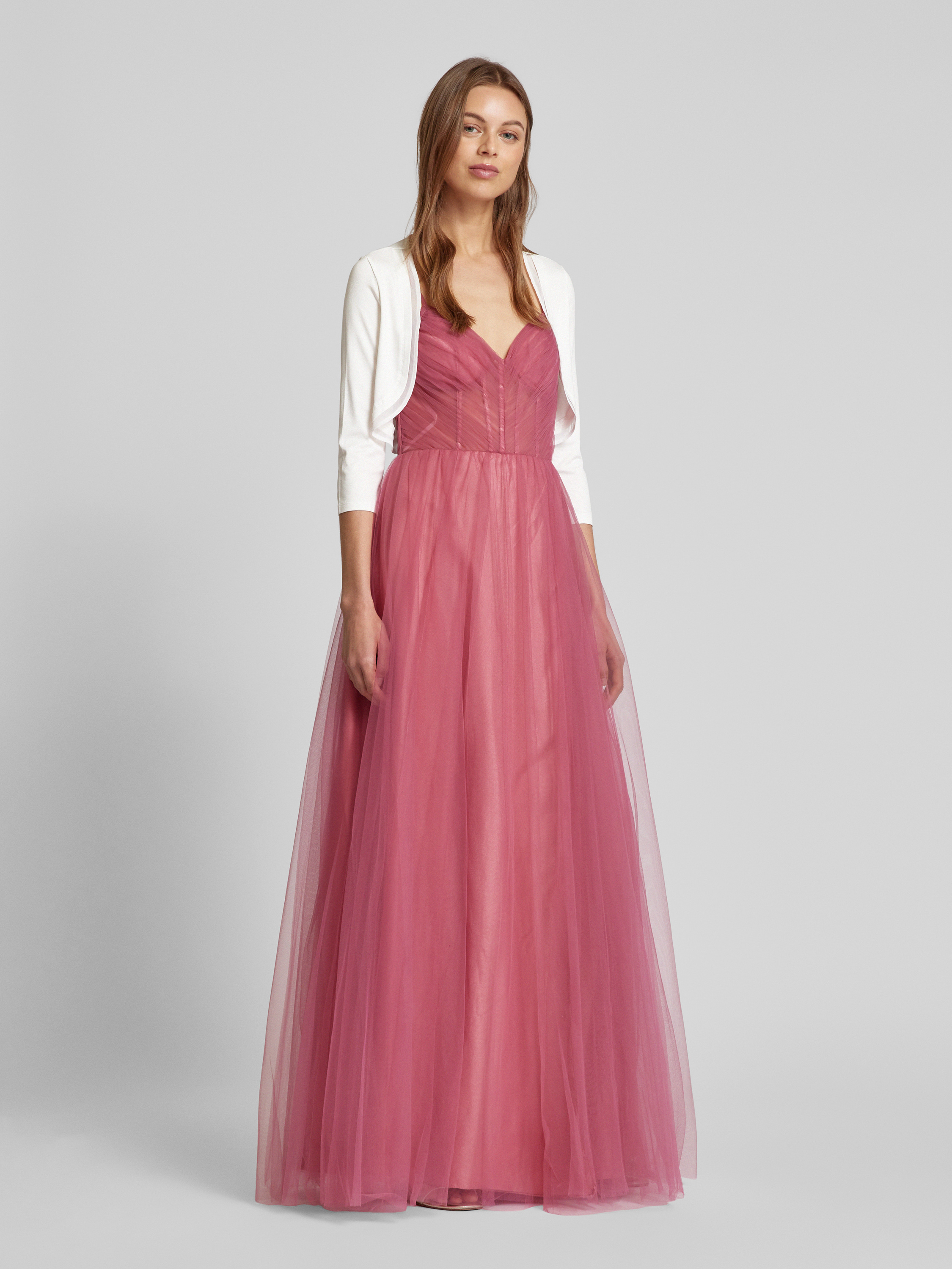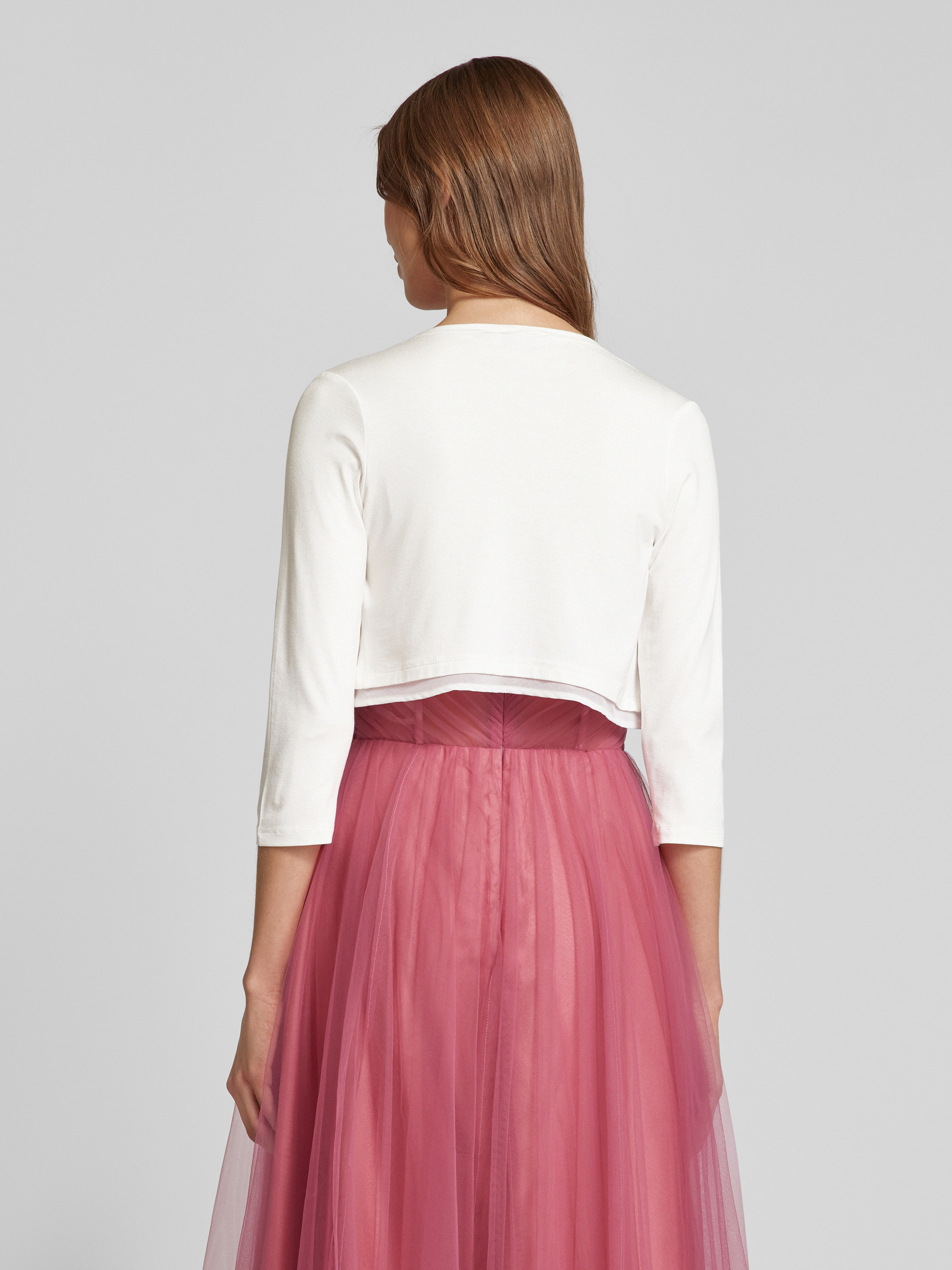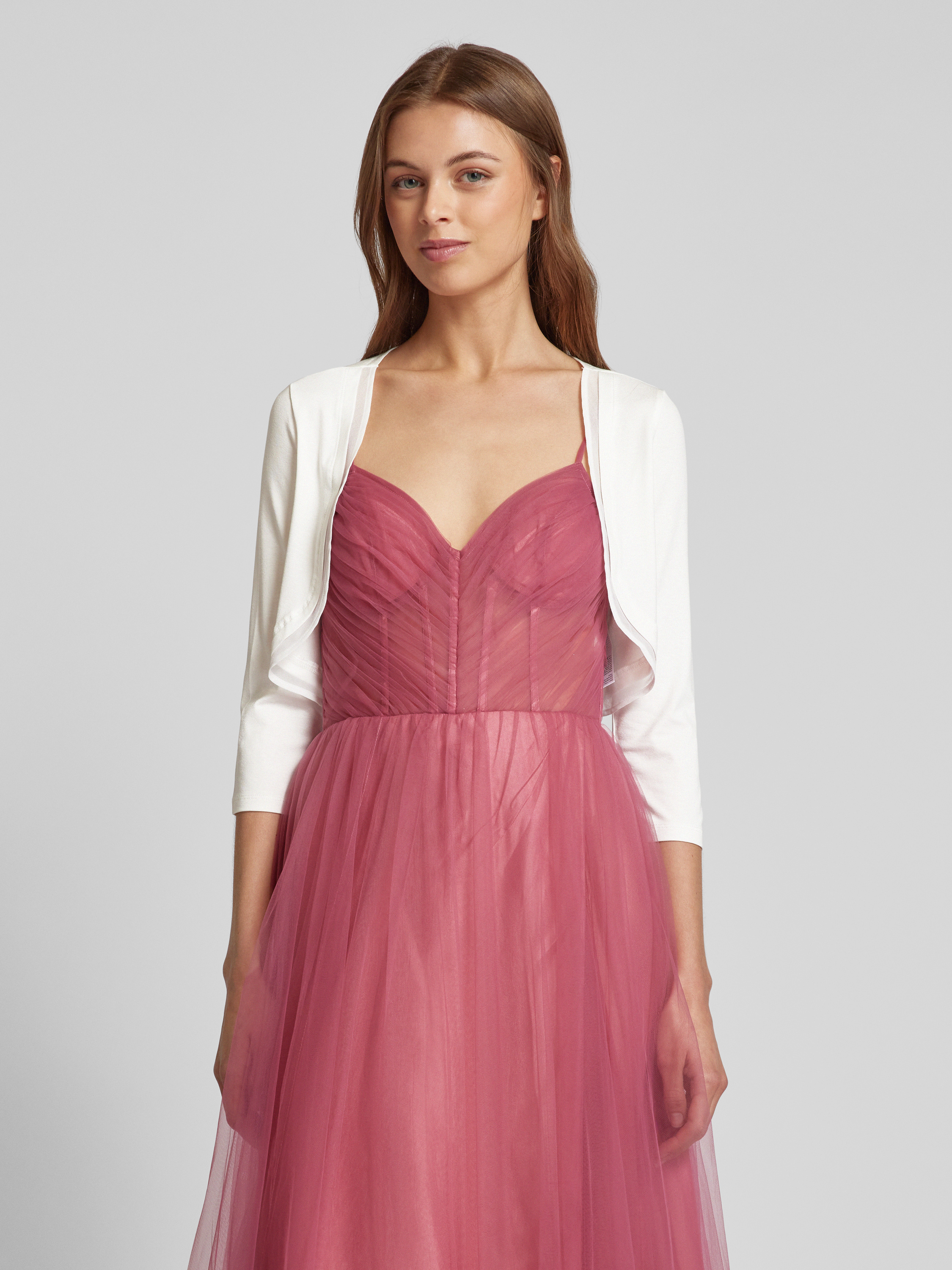 Der Bolero von VM Vera Mont ist aus einem geschmeidigen Viskose-Elasthan-Mix gefertigt, der sich angenehm an den Körper schmiegt. Der körpernahe Schnitt und die offene Vorderseite verleihen dem Kleidungsstück eine elegante Note, die vielseitig kombinierbar ist. Ideal für verschiedenste Anlässe.