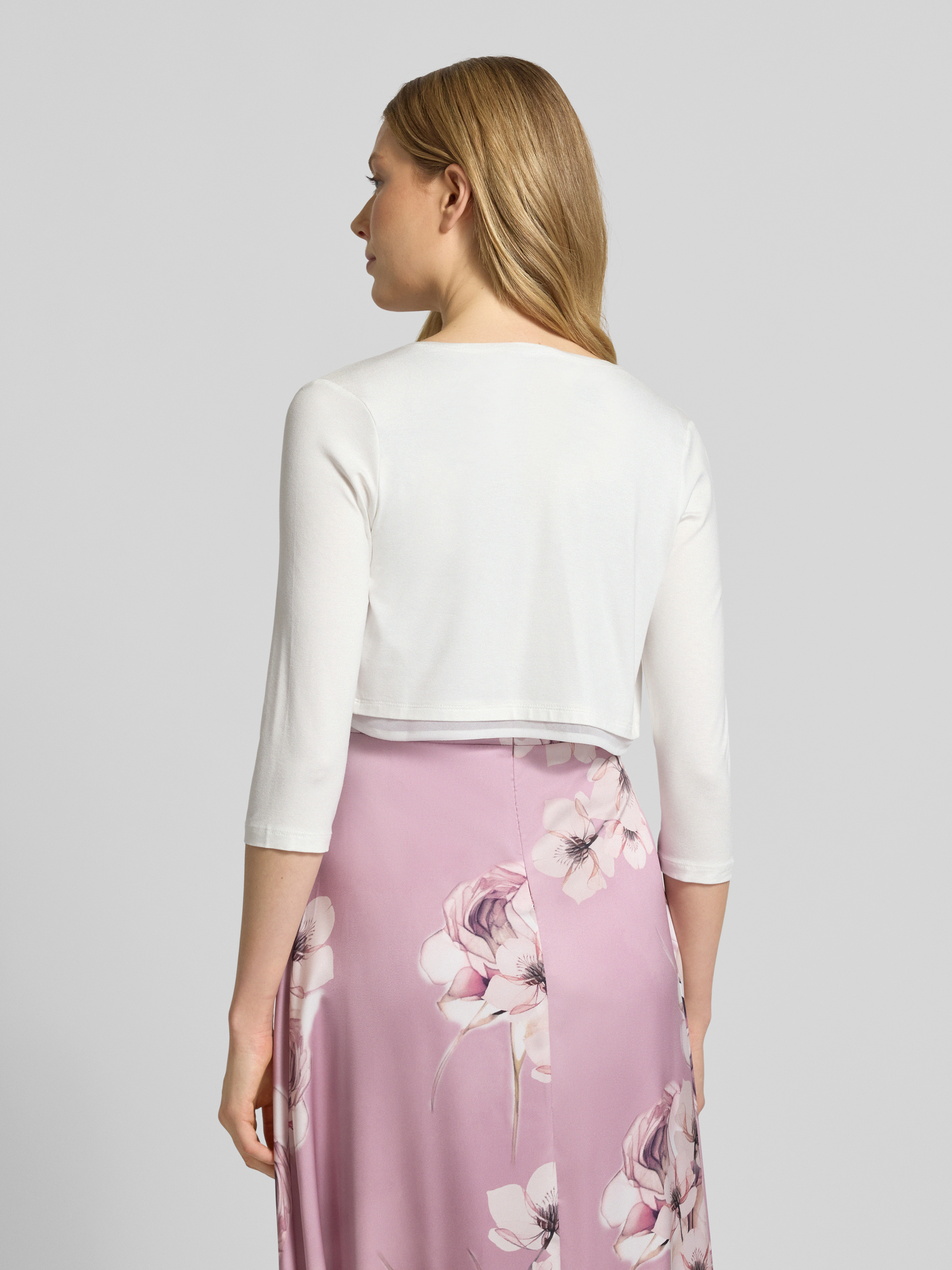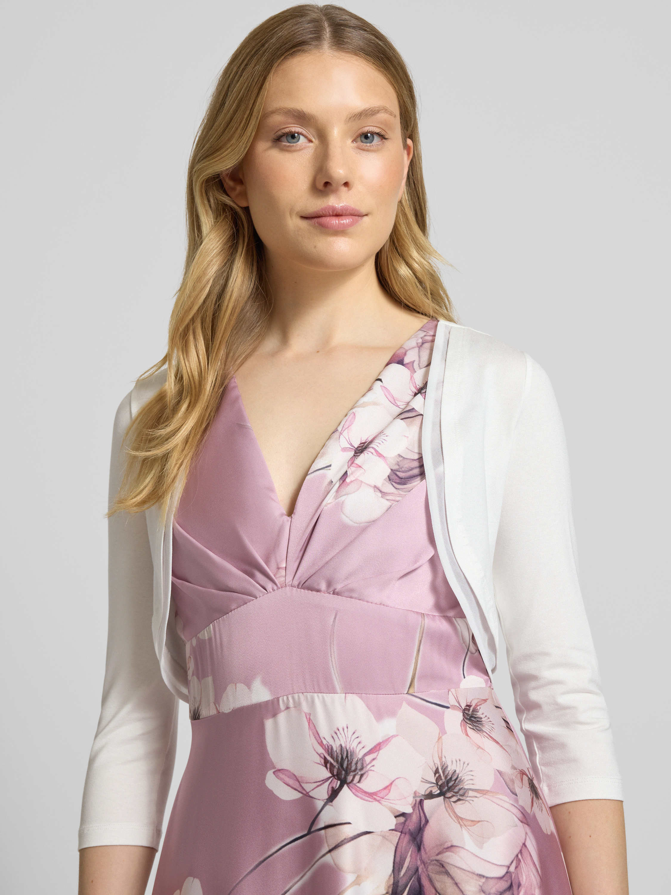 Die Damen Jacke von V.M. legt sich durch ihren eng anliegenden Schnitt angenehm an den Körper und sorgt für eine betonte Silhouette. Dank des Viskose-Elasthan-Mixes fühlt sie sich weich an und bleibt dabei formstabil. Die offene Vorderseite und die 3/4-Ärmel setzen moderne Akzente im Alltag.