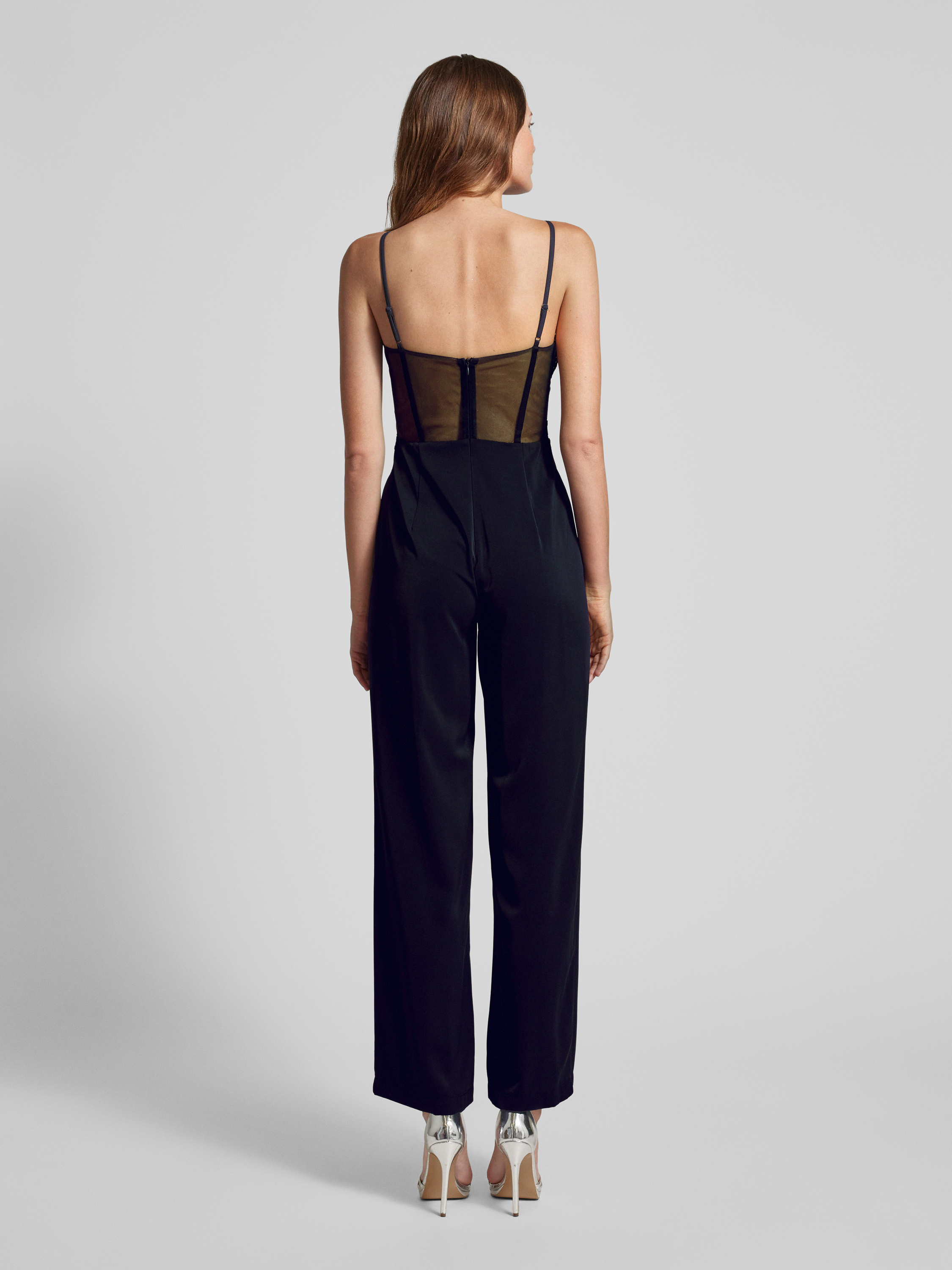 Der Jumpsuit mit Spitzenbesatz von V.M. by Vera Mont zeigt sich in einem taillierten Schnitt, der sich angenehm an die Silhouette anschmiegt. Feine Spaghettiträger und zarter Spitzenbesatz setzen dezente Akzente, während der Strasssteinbesatz für einen eleganten Abschluss sorgt. So eignet sich dieser Einteiler besonders für Anlässe, bei denen ein femininer Look gefragt ist.