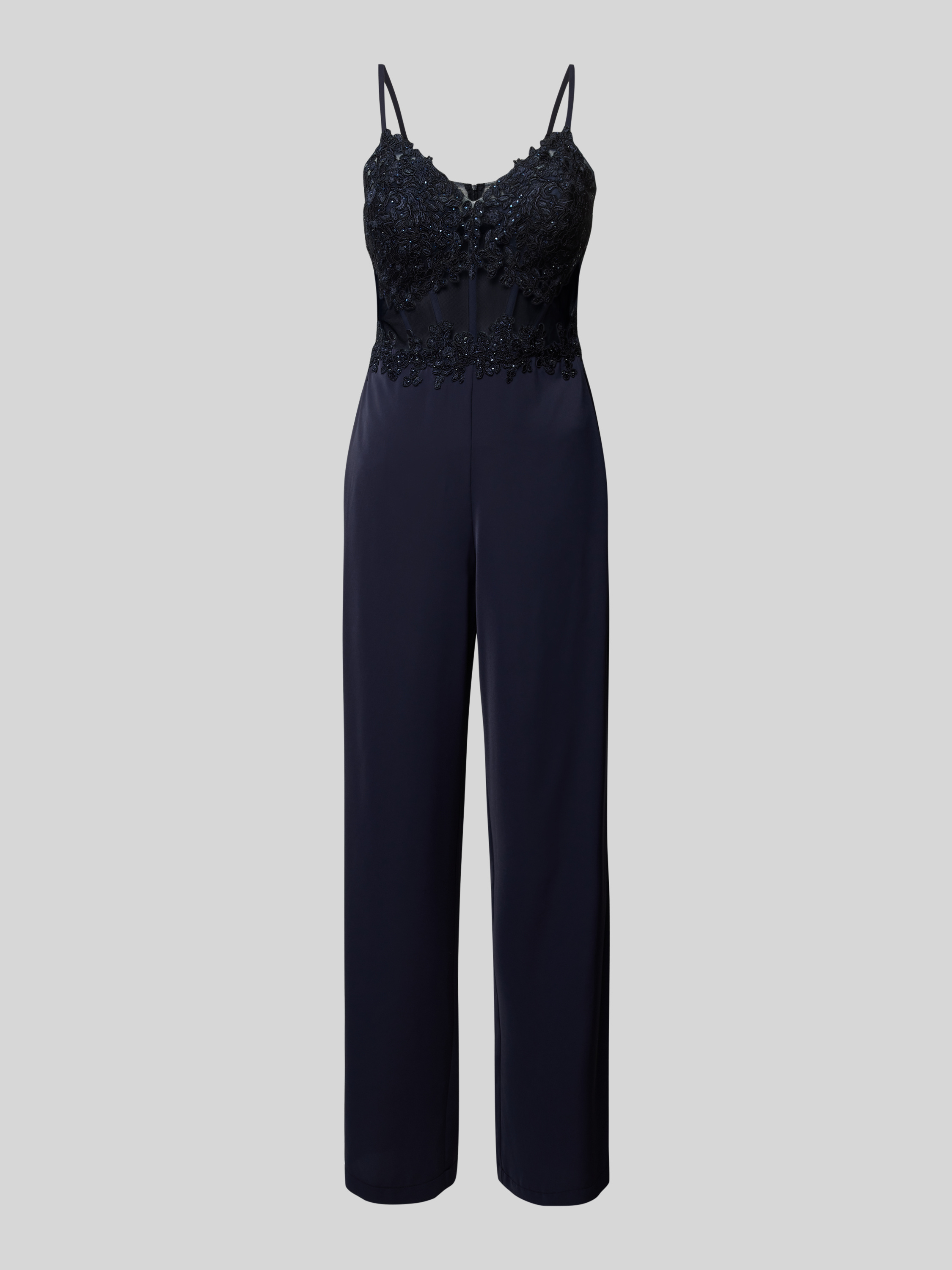 V.M.Jumpsuit mit Spitzenbesatz in dunkelblau