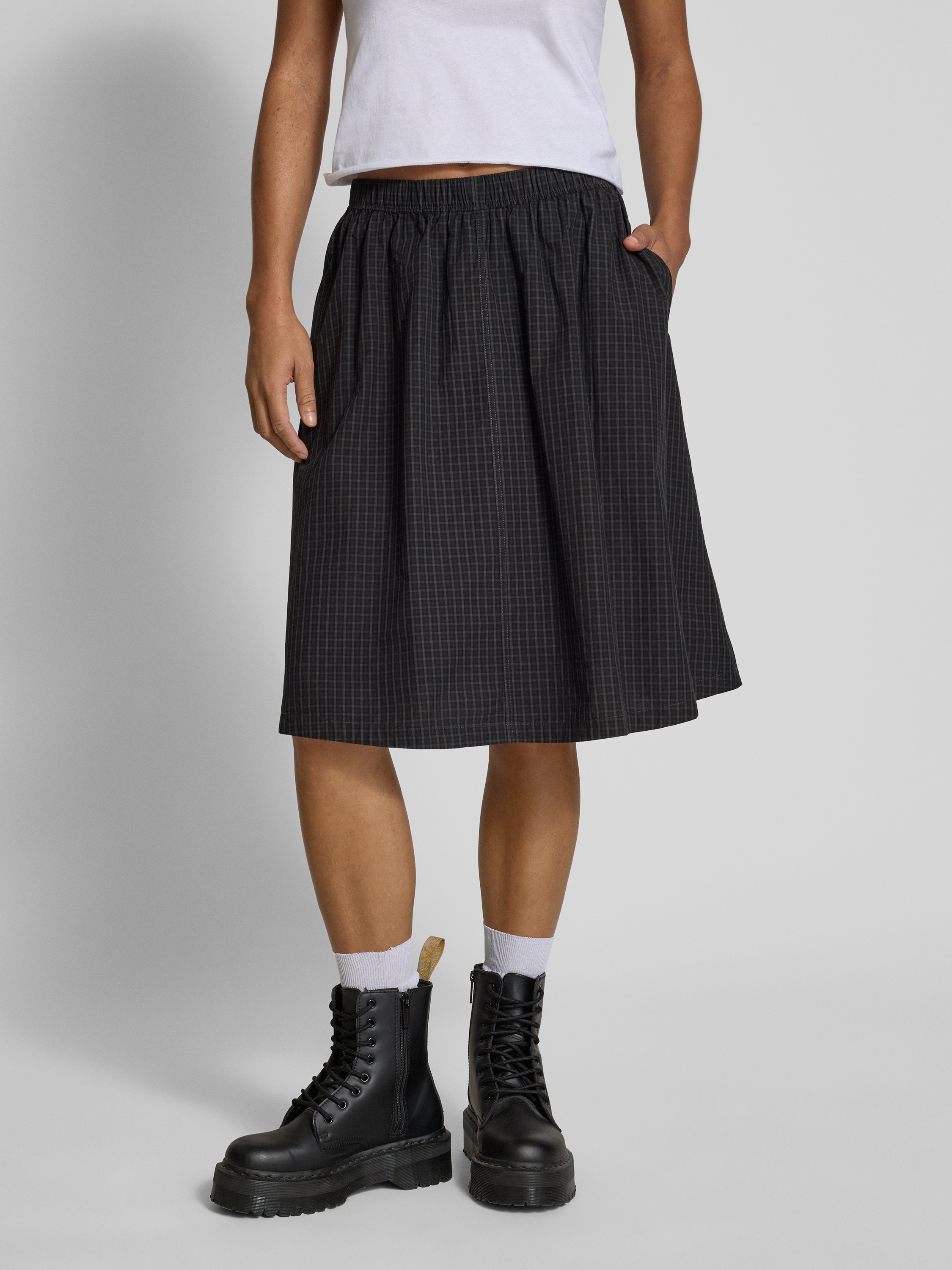 Der knielange Rock 'Tunis' von Weekday besteht aus reiner gewachster Baumwolle, die eine robuste Struktur bietet und gleichzeitig angenehm zu tragen ist. Die A-Linie sorgt für eine schmeichelhafte Silhouette, während die praktischen Eingrifftaschen funktionalen Komfort ermöglichen. Ein vielseitiger Begleiter für verschiedene Anlässe.