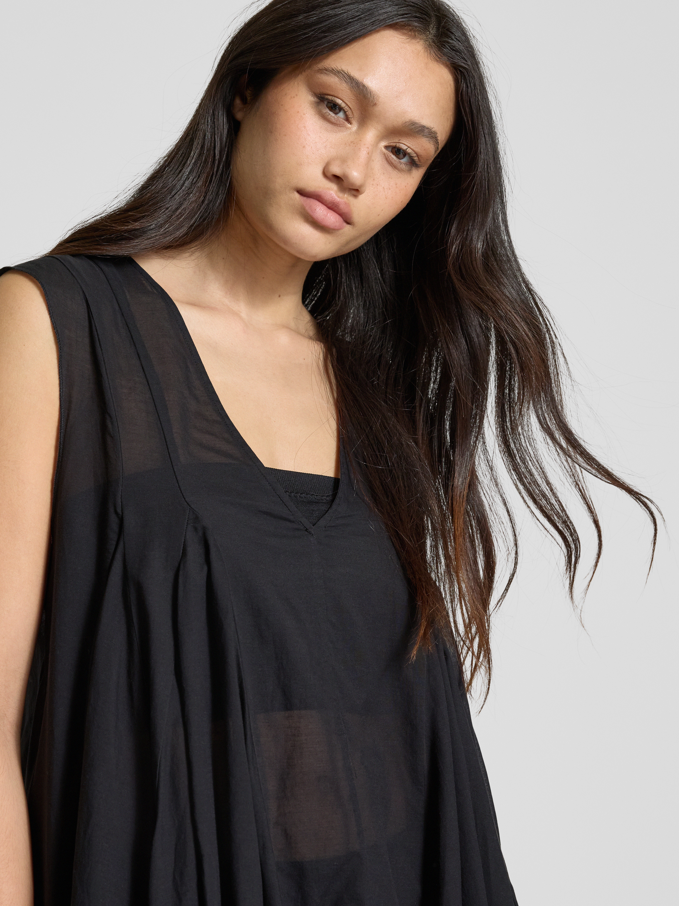 Das Minikleid von Weekday, Modell 'Nicki', kombiniert einen entspannten Viskose-Baumwoll-Mix mit einem legeren Schnitt, der Bewegungsfreiheit bietet. Der V-Ausschnitt und die gelegten Falten verleihen dem Design eine elegante Note, während der Stoff angenehm leicht auf der Haut liegt. Ideal für vielseitige Gelegenheiten.