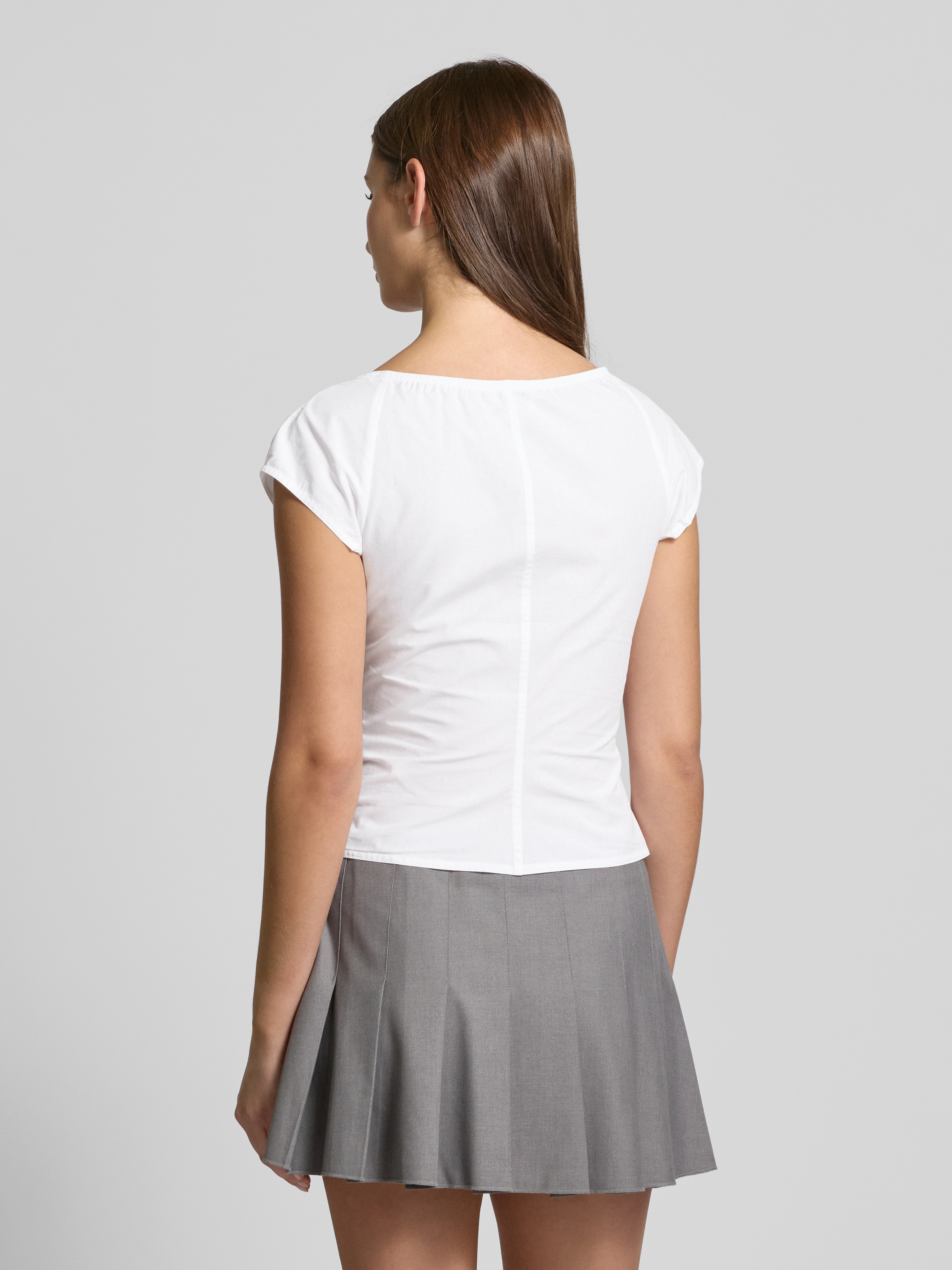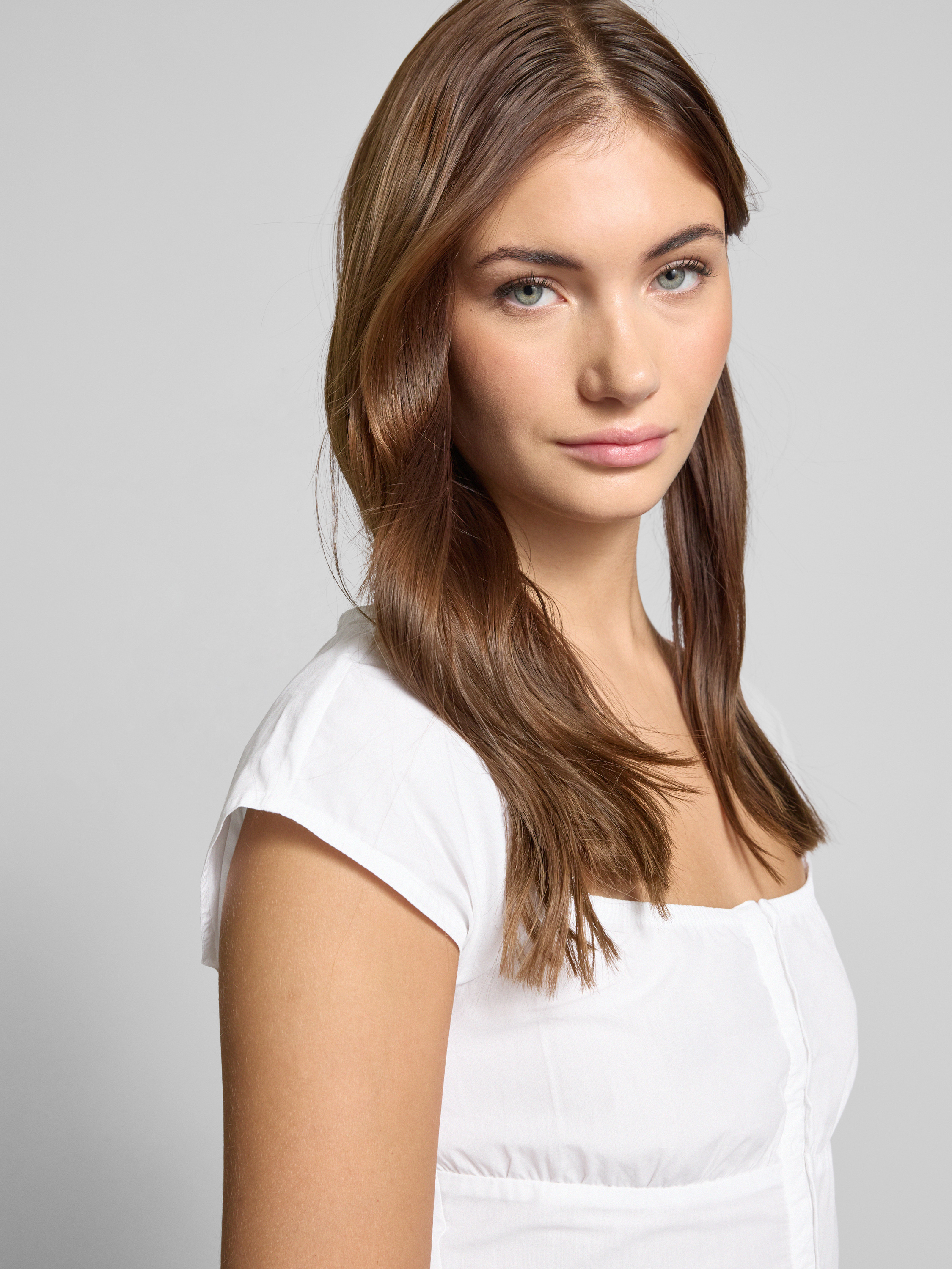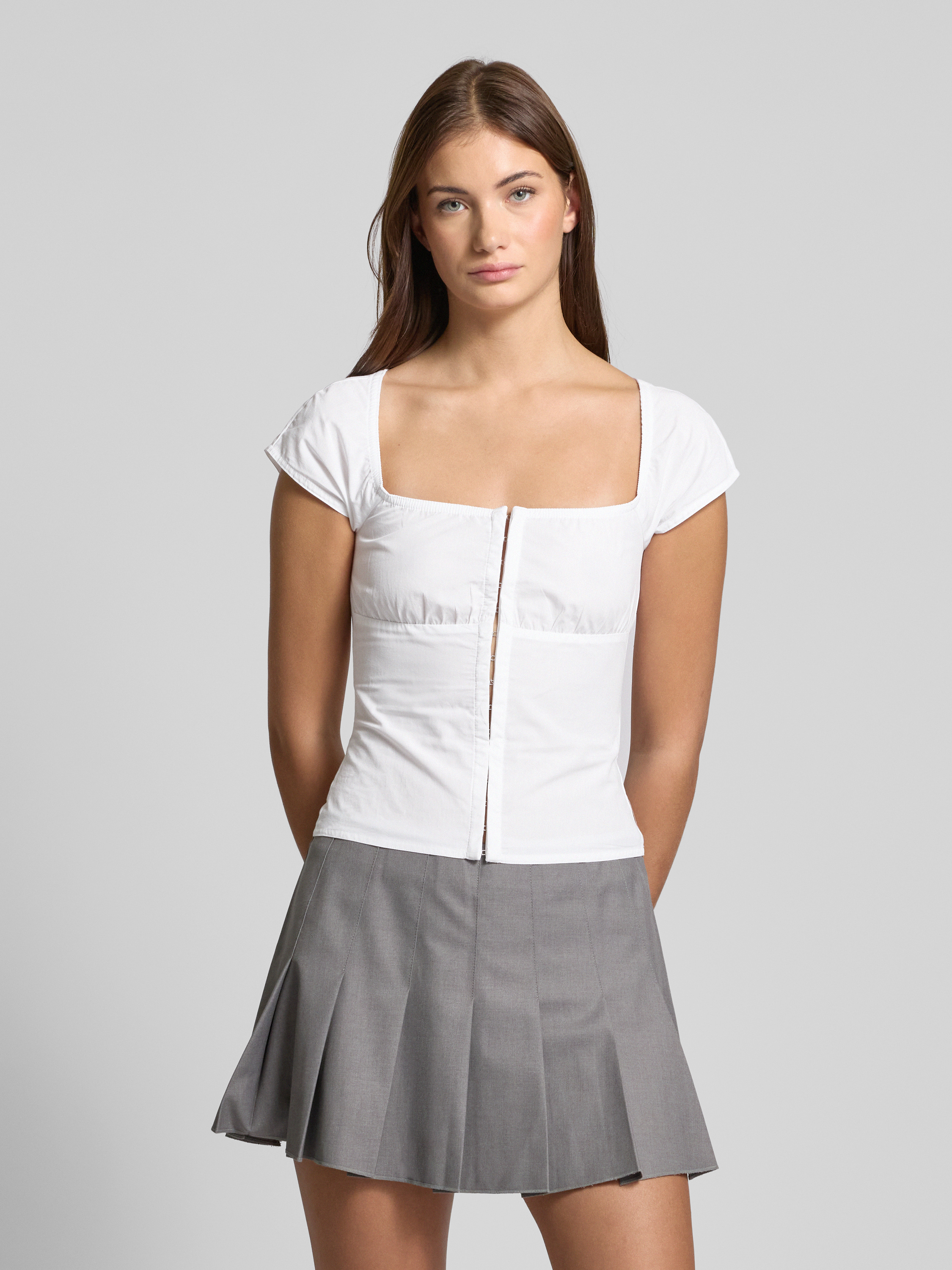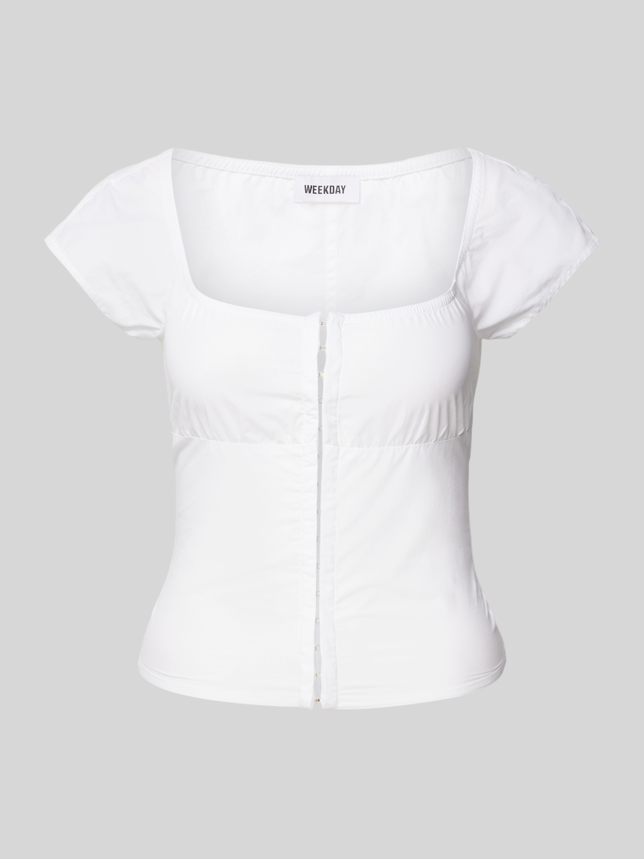 Die Skinny Fit Bluse von Weekday aus reiner Baumwolle kombiniert eine schmale Passform mit einem markanten Karree-Ausschnitt, was sie zu einer vielseitigen Ergänzung für jede Garderobe macht. Durch ihre durchgehende Hakenverschlussleiste entsteht ein eleganter Look, der sich ideal für verschiedene Anlässe eignet. Die hochwertige Baumwollqualität sorgt dabei für angenehmen Tragekomfort.