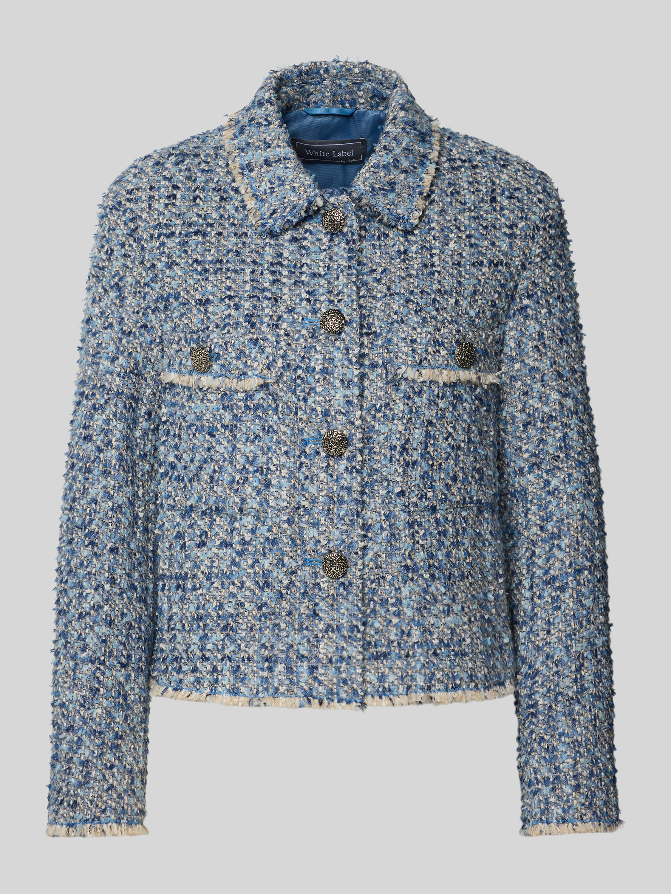Der Damen Blazer von WHITE LABEL wirkt durch die Bouclé-Optik lebendig und strukturiert, während der Material-Mix mit Woll-Anteil für ein angenehmes Tragegefühl sorgt. Fransen setzen dezente Akzente, der gerade Schnitt ergänzt verschiedenste Outfits unkompliziert. Ein Umlegekragen rundet das Gesamtbild klassisch ab.