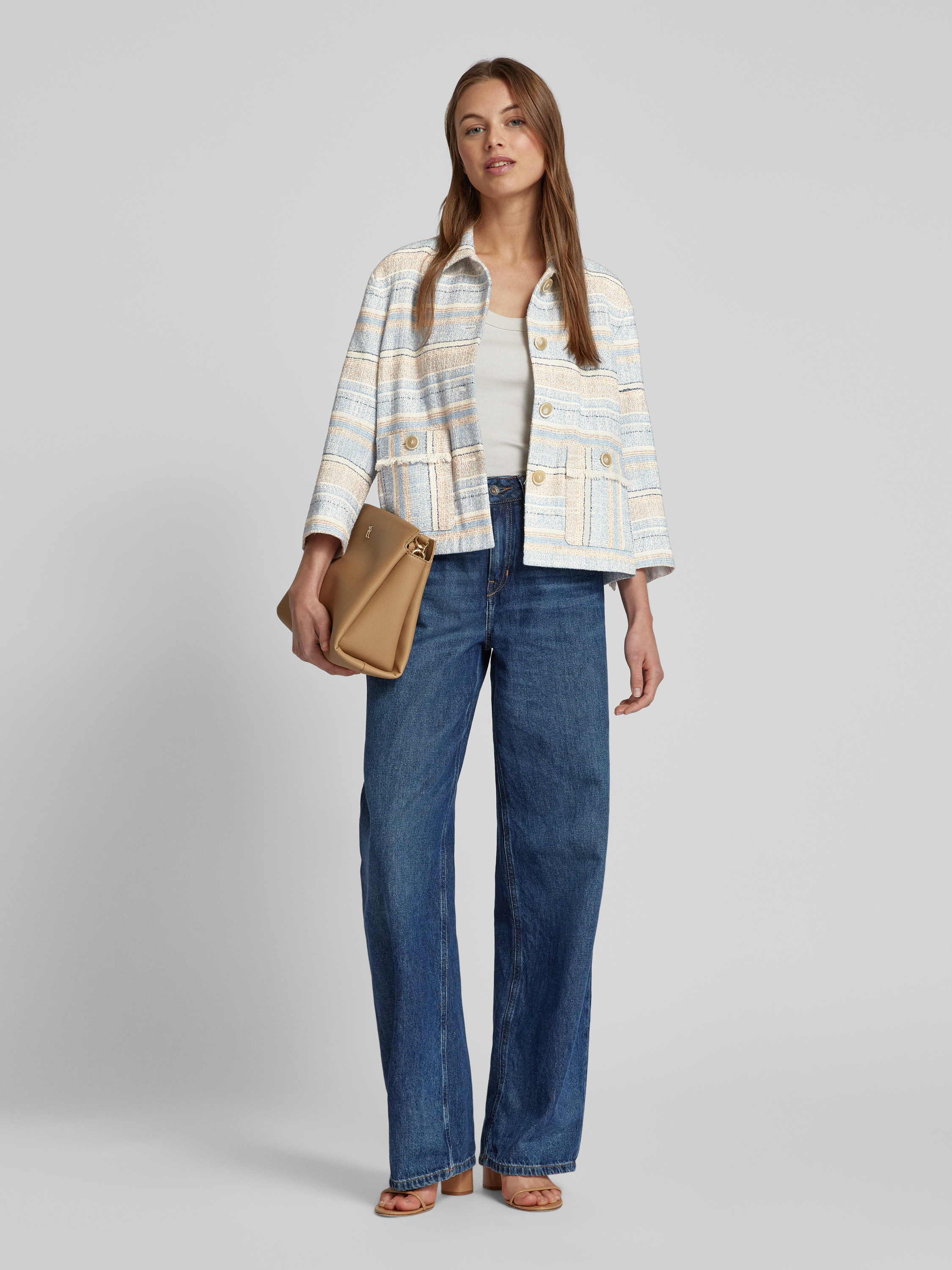 Der Blazer mit aufgesetzten Taschen von White Label kombiniert einen geraden Schnitt mit einem komfortablen 3/4-Arm, ideal für vielseitige Looks. Der Baumwoll-Mix sorgt für ein angenehmes Tragegefühl. Mit Umlegekragen und durchgehender Knopfleiste wird ein klassisches Design abgerundet.