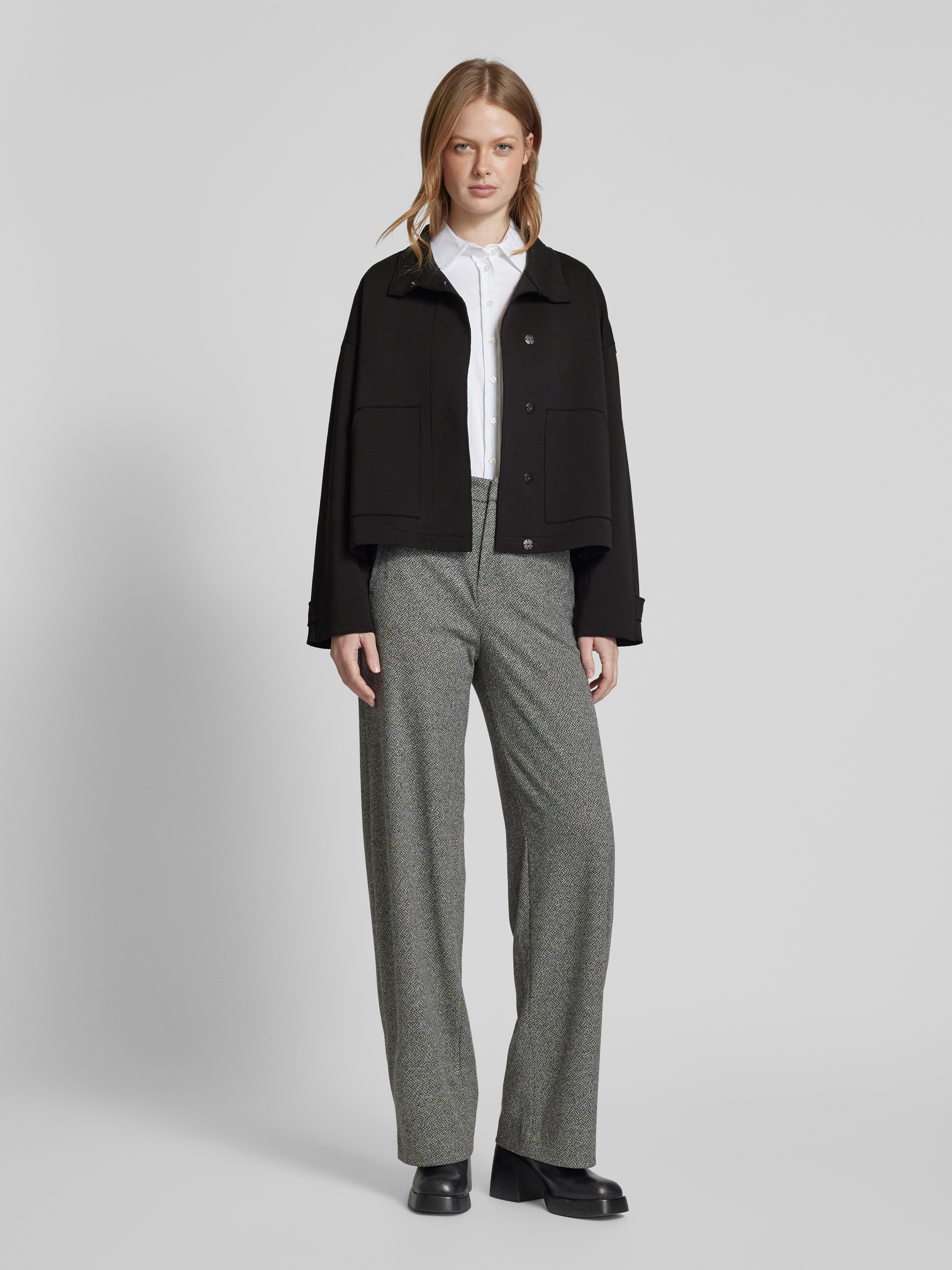 Der Blazer mit Stehkragen von White Label besticht durch seinen lockeren Schnitt und den komfortablen Baumwoll-Mix mit Stretch-Anteil. Die eleganten Ziernähte verleihen dem Design eine subtile Raffinesse. Ideal für vielseitige Gelegenheiten und einen stilvollen Auftritt.