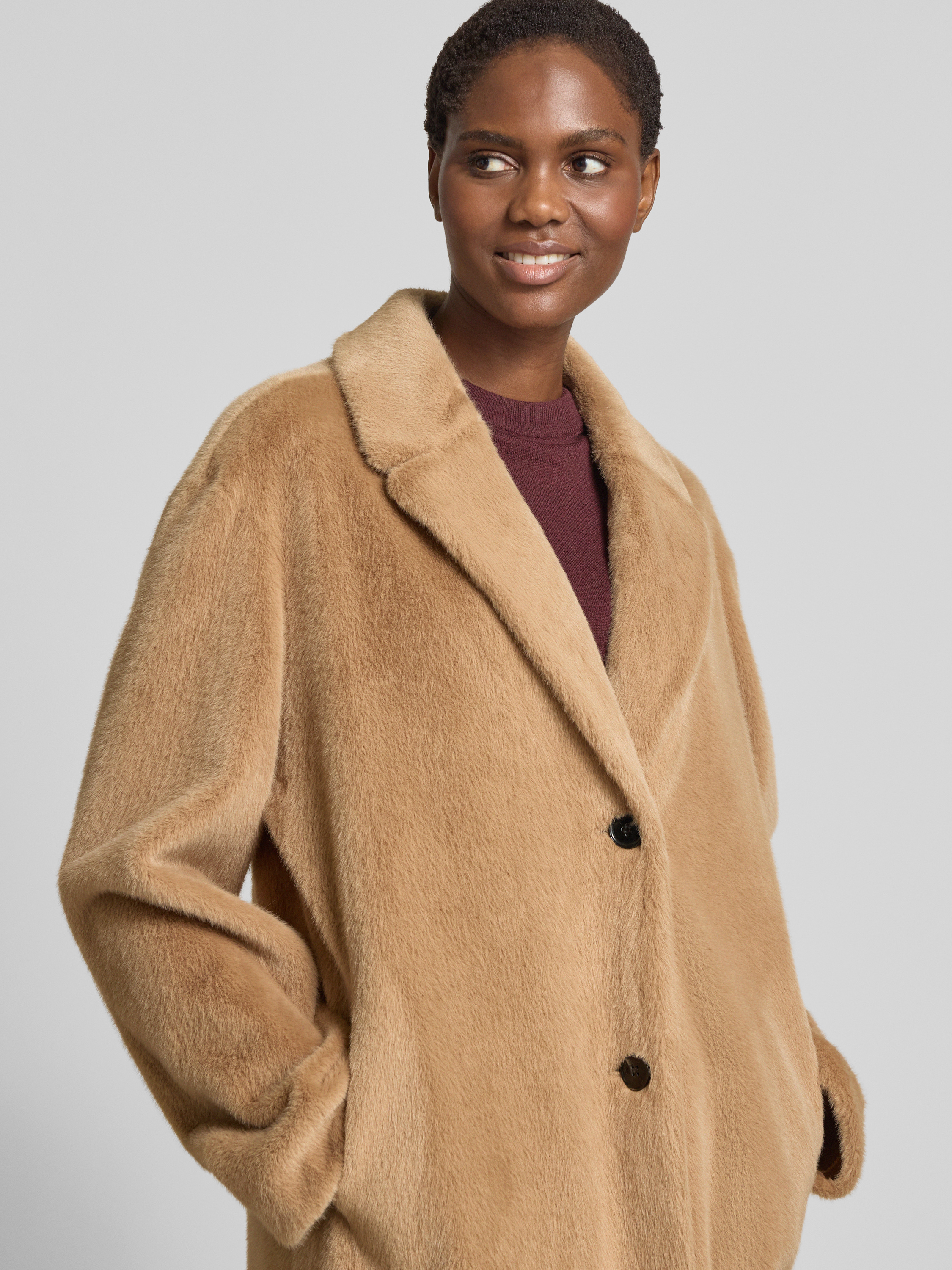 Der Damenmantel von WHITE LABEL fällt durch seinen lockeren Schnitt auf und sorgt mit dem Reverskragen für eine klassische Note. Weite Ärmel schaffen Bewegungsfreiheit und ein angenehmes Tragegefühl. Durch die legere Passform eignet sich der Mantel vielseitig für verschiedene Outfits.