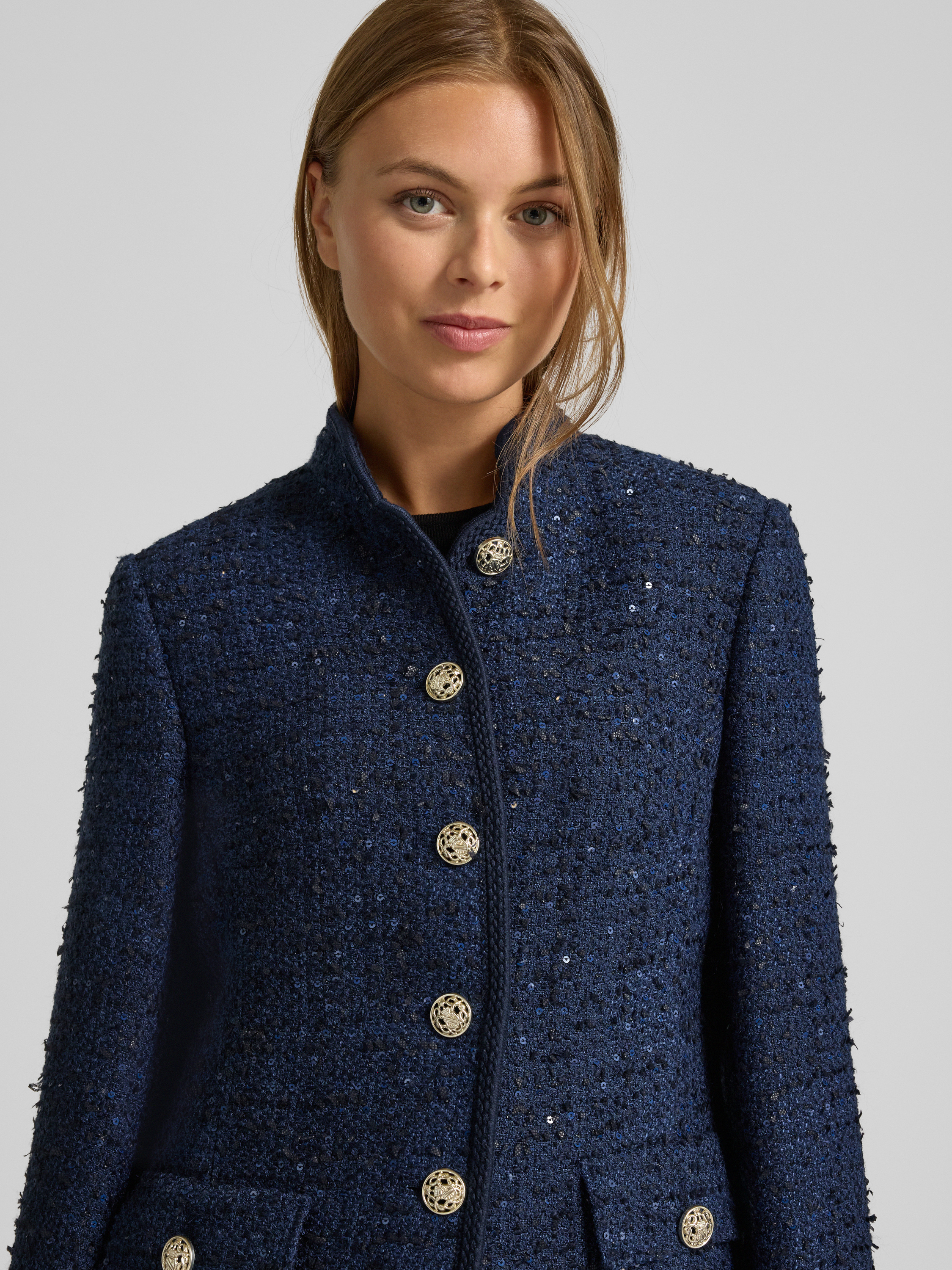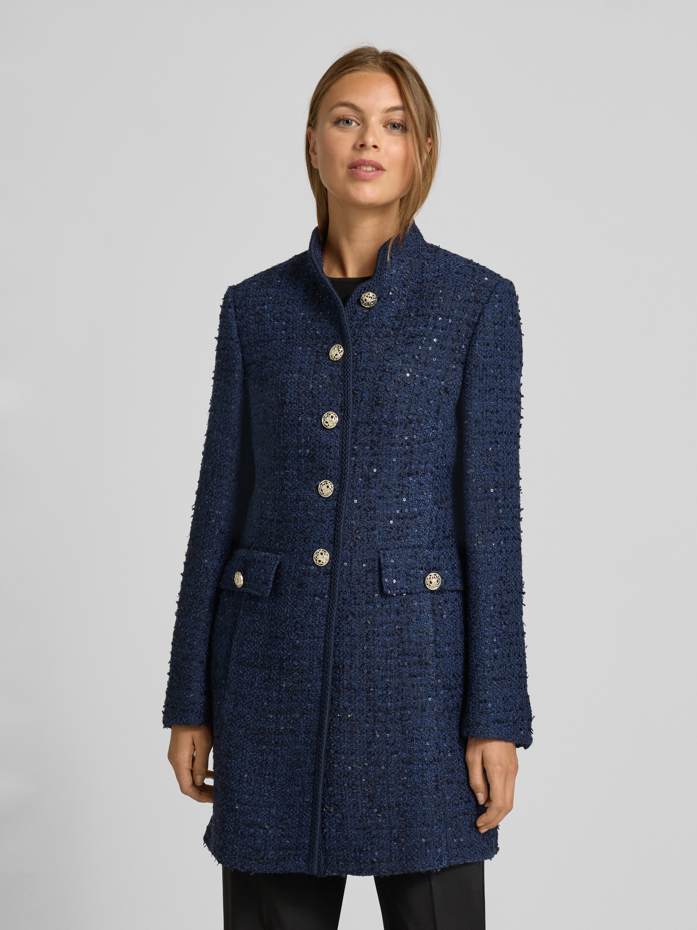 WHITE LABELMantel mit Viskose-Anteil und Pailettenbesatz in dunkelblau