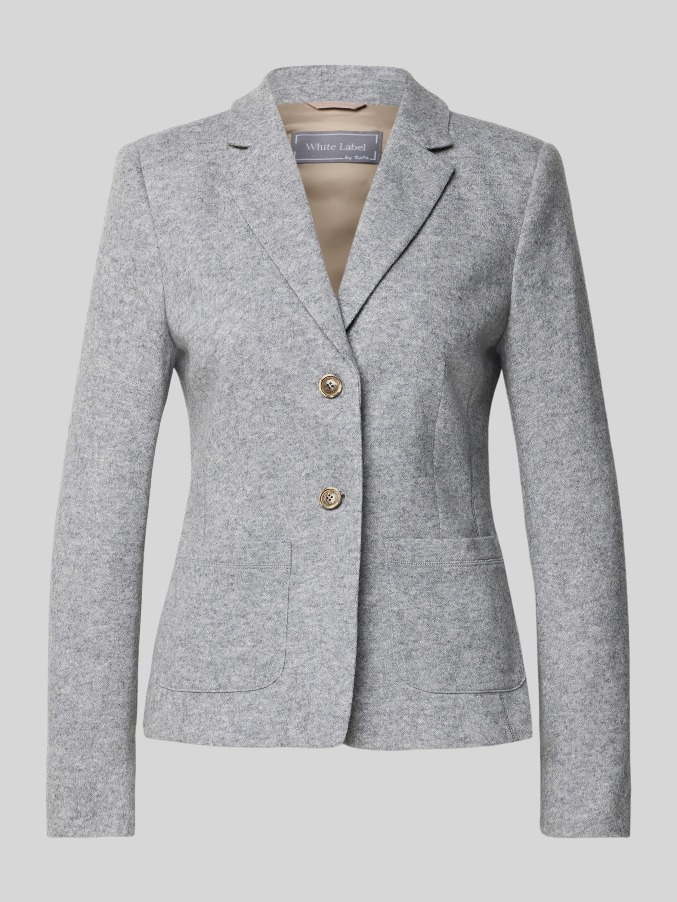 Der Damen Blazer von WHITE LABEL zeigt sich in schlanker Passform und bringt durch den Woll-Mix ein angenehmes Tragegefühl in den Alltag. Mit dem klassischen Reverskragen lässt sich der Look vielseitig kombinieren. Dezente Eingrifftaschen ergänzen das schlichte Design auf praktische Weise.