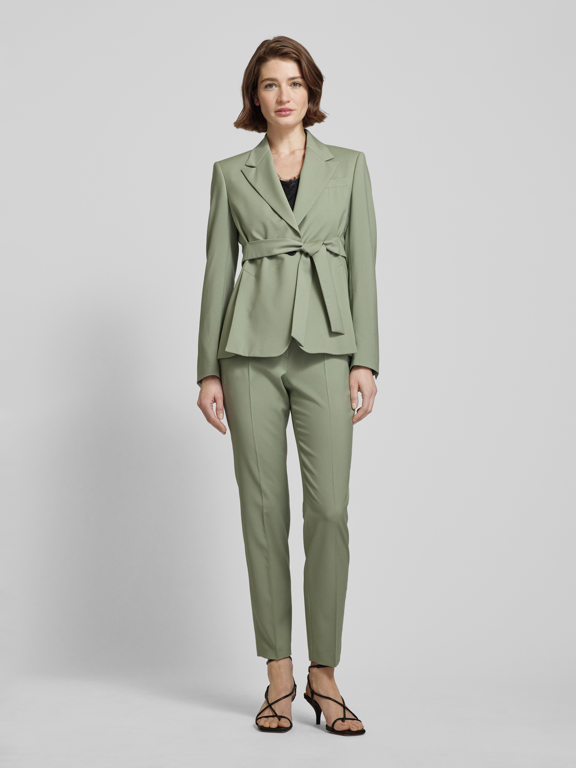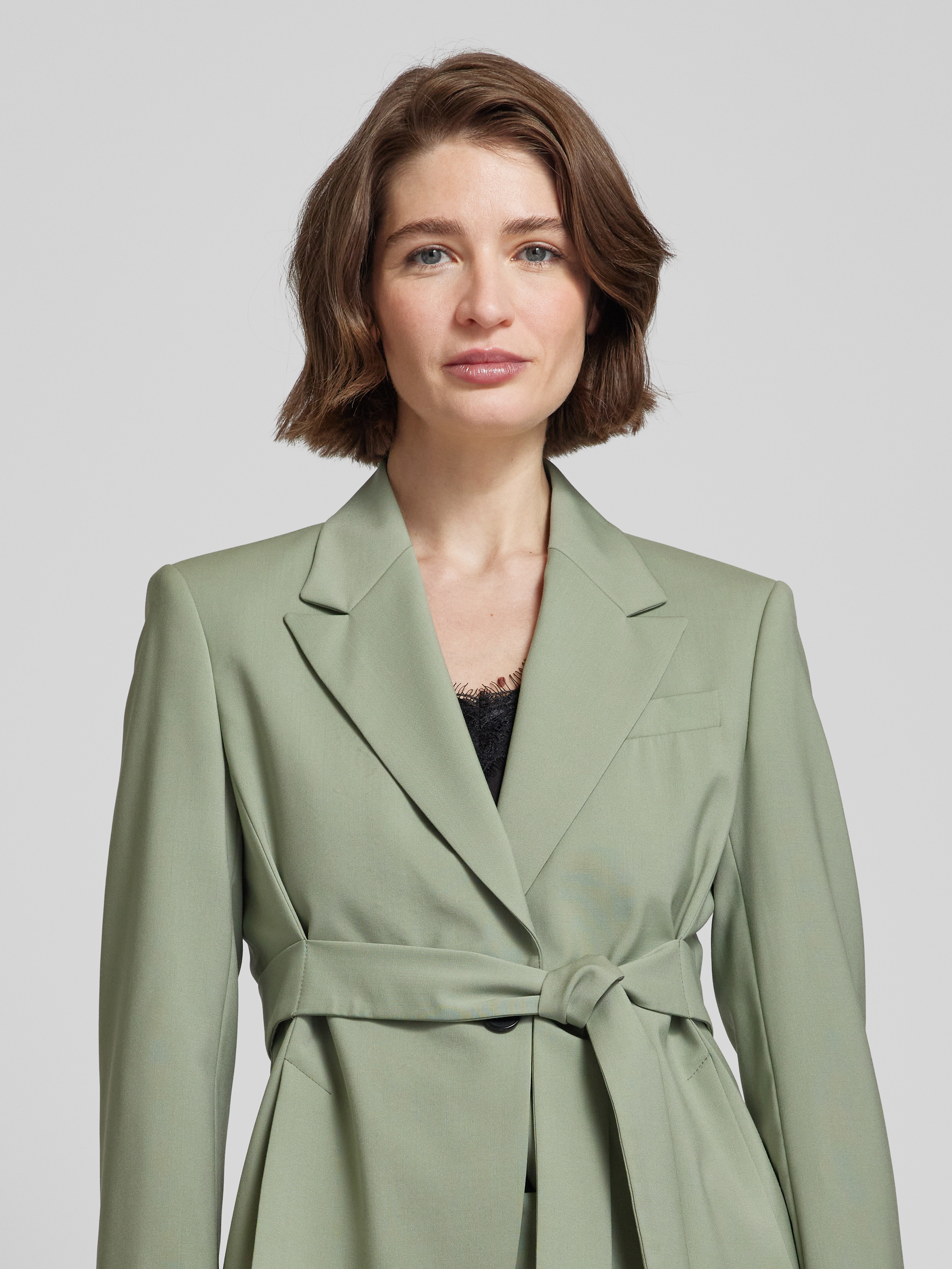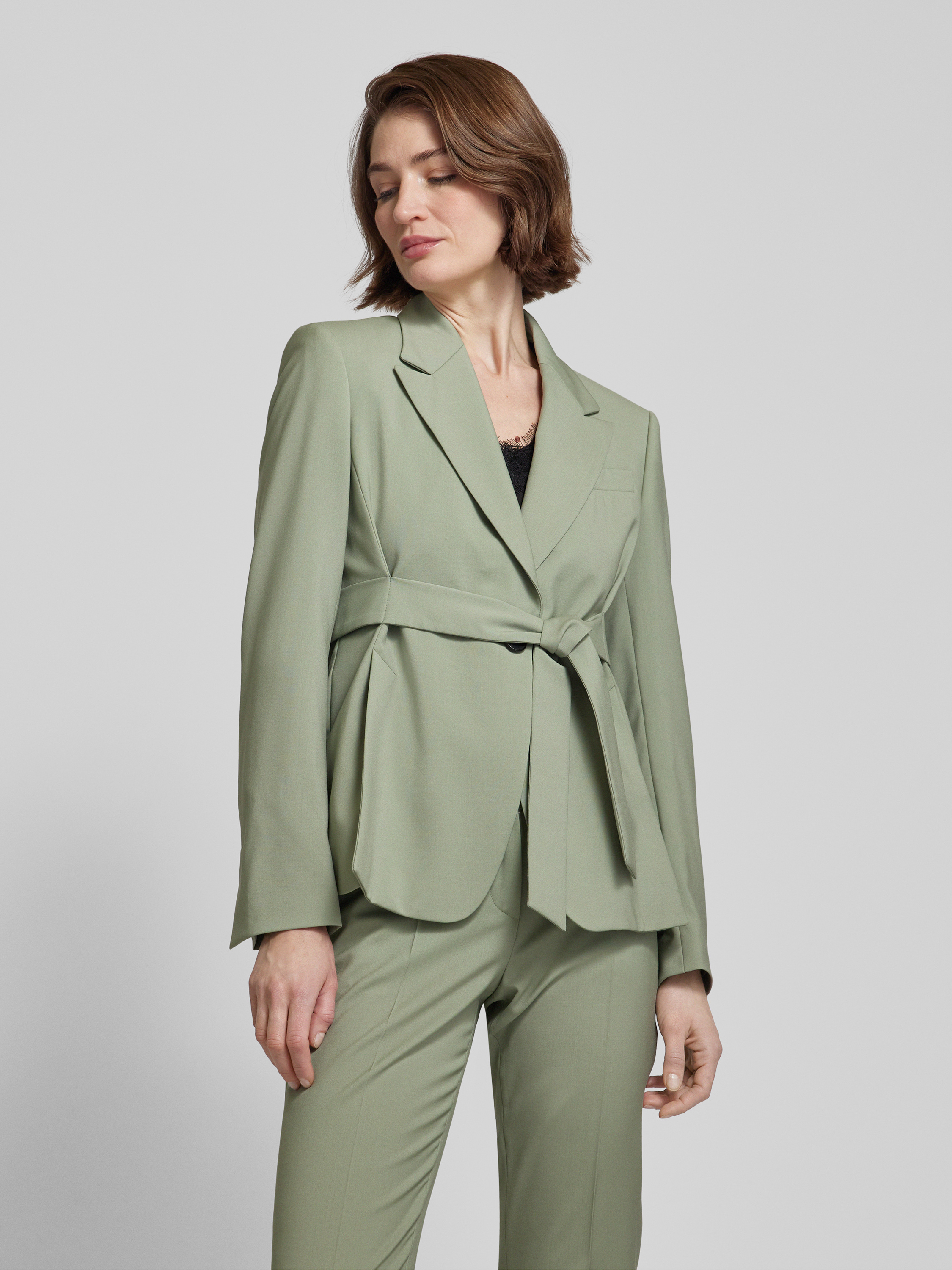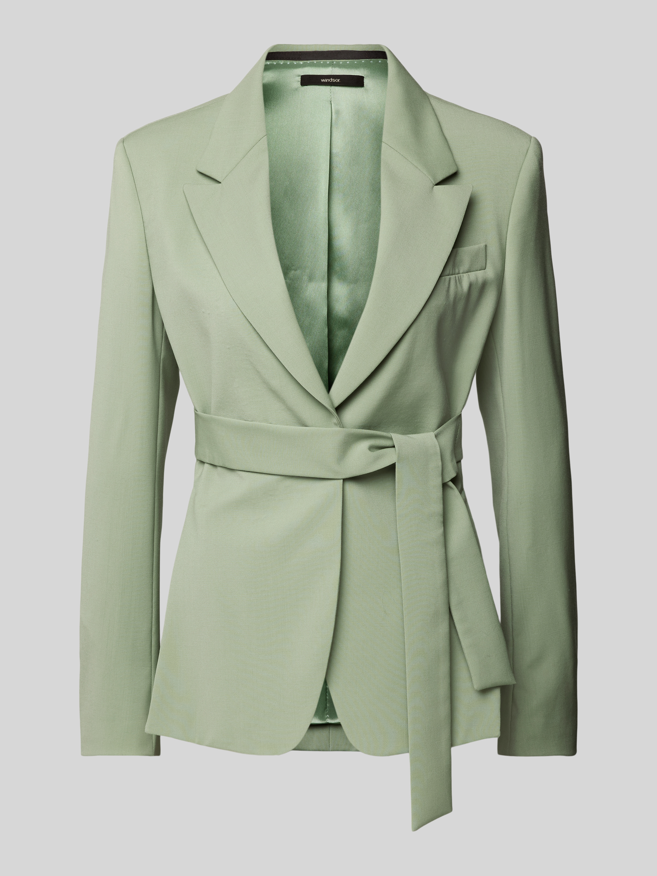 Der Blazer von windsor. aus reiner Baumwolle zeichnet sich durch seinen taillierten Schnitt aus, der eine elegante Silhouette schafft. Mit einem klassischen Reverskragen und einem praktischen Bindegürtel lässt sich das unifarbene Design vielseitig kombinieren. Eine Brustleistentasche ergänzt das stilvolle Erscheinungsbild.