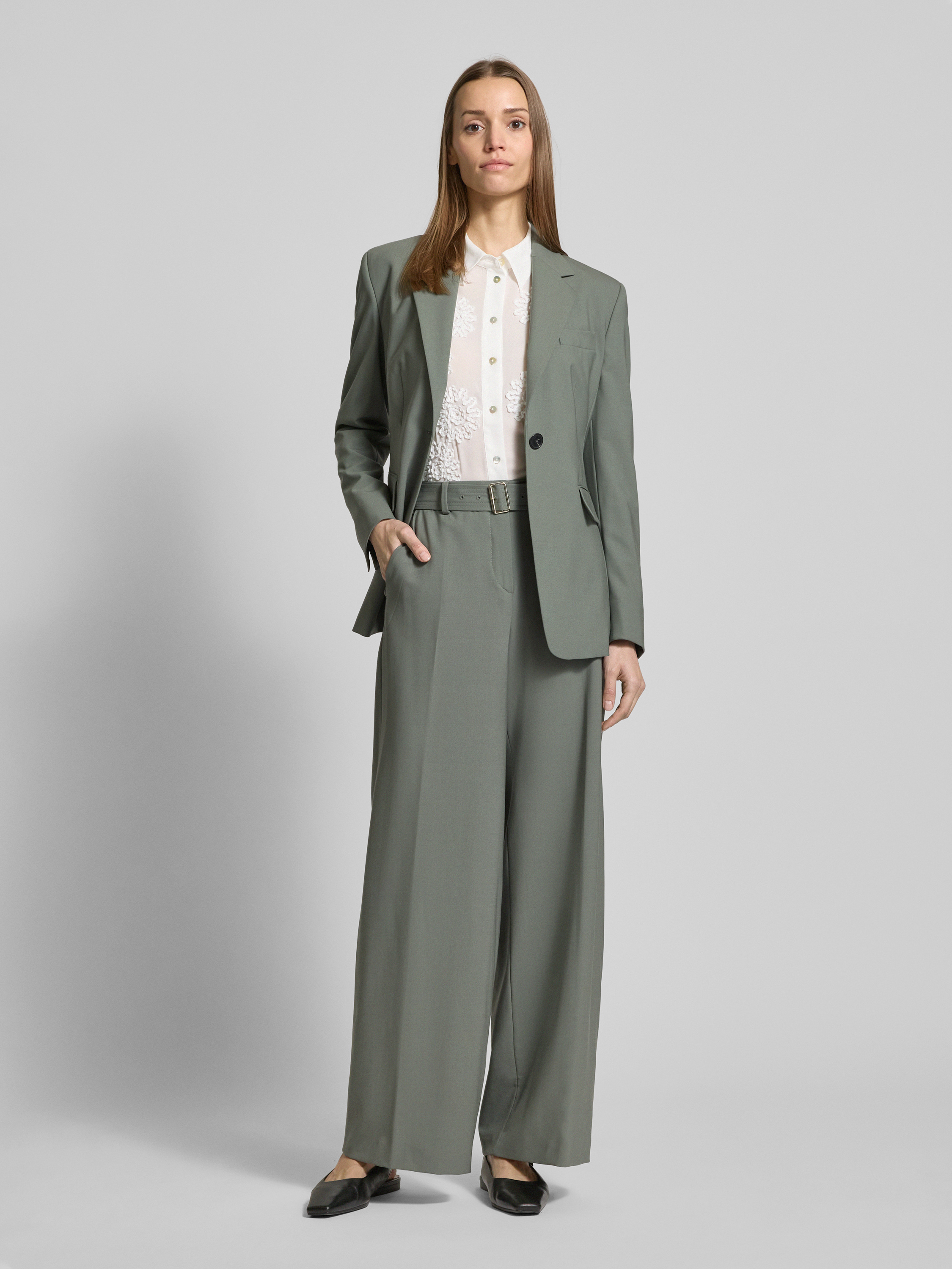 Der Blazer von windsor. zeichnet sich durch seinen eleganten, taillierten Schnitt aus, der eine feminine Silhouette formt. Der Lanawoll-Elasthan-Mix sorgt für angenehmen Tragekomfort, während die Brustleistentasche und Pattentaschen praktische Details bieten. Ein stilvoller Reverskragen rundet das Design harmonisch ab.