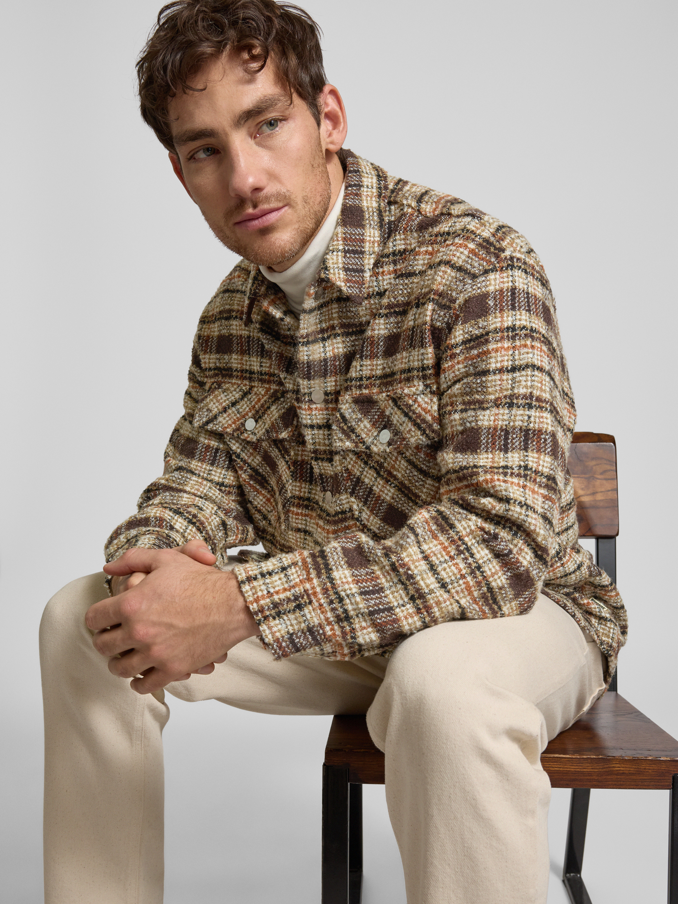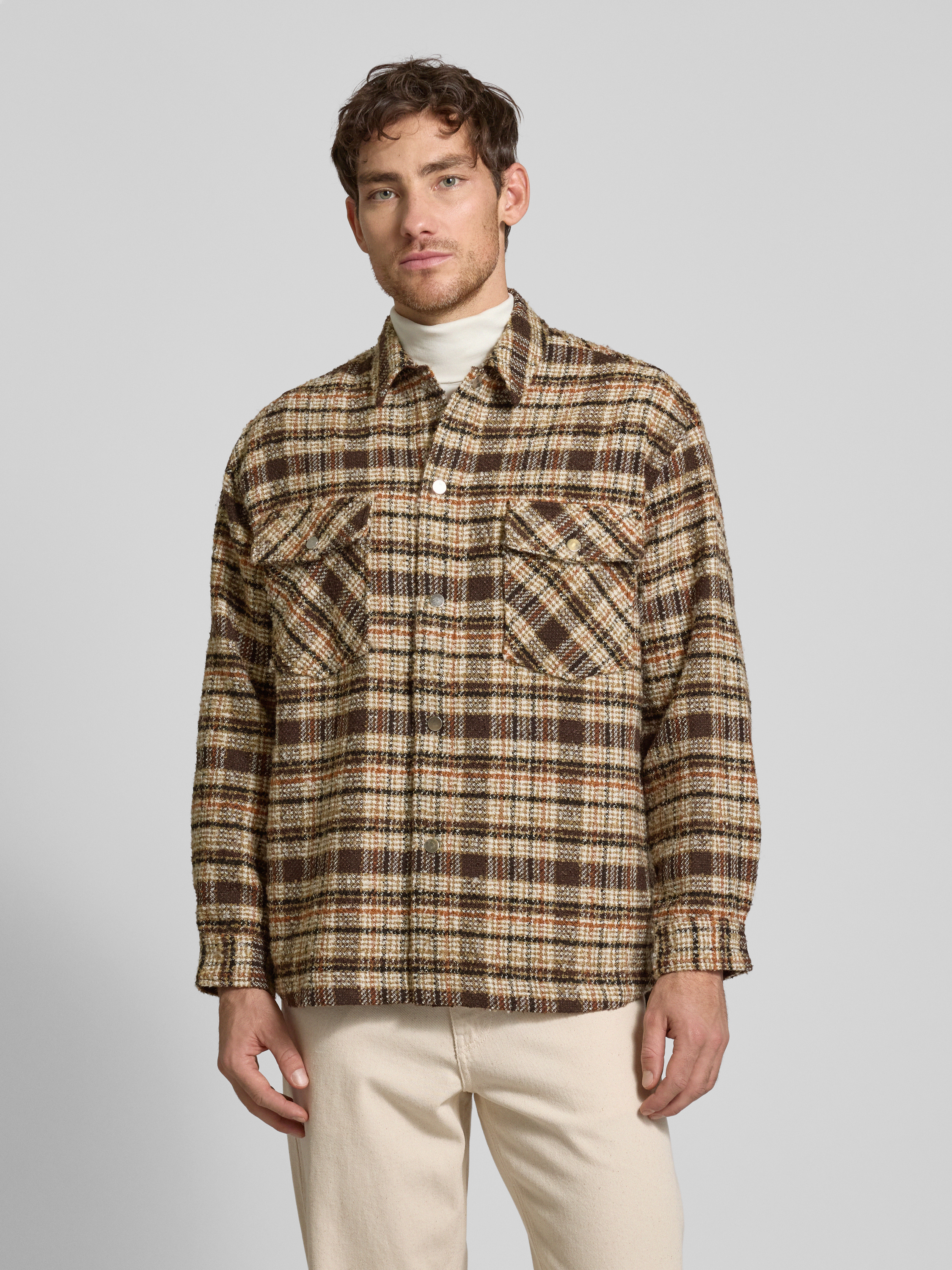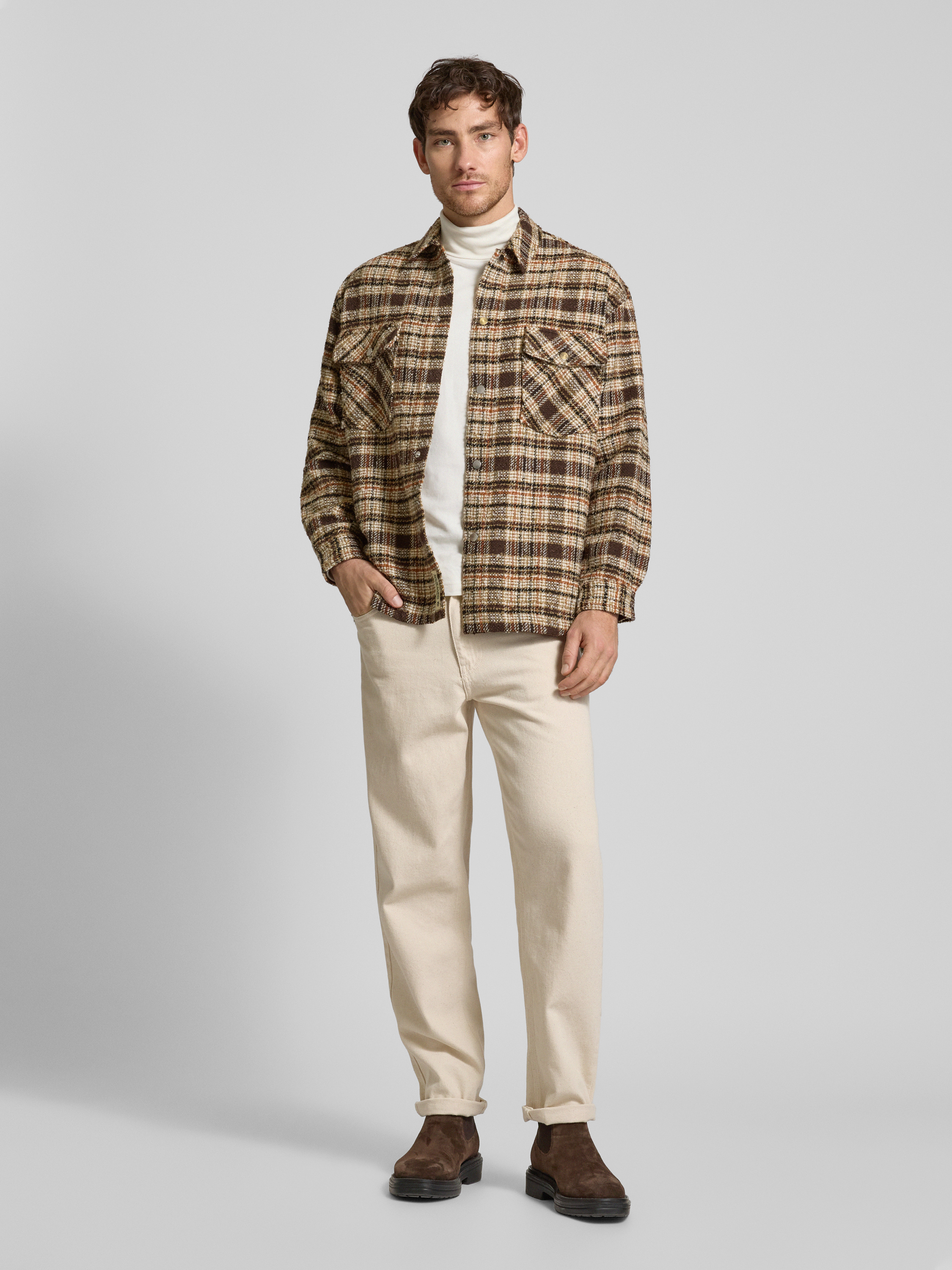 WOODBIRDOversized Hemdjacke mit Kentkragen Modell 'Buck' in hellbraun