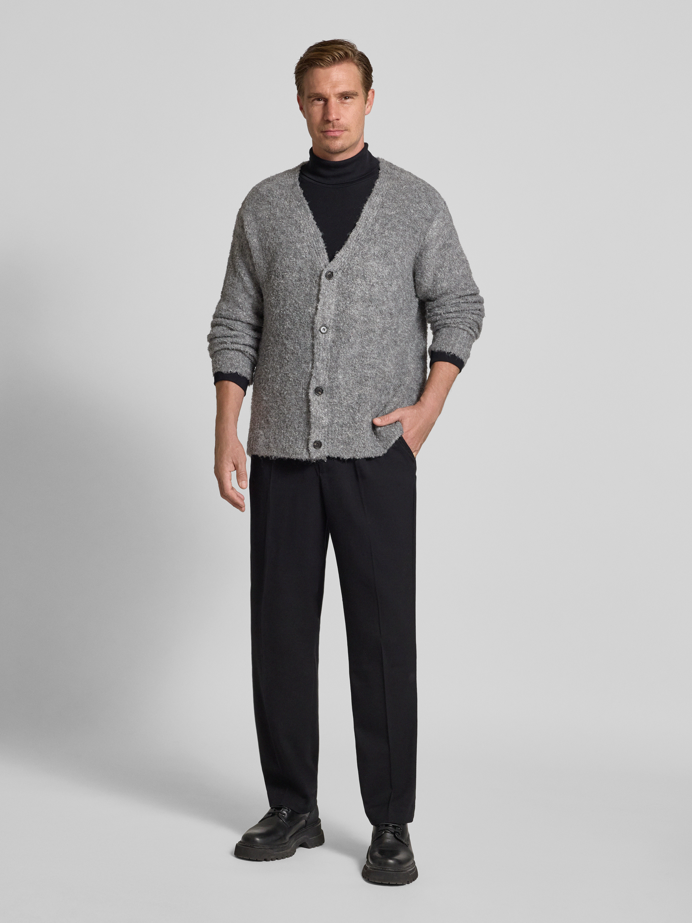 Die Herren Strickjacke von WOODBIRD, Modell 'Koon', kombiniert einen Material-Mix mit Woll-Anteil und sorgt so für angenehme Wärme sowie ein angenehmes Tragegefühl. Durch den geraden Schnitt und den klassischen V-Ausschnitt passt sie zu unterschiedlichen Outfits und wirkt zurückhaltend. Dank der durchdachten Verarbeitung bleibt sie im Alltag komfortabel, ohne aufzutragen oder einzuengen.