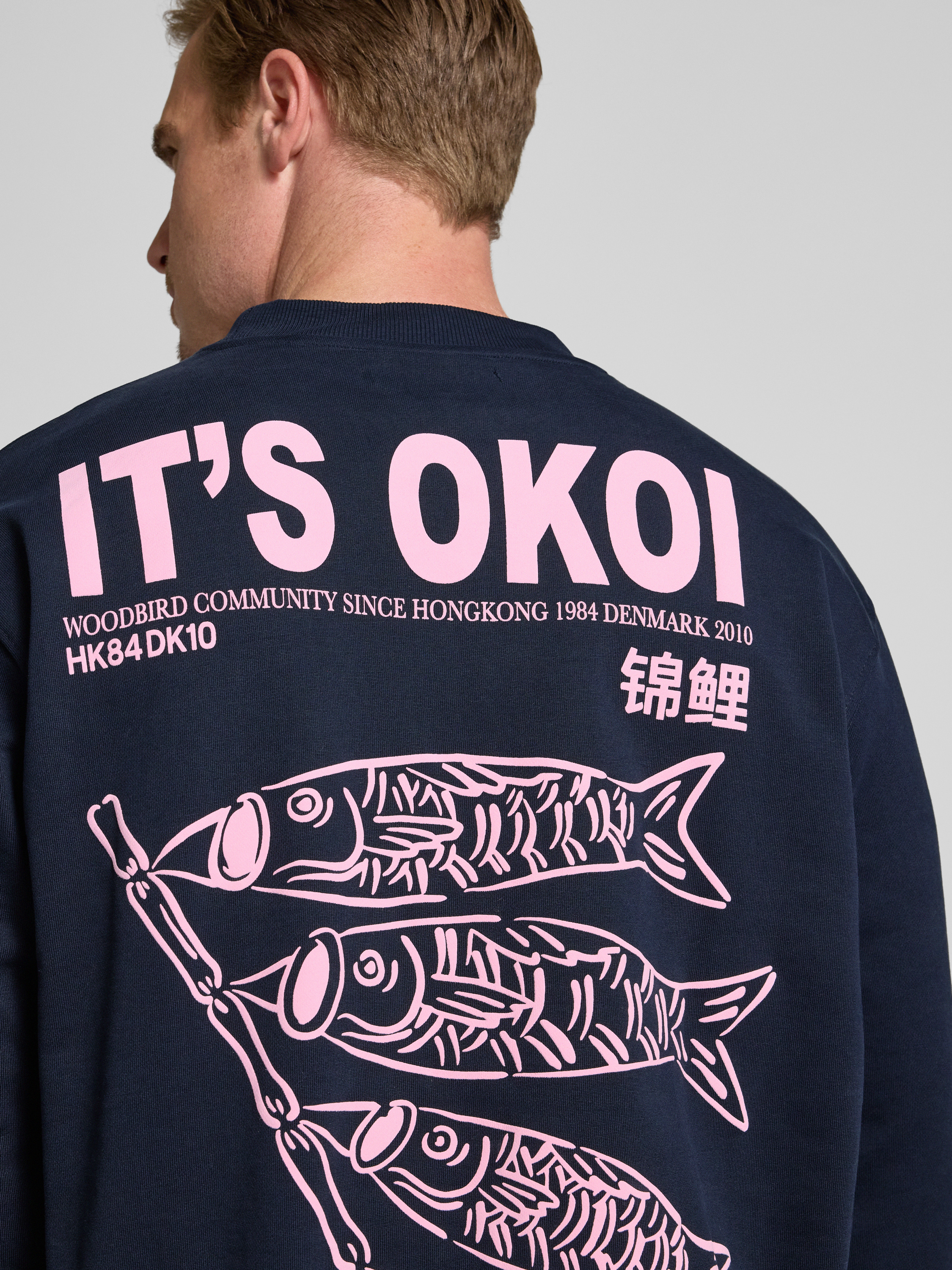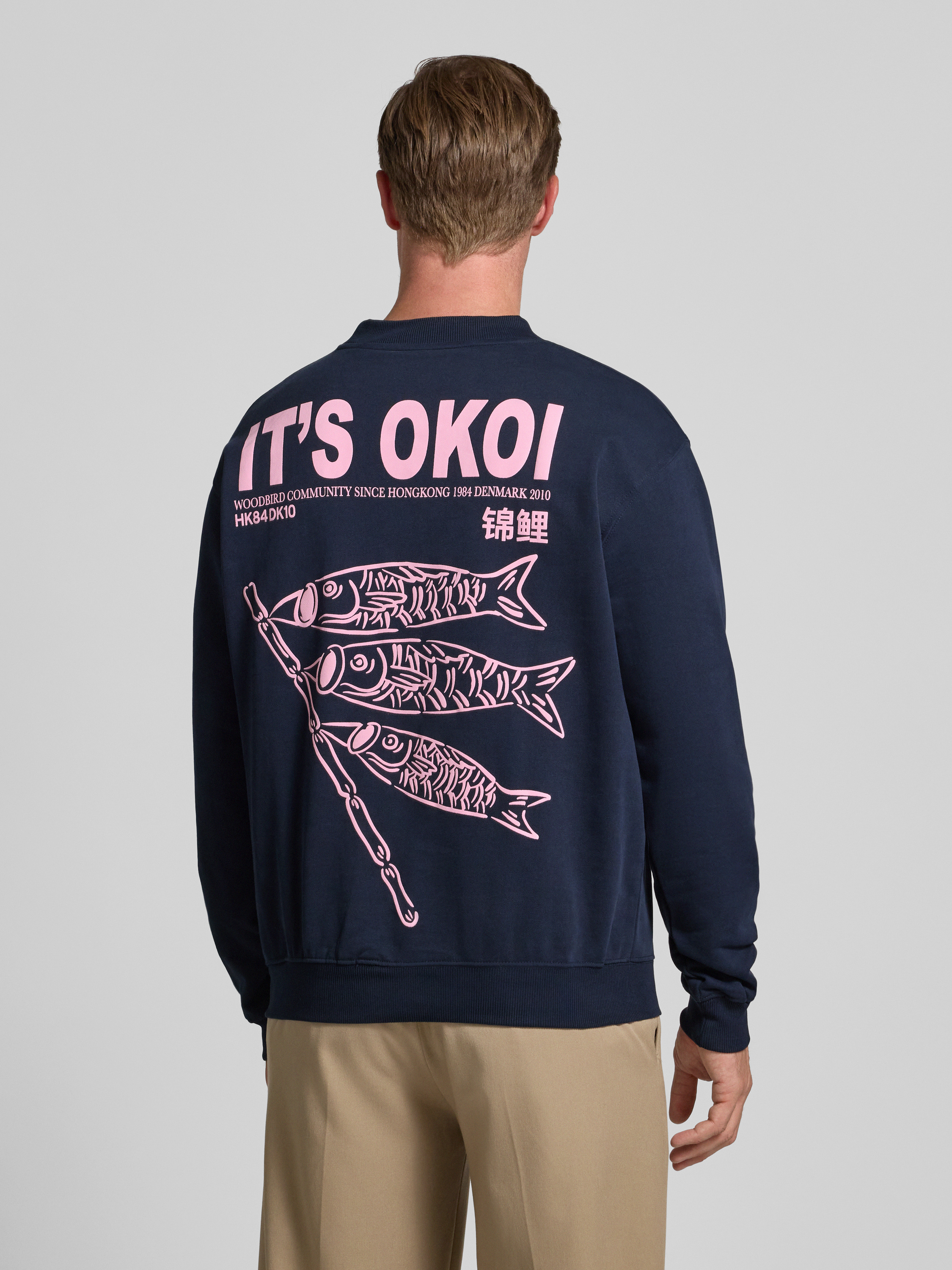 WOODBIRDSweatshirt mit Label-Print Modell 'Cane Koi Crew' in marine