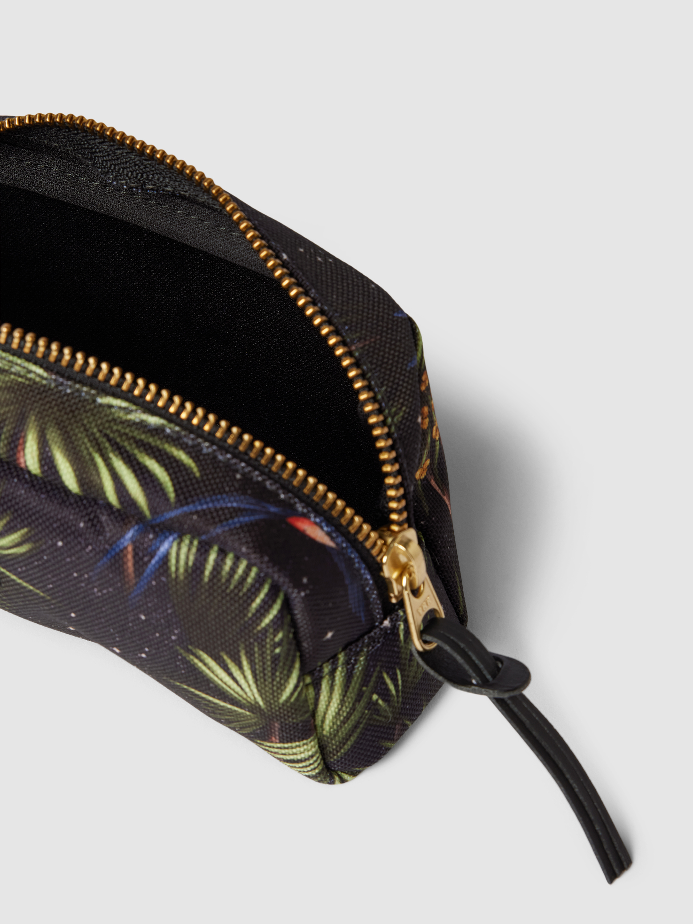 Die Kosmetiktasche 'Paradise' von Wouf bietet mit ihrem farbenfrohen Allover-Muster einen stilvollen Begleiter für unterwegs. Gefertigt aus robustem Material, schützt sie ihre Utensilien zuverlässig. Das geräumige Hauptfach ermöglicht eine übersichtliche Aufbewahrung, während der Label-Patch dezente Eleganz verleiht.