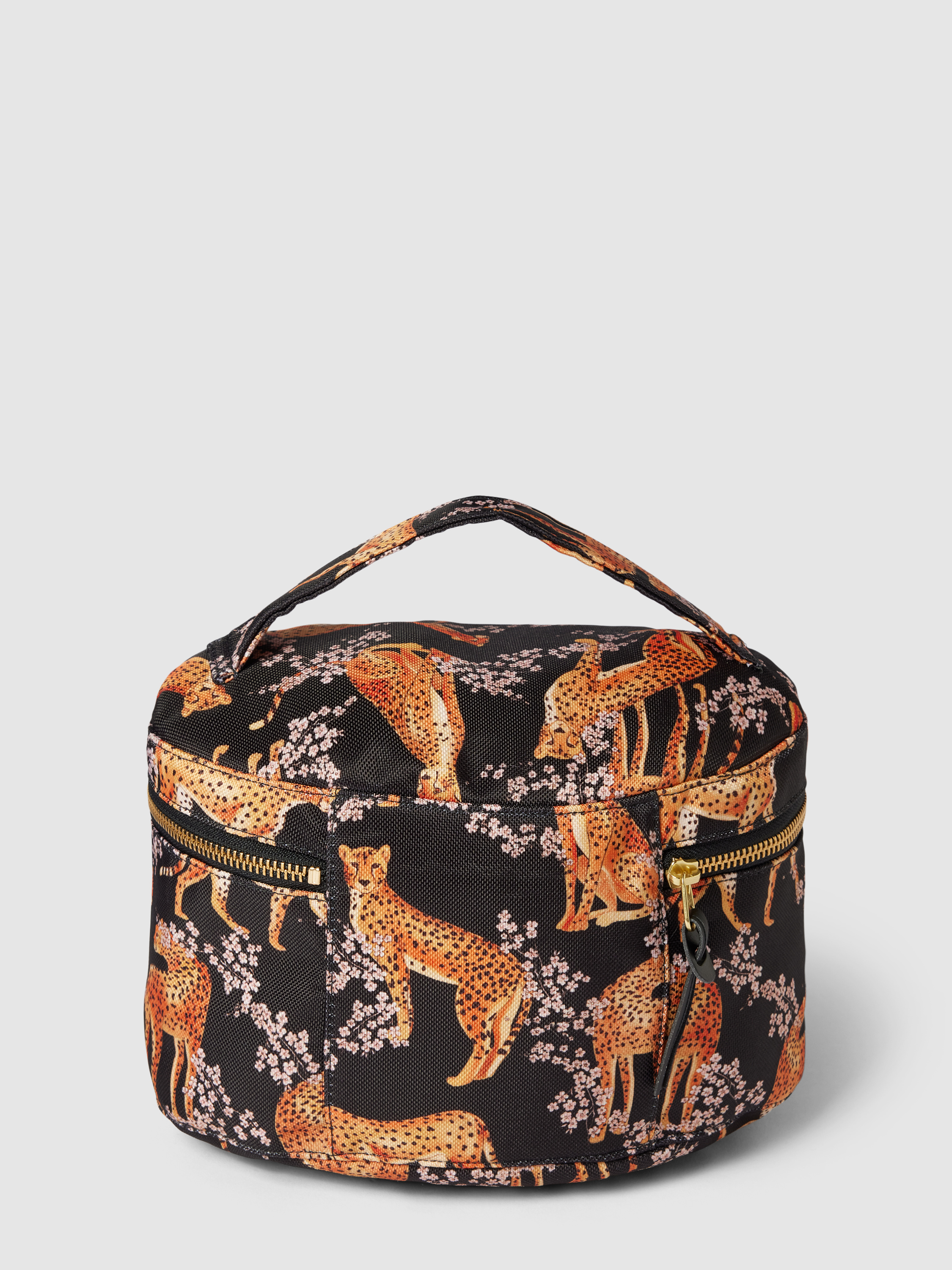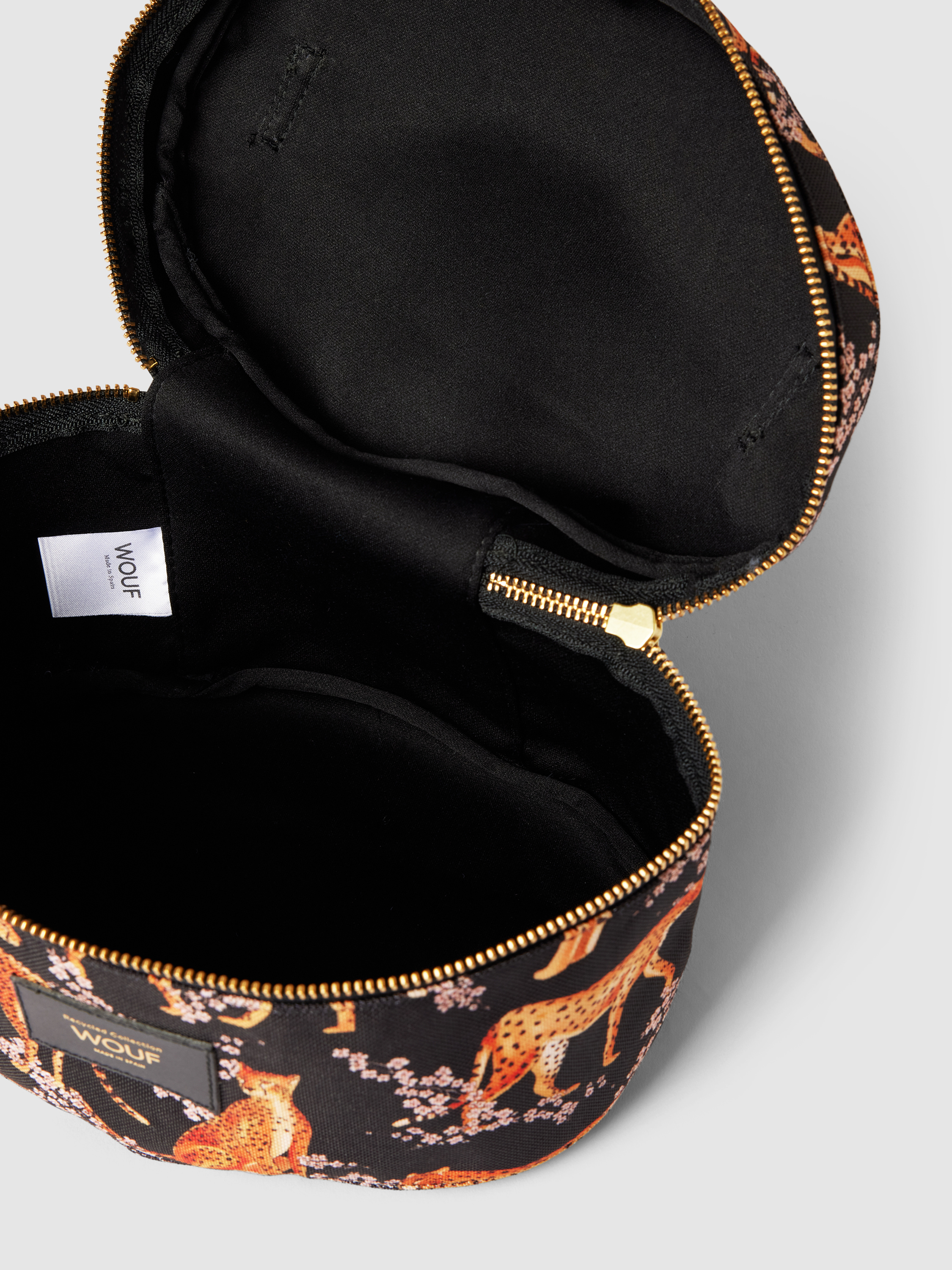 Die Kosmetiktasche 'Salome' von Wouf vereint Funktionalität mit einem ansprechenden Allover-Muster, das sofort ins Auge fällt. Ein kurzer Henkel sorgt für angenehmen Tragekomfort, während das geräumige Hauptfach Platz für essentielle Beauty-Utensilien bietet. Ein dezentes Label-Patch rundet das Design stilvoll ab.