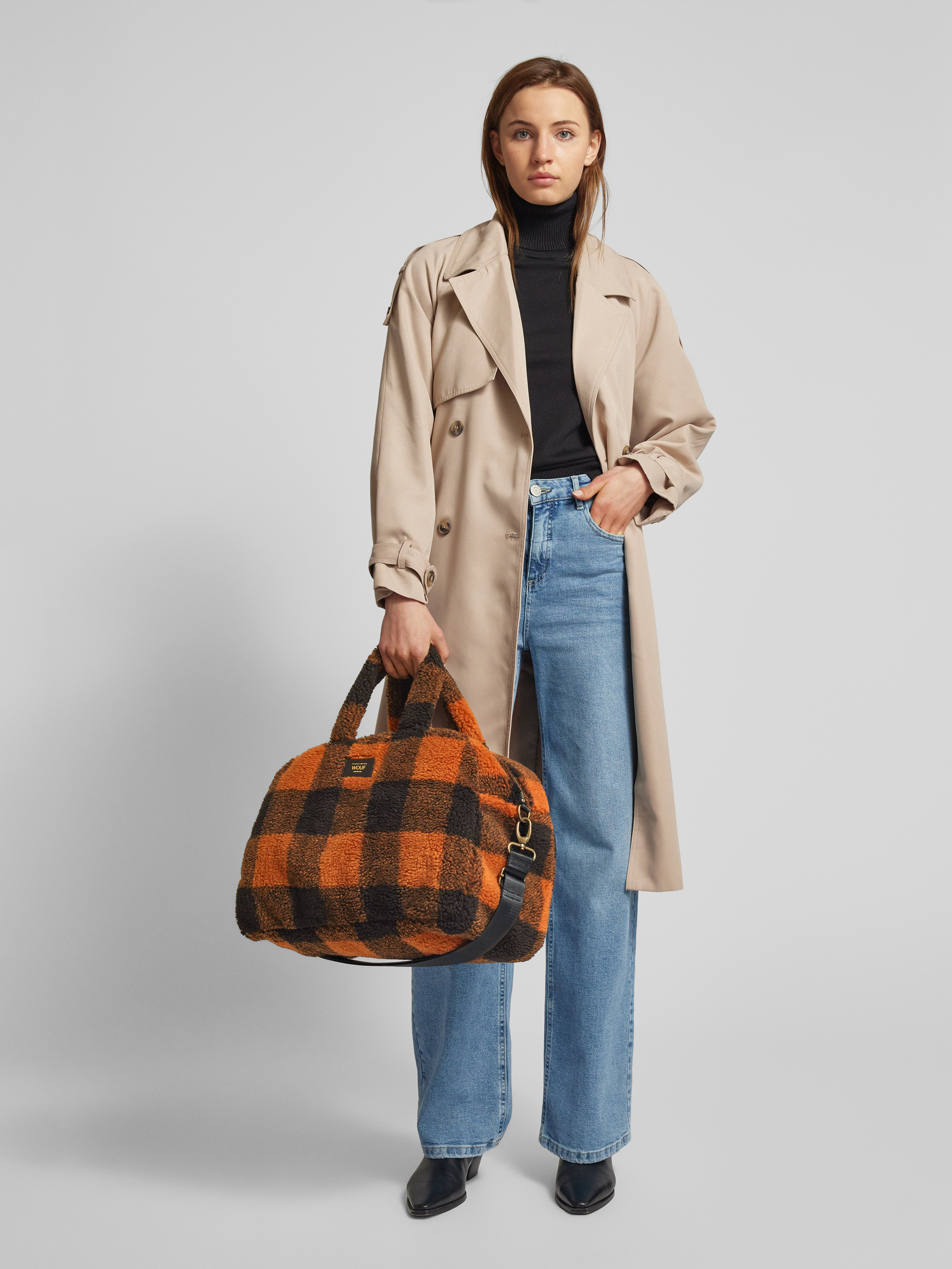 Der Weekender 'Brownie' von Wouf vereint stilvolles Vichy-Karo mit weichem Teddyfell und bietet einen angenehmen Tragekomfort. Die kurzen Henkel und der abnehmbare Schulterriemen sorgen für Flexibilität im Alltag. Das geräumige Hauptfach ist ideal, um alle wichtigen Utensilien sicher zu verstauen.