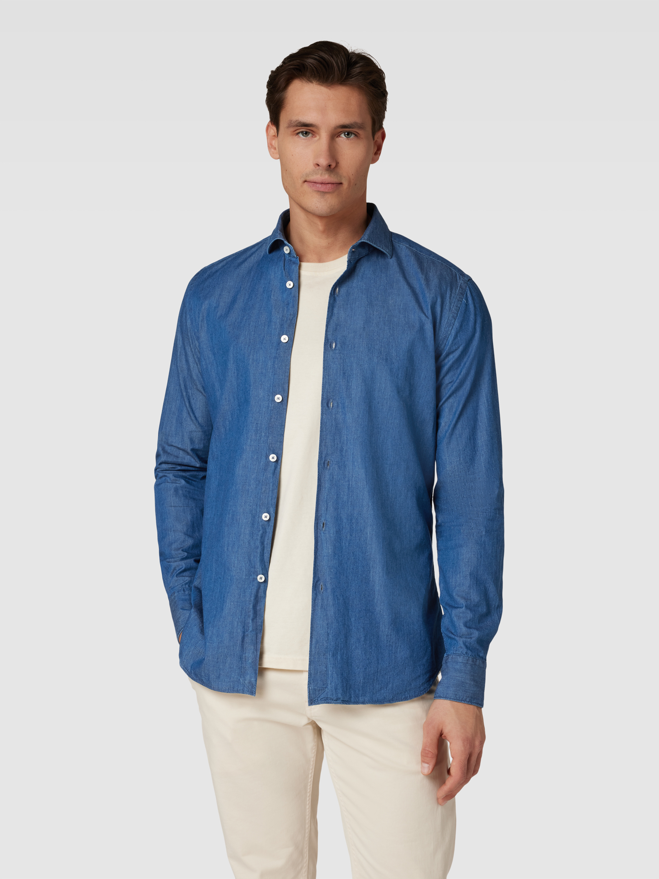 XACUSRegular Fit Businesshemd aus Uni Struktur in jeansblau