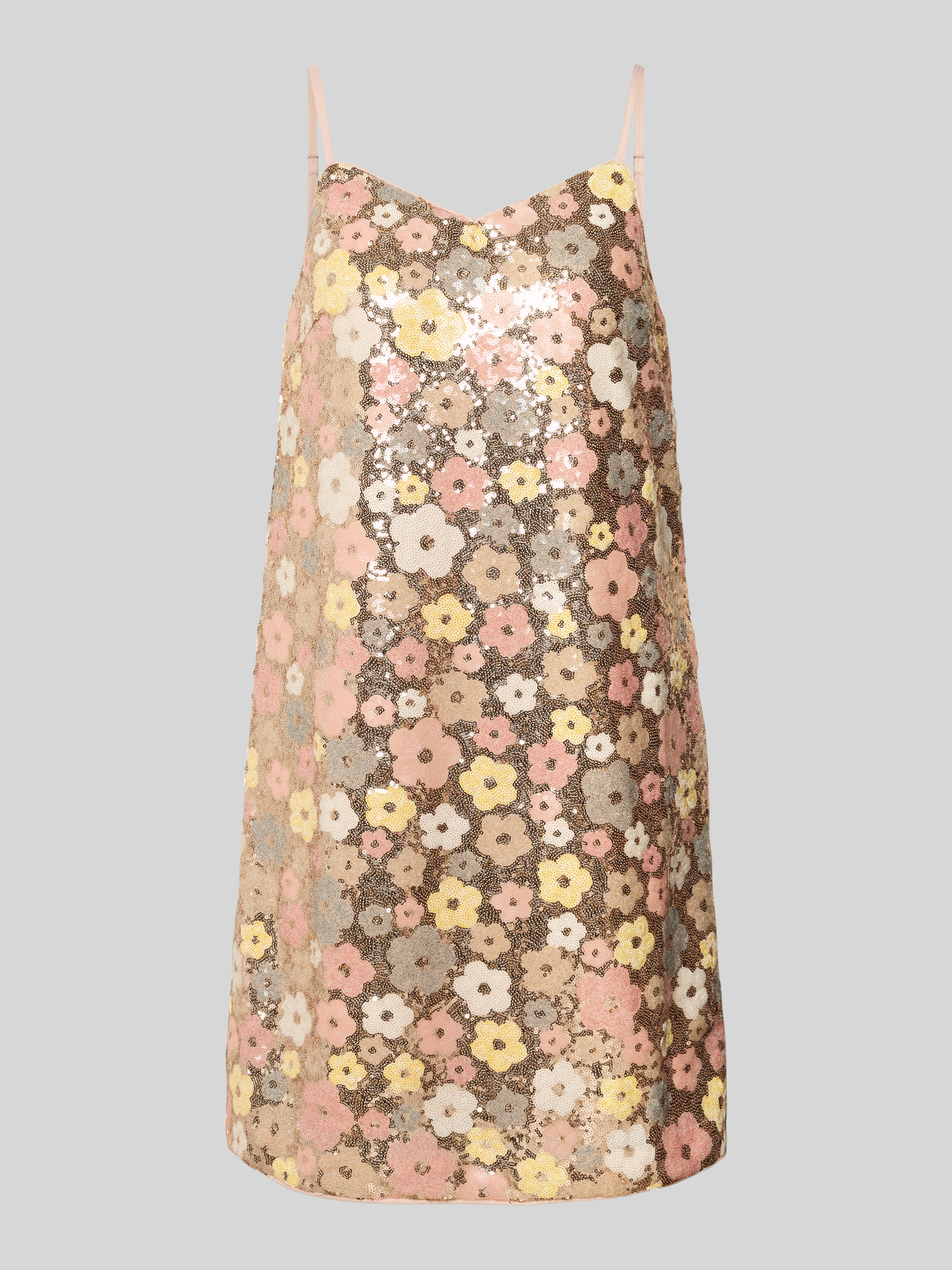 Das knielange Kleid Modell 'LALEA' von YAS vereint Eleganz und Komfort mit einem geraden Schnitt und funkelnden Pailletten. Die verstellbaren Spaghettiträger bieten Flexibilität in der Passform, während die knielange Silhouette eine zeitlose Anmutung verleiht, die sich vielseitig kombinieren lässt.