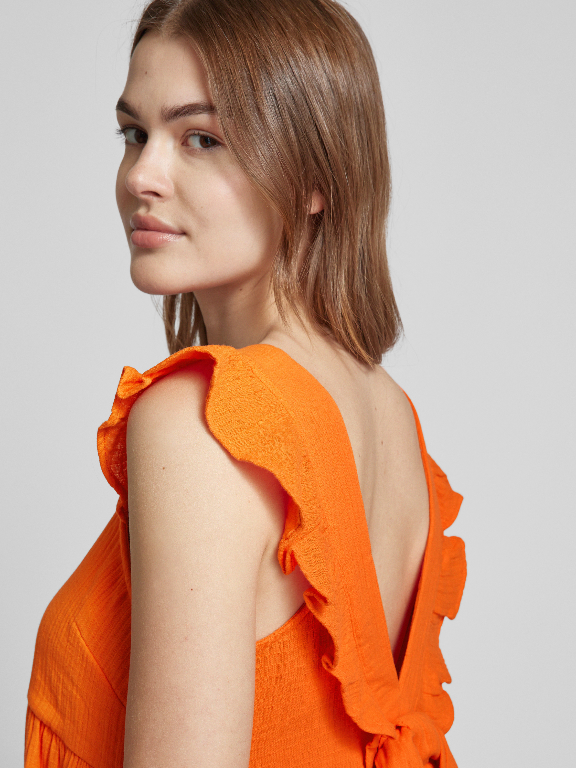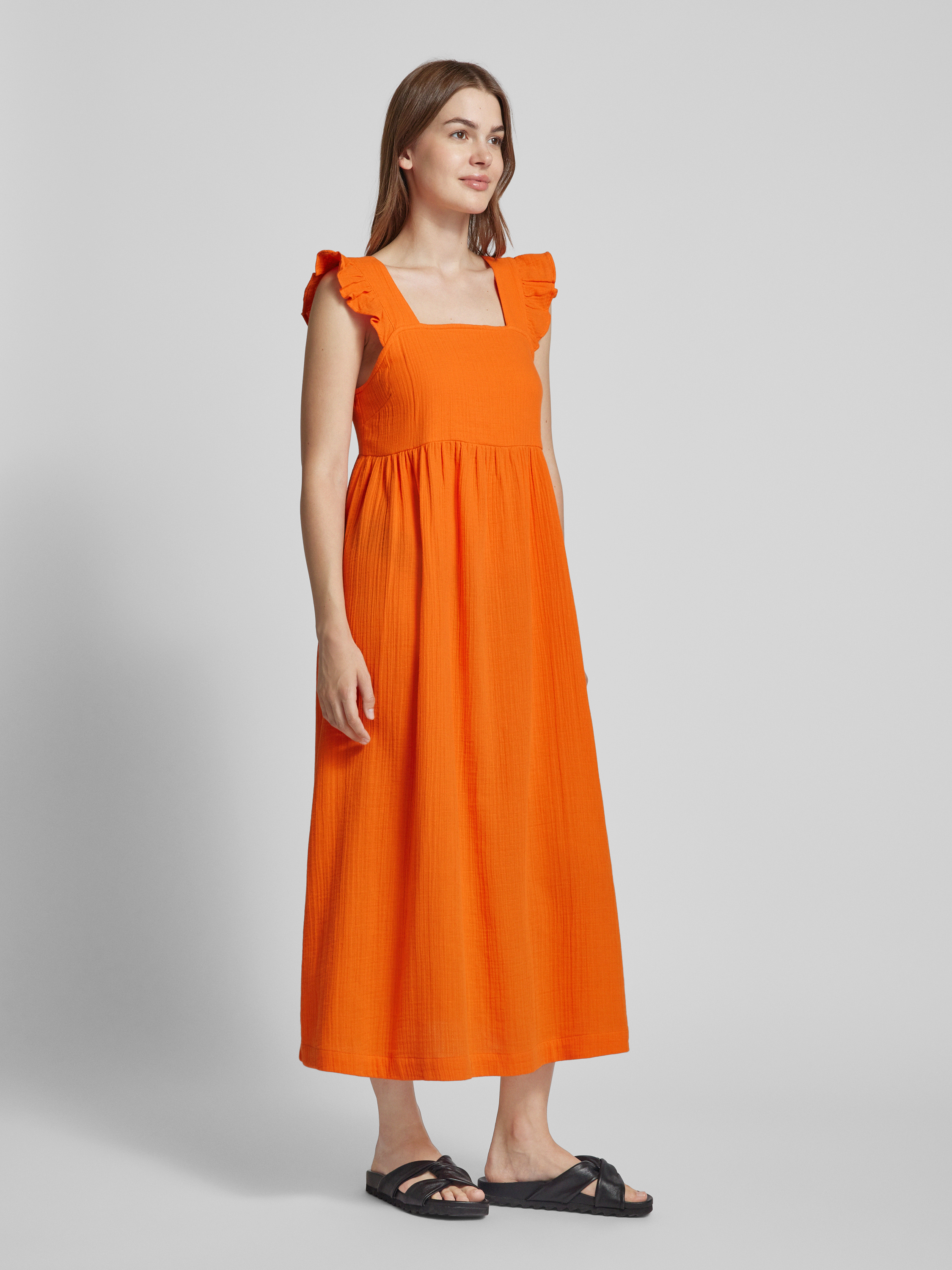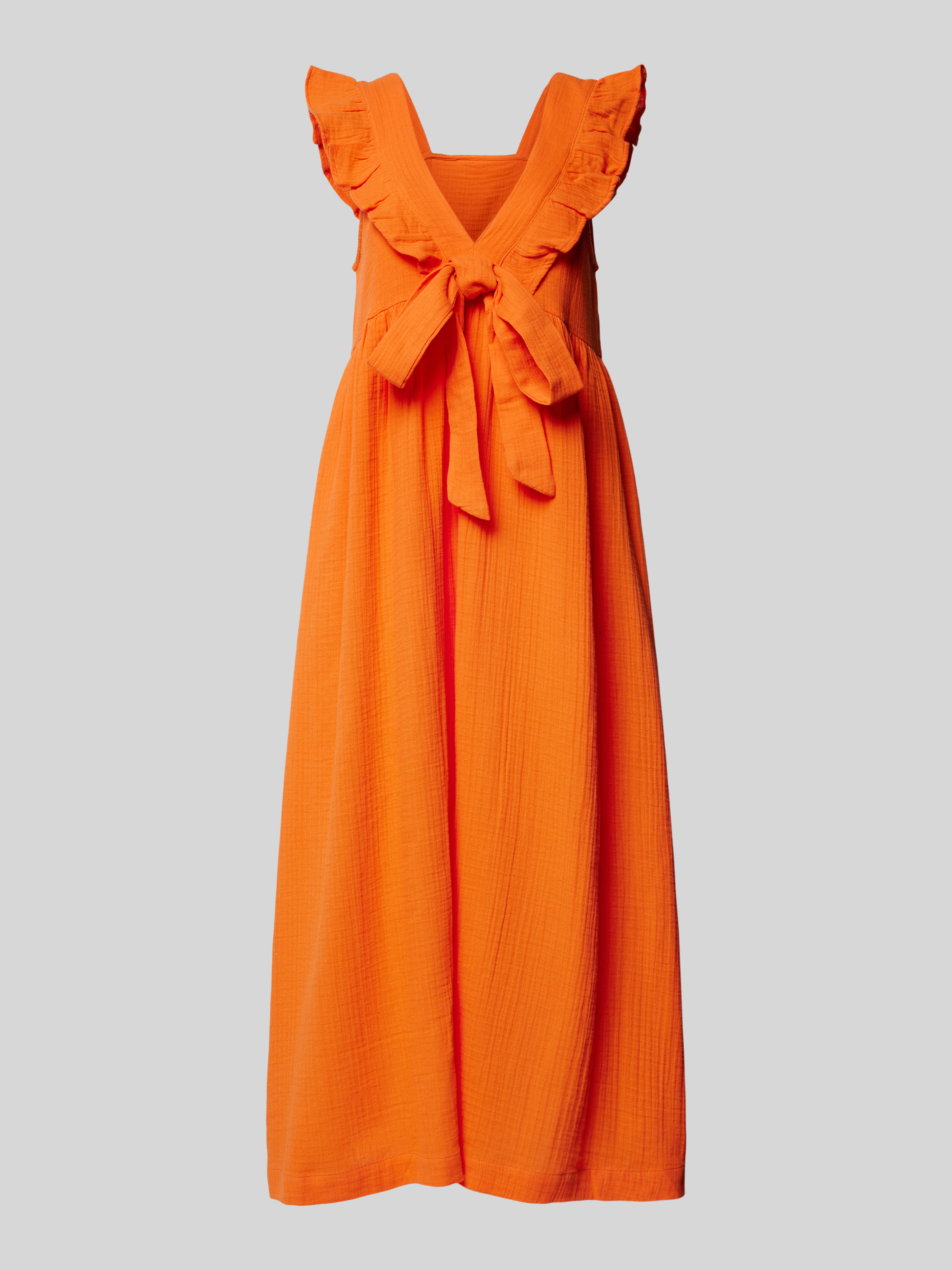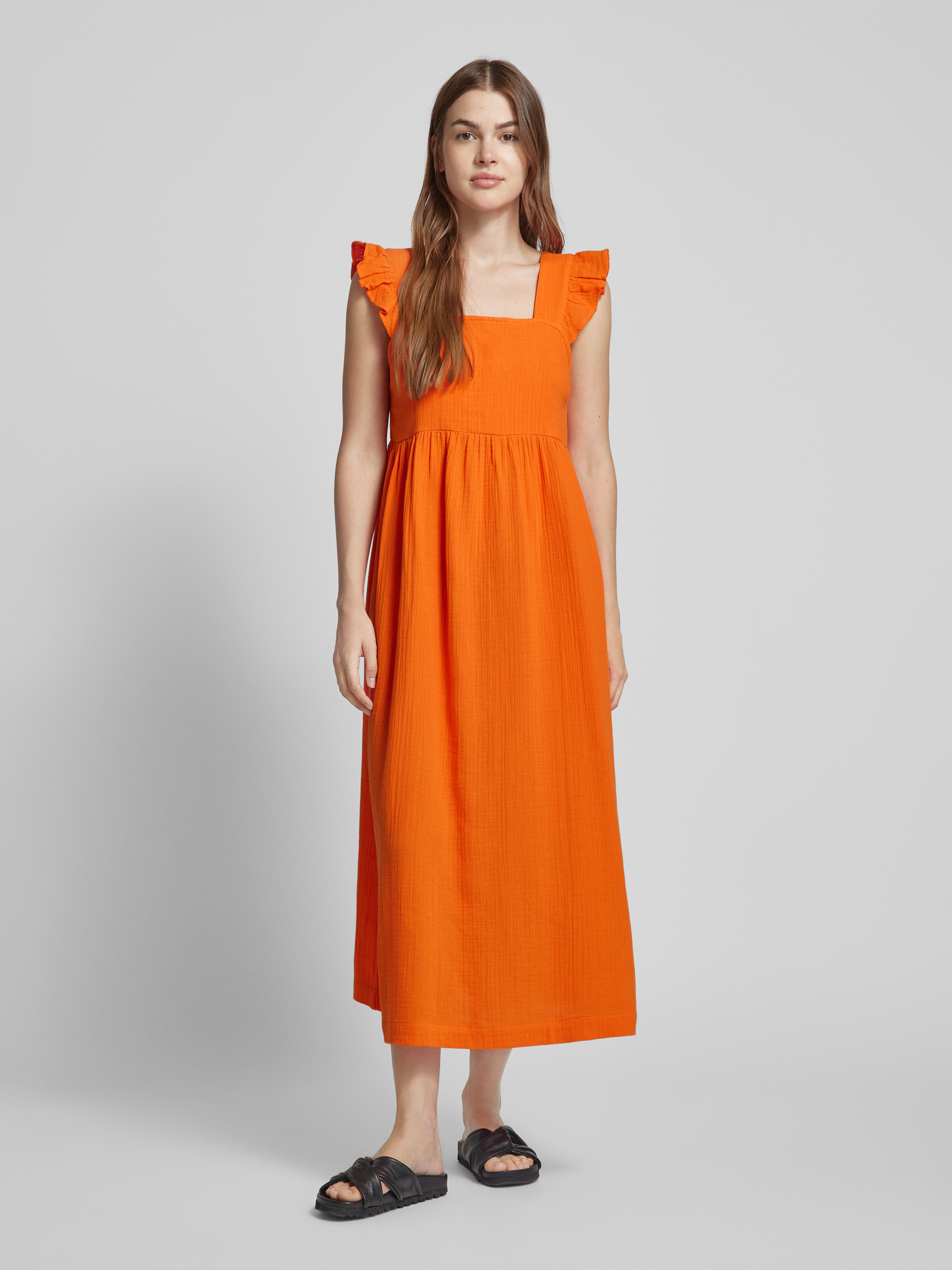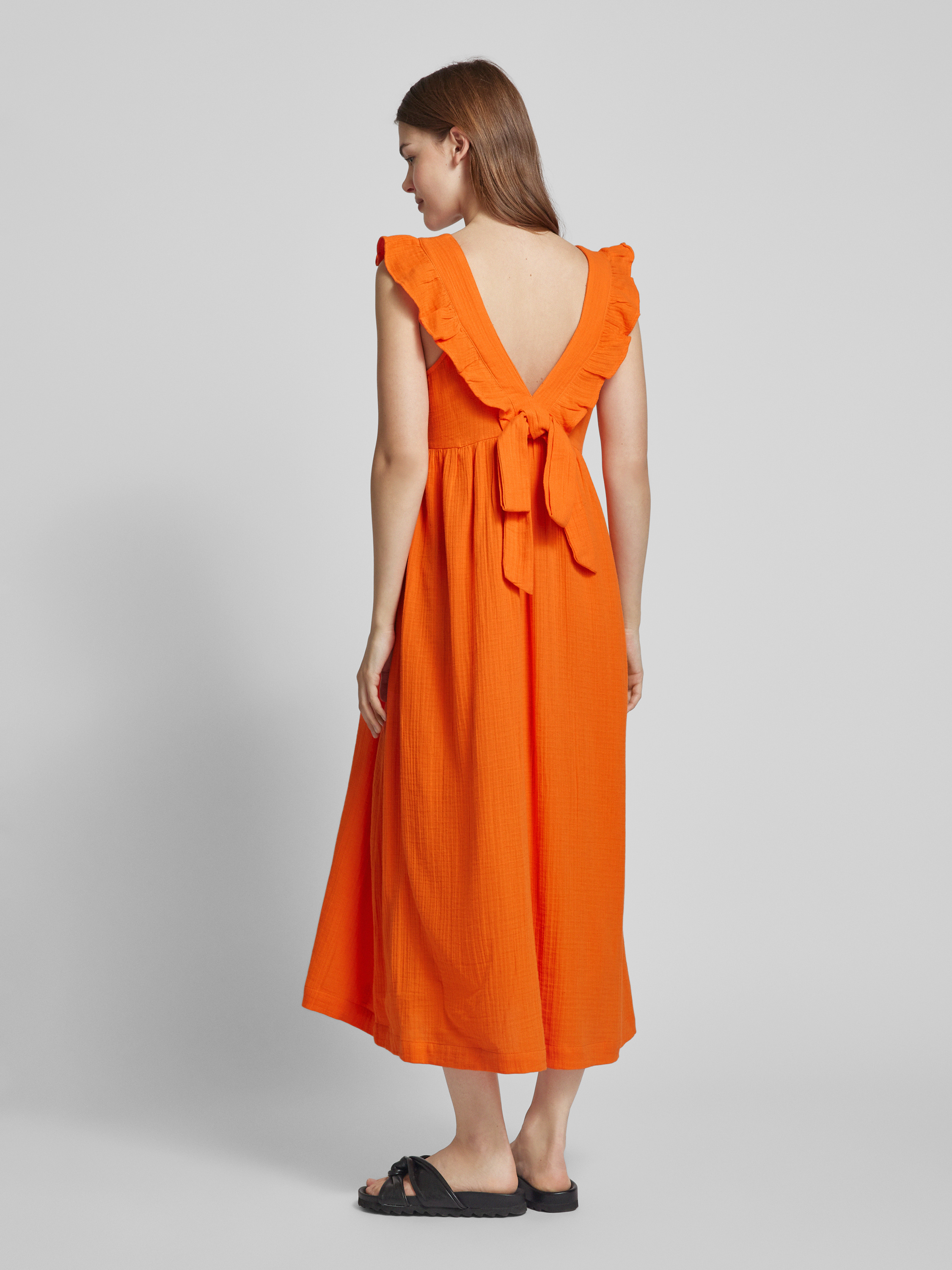 Das Midikleid 'VIMOLA' von Y.A.S. aus reiner Baumwolle präsentiert sich in einer femininen A-Linie, die durch charmante Volants und ein raffiniertes Strukturmuster ergänzt wird. Der V-Ausschnitt verleiht dem Kleid eine elegante Note, während der fließende Schnitt für angenehmen Tragekomfort sorgt. Ideal für diverse Anlässe, verbindet es Stil mit Leichtigkeit.