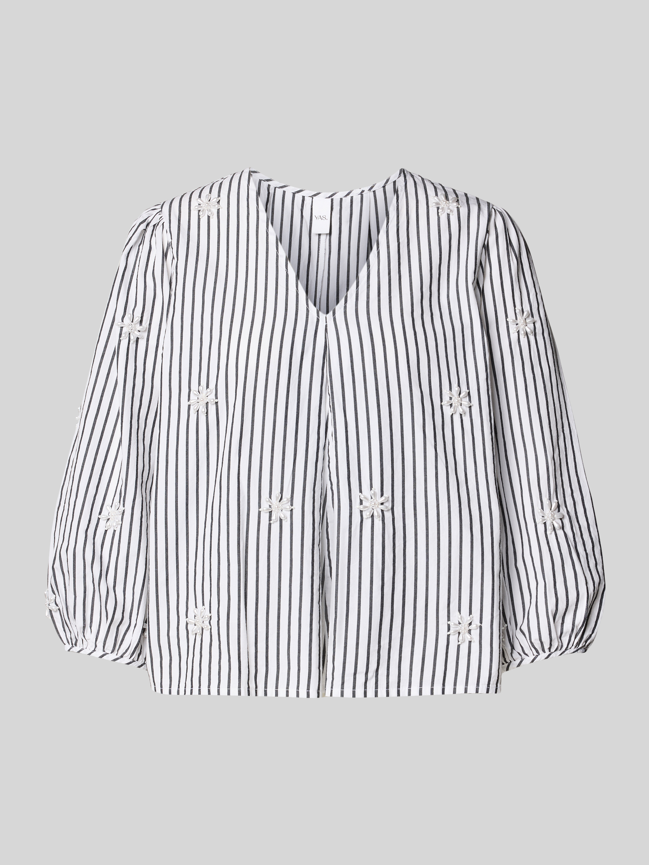 Die Regular Fit Bluse Modell 'EMURA' von Y.A.S. kombiniert reiner Baumwolle mit einem eleganten V-Ausschnitt und 3/4-Ärmeln, was einen angenehmen Tragekomfort ermöglicht. Feine Perlenakzente verleihen dem Design eine besondere Note. Diese Bluse eignet sich hervorragend für vielfältige Anlässe.