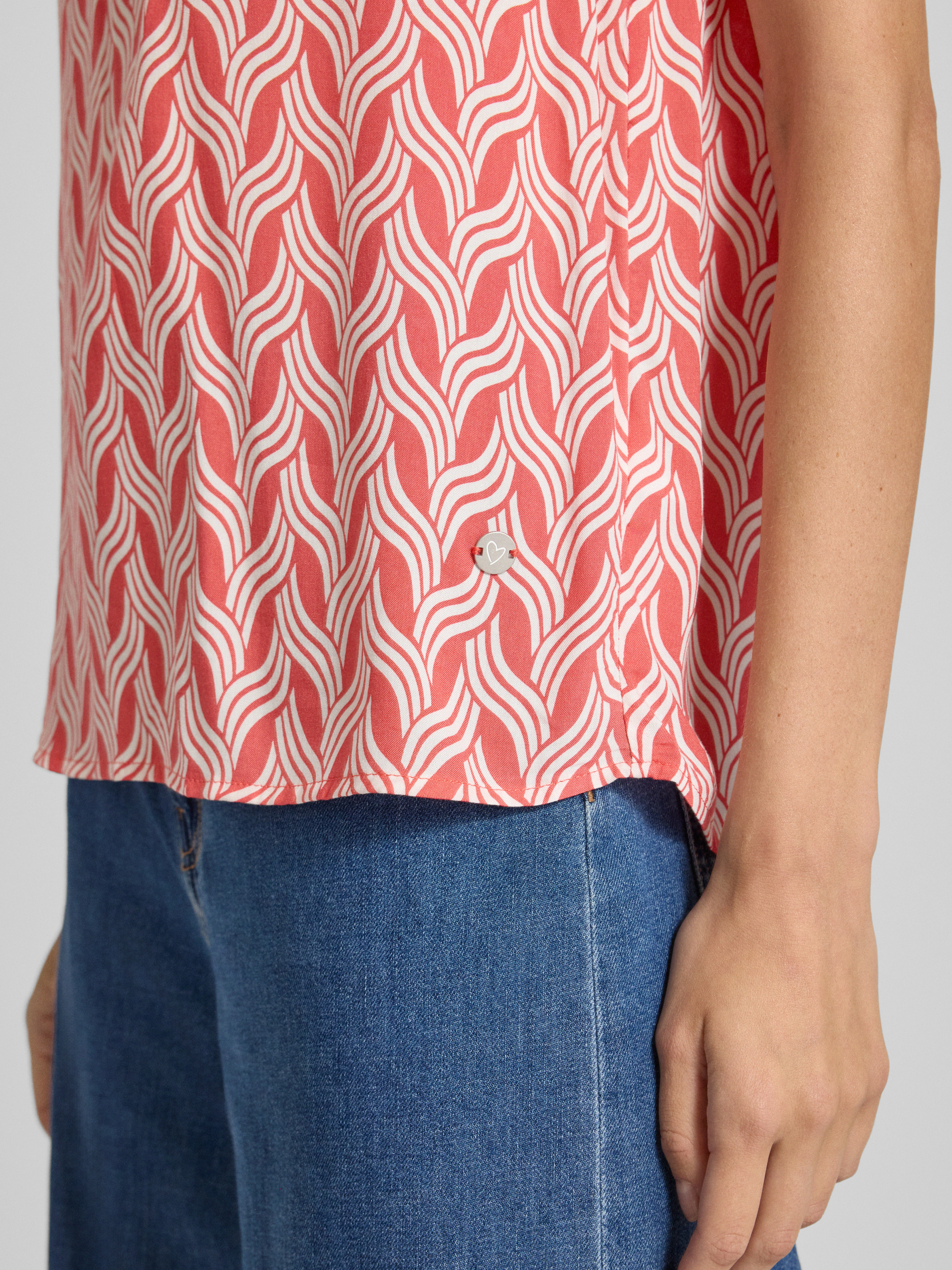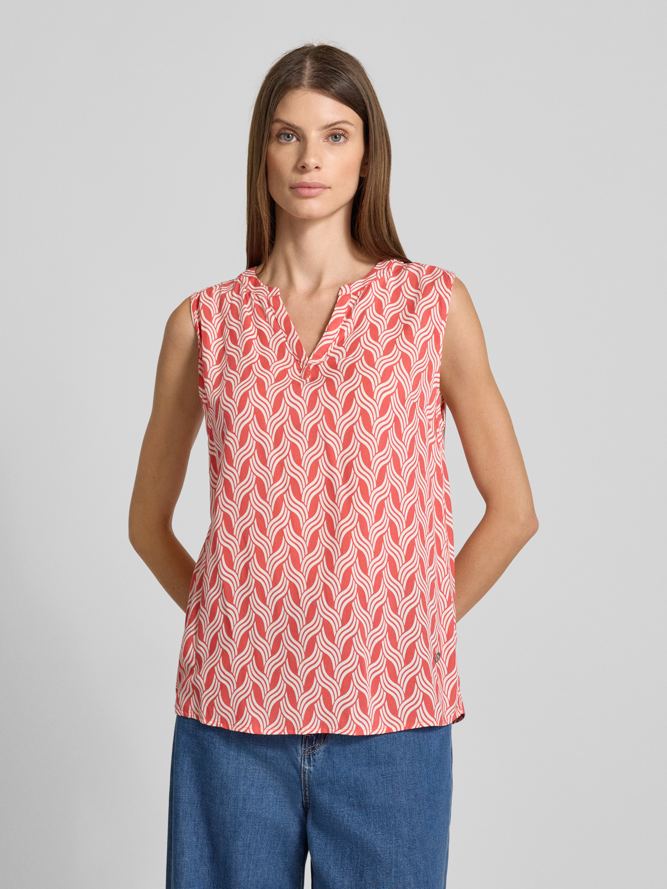 Das Blusentop von ZABAIONE zeigt sich mit einem klassischen V-Ausschnitt und geradem Schnitt, wodurch es vielseitig kombinierbar bleibt. Die leichte Viskose sorgt für ein angenehmes Tragegefühl, während der Regular Fit Bewegungsfreiheit ermöglicht. So eignet sich das Modell für entspannte wie auch gepflegte Outfits.