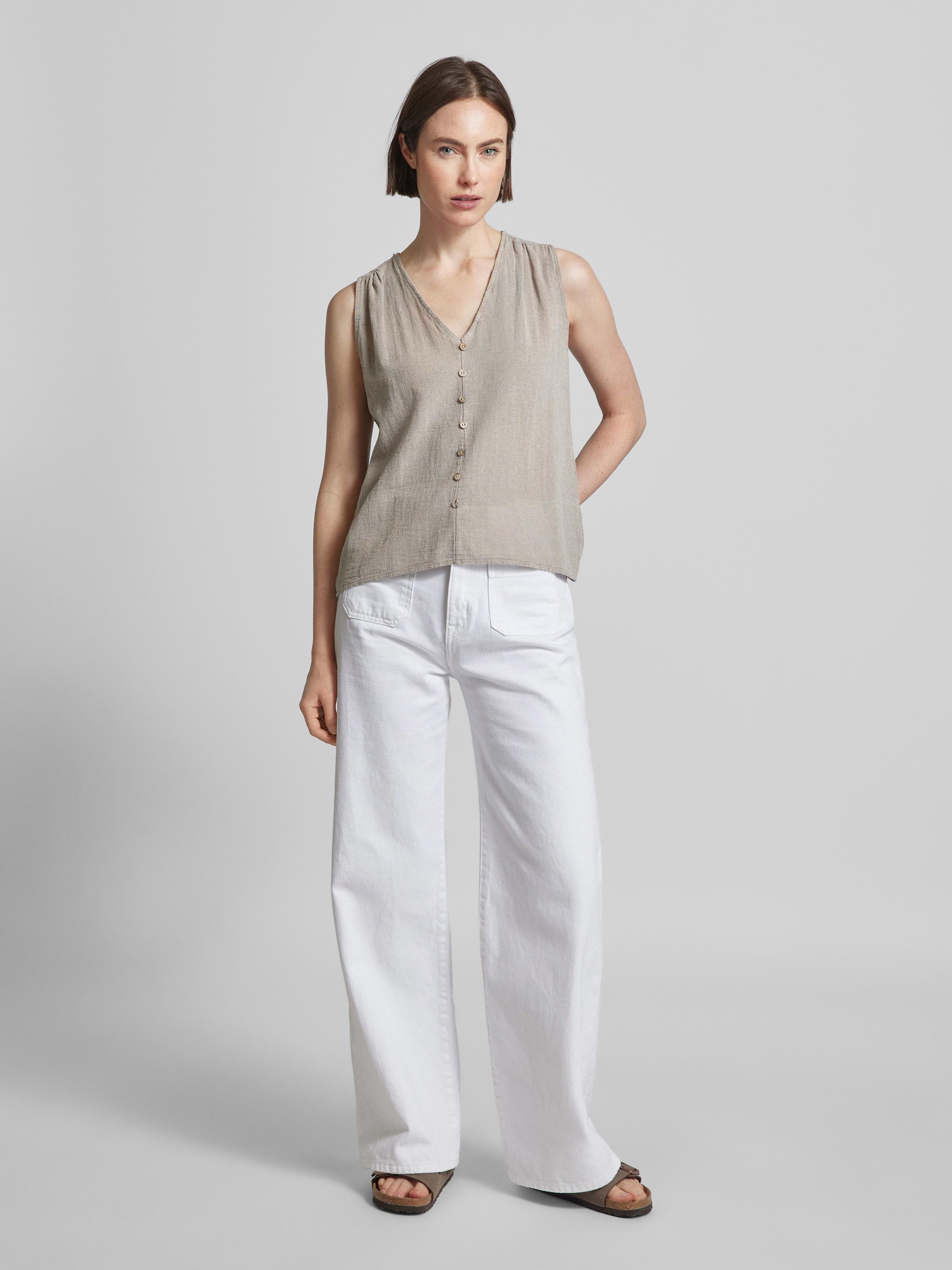 Das Blusentop 'Da44ria' von ZABAIONE besticht durch seine gerade Passform und den eleganten V-Ausschnitt. Die unifarbene Optik und die Zierknopfleiste verleihen dem Top eine besondere Note. Reine Baumwolle sorgt für ein angenehmes Tragegefühl und Atmungsaktivität.