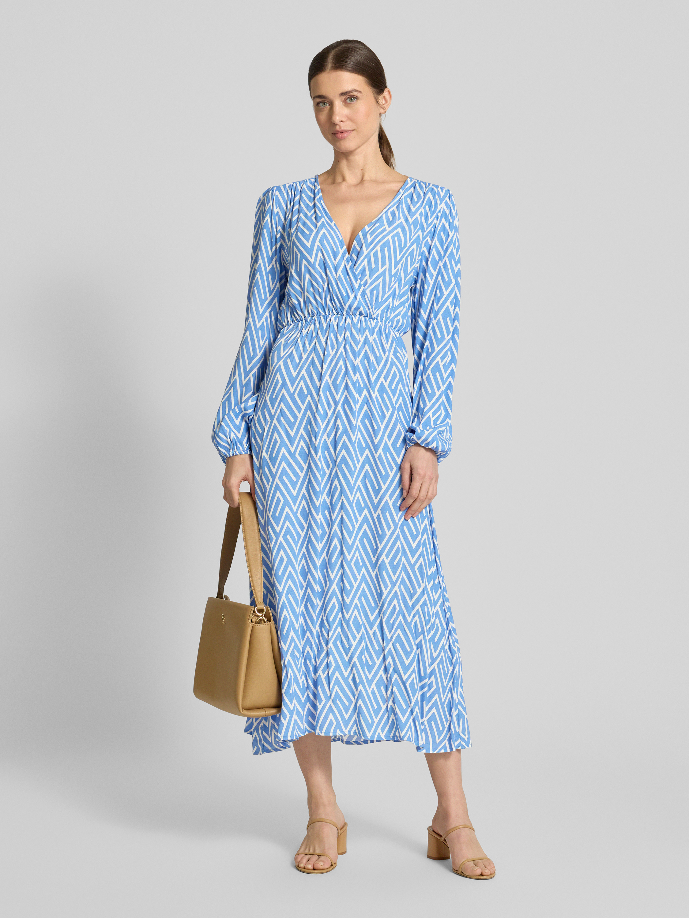 Das Midikleid in Wickel-Optik von ZABAIONE fällt durch seinen lockeren Schnitt angenehm leicht und sorgt dank V-Ausschnitt für eine legere Silhouette. Die reine Viskose fühlt sich sanft auf der Haut an und schafft ein luftiges Tragegefühl. So eignet sich das Modell besonders für entspannte Tage.