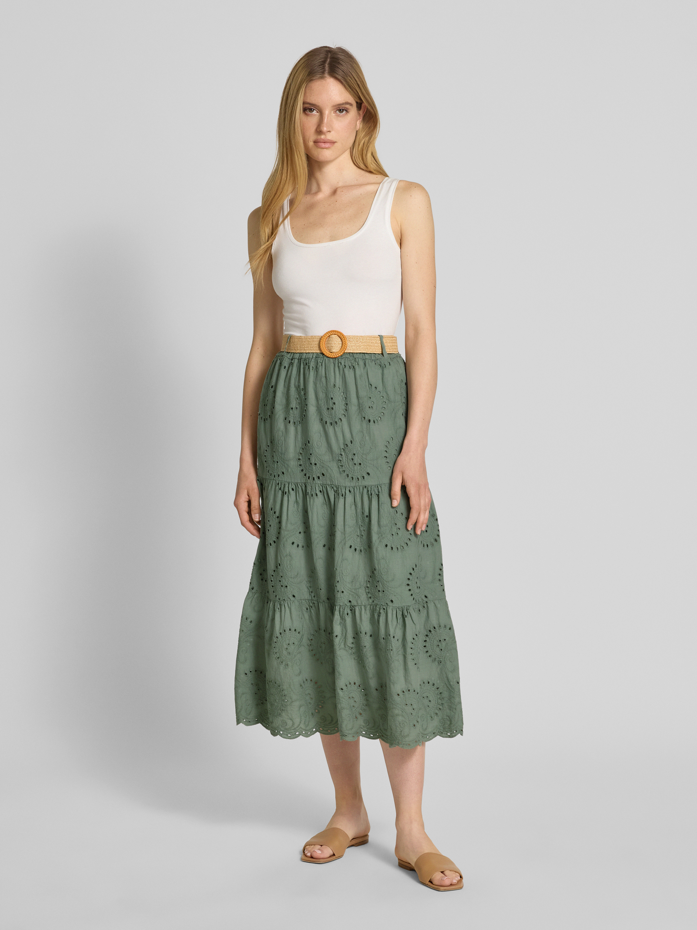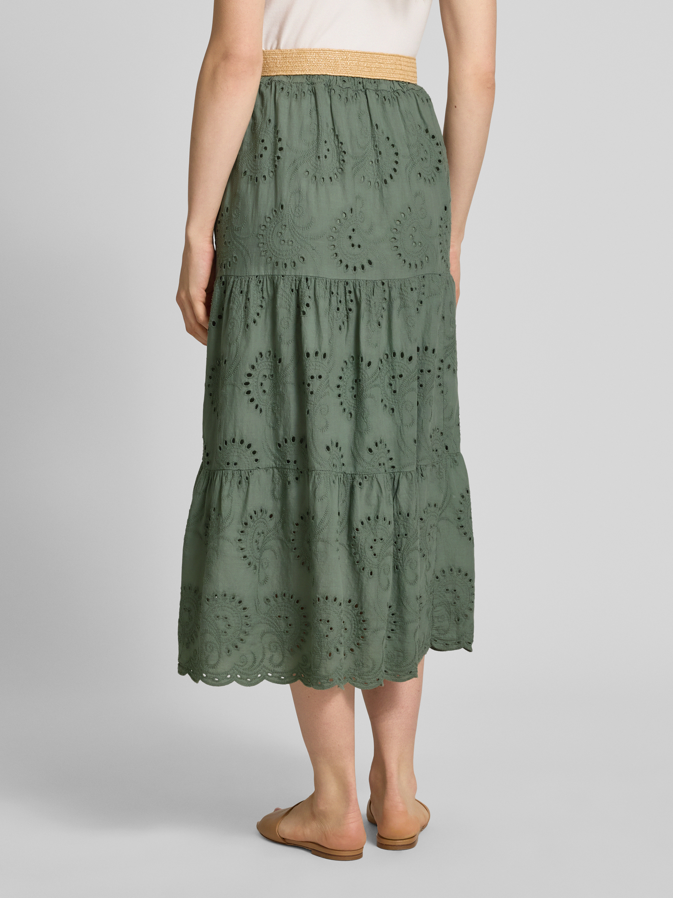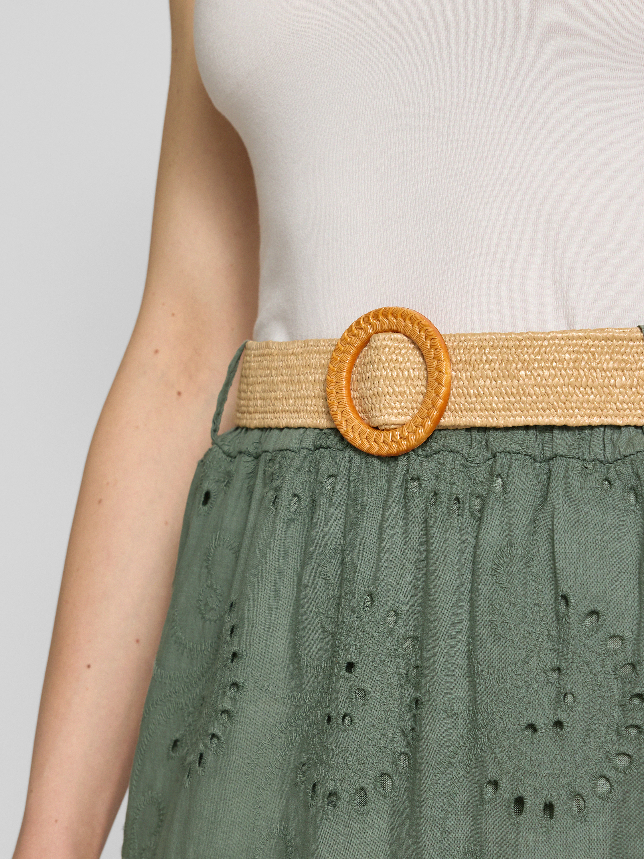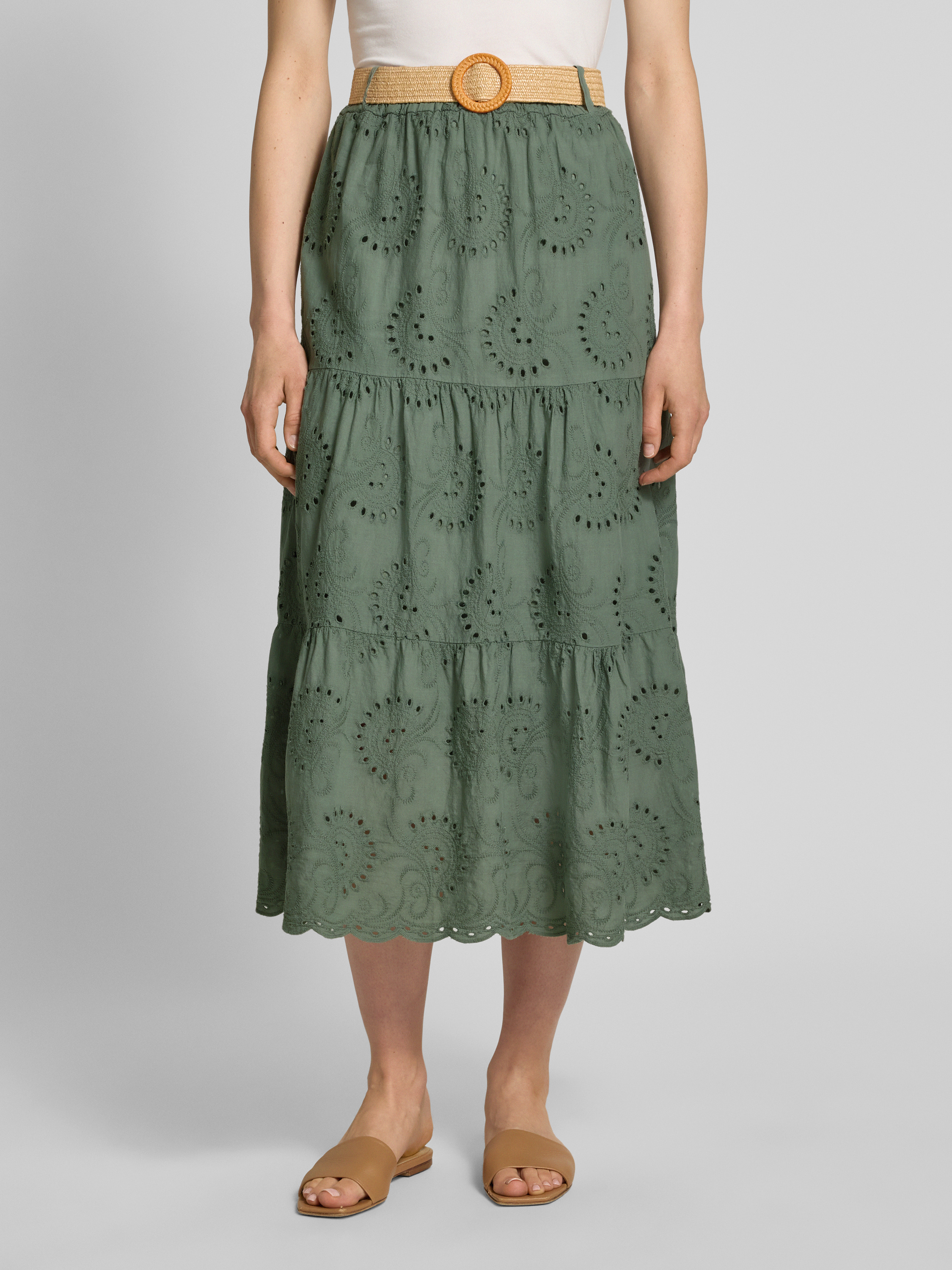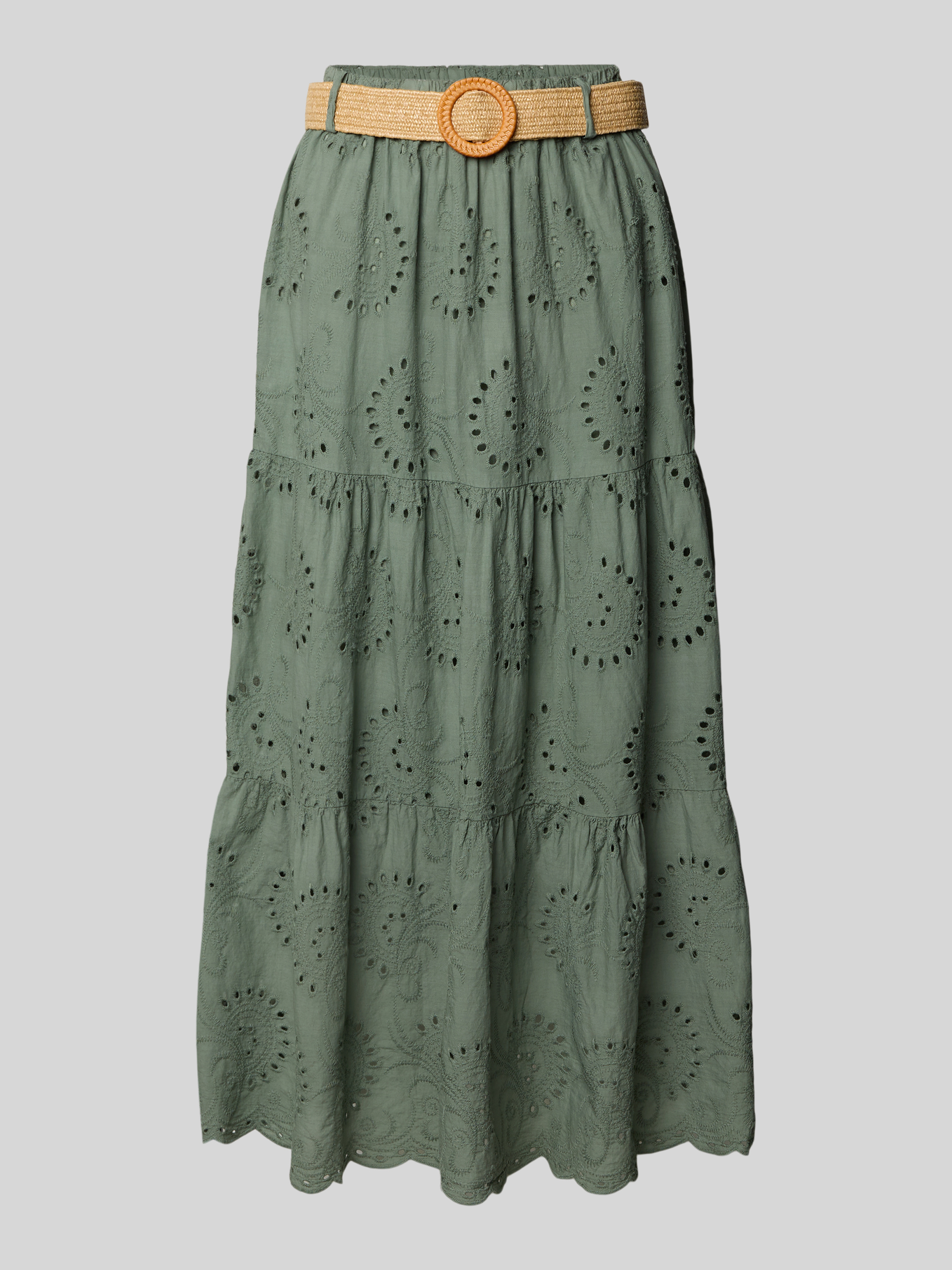 ZABAIONEMidirock mit Lochstickerei und Gürtel in khaki