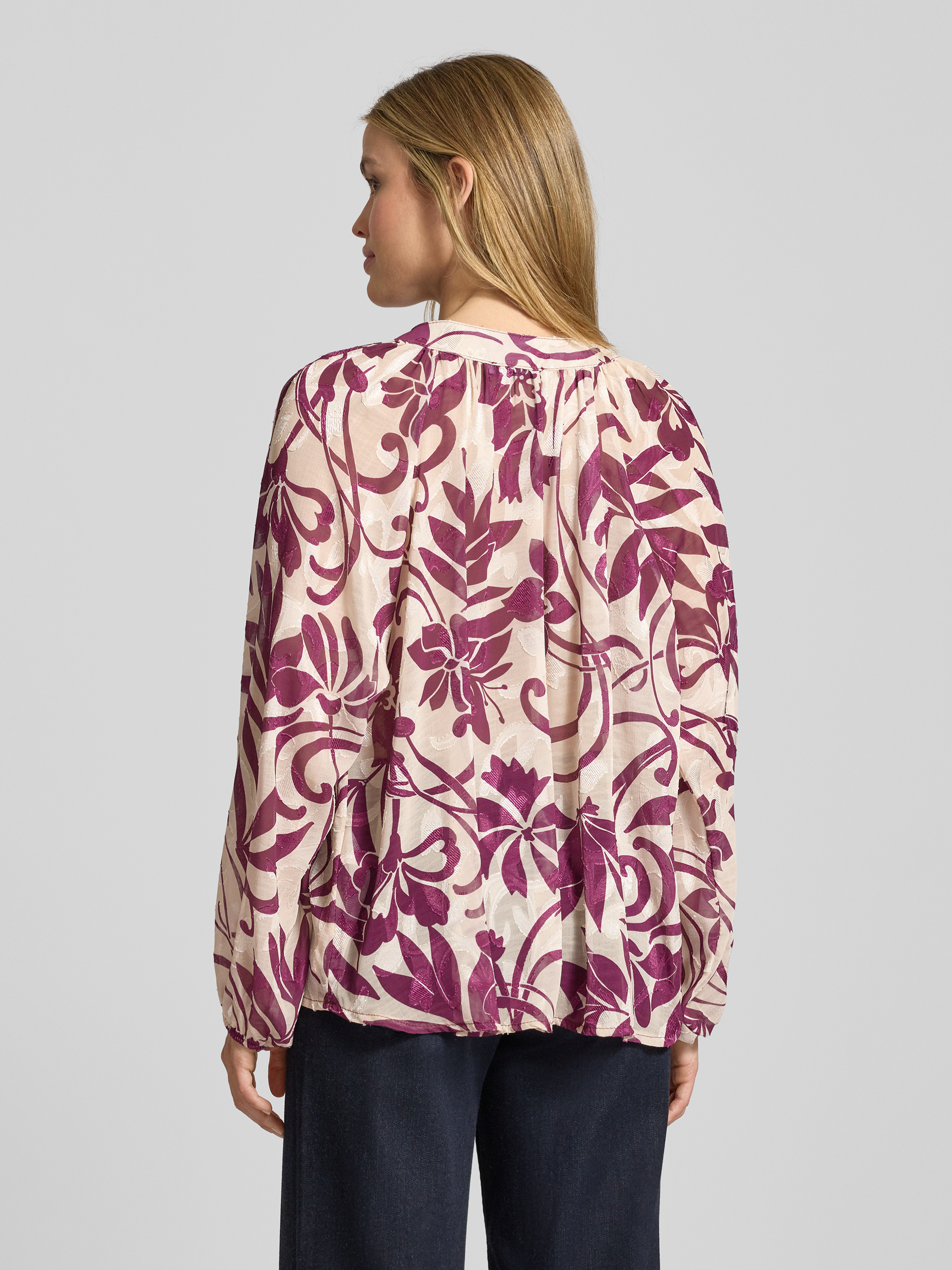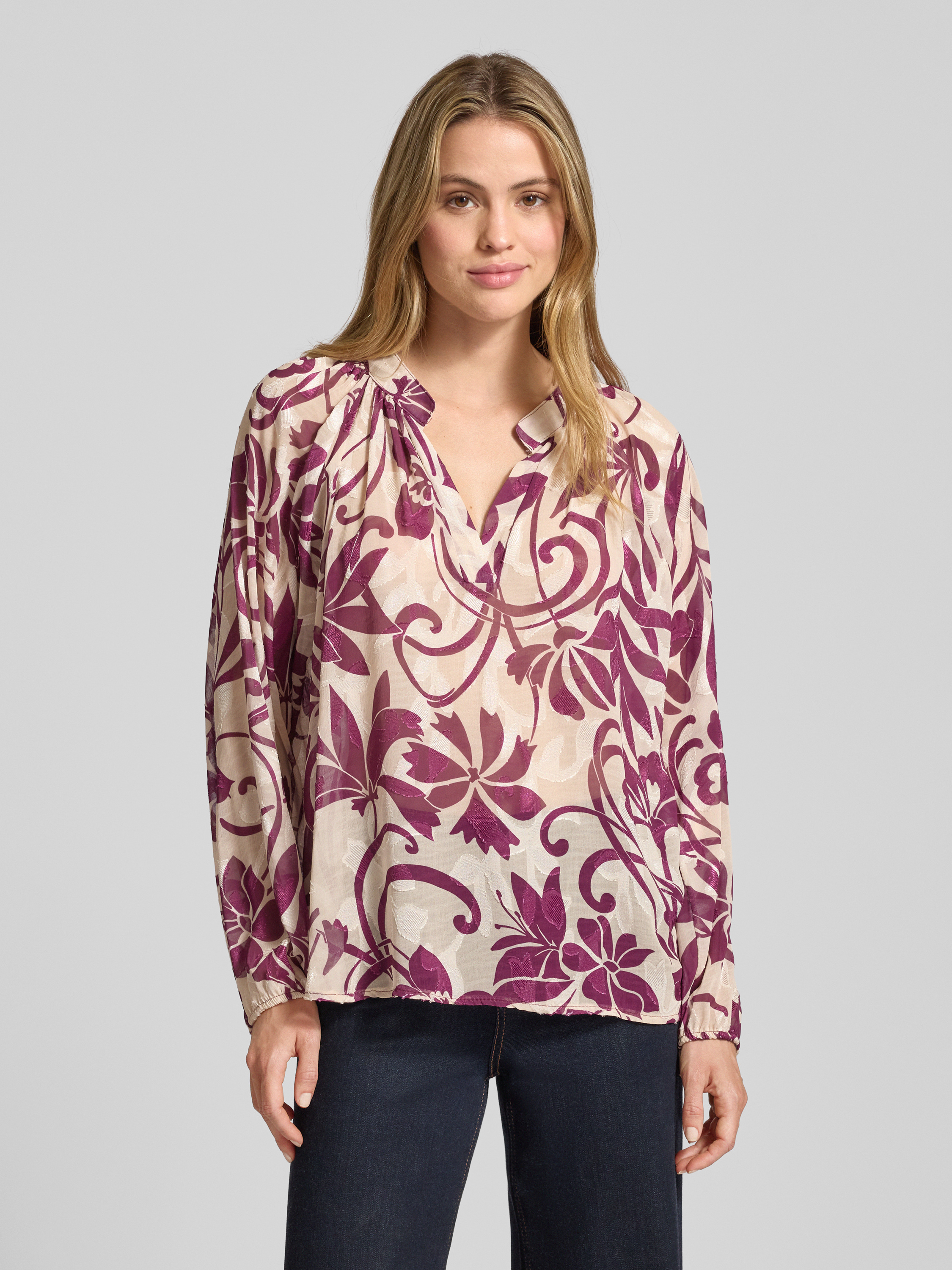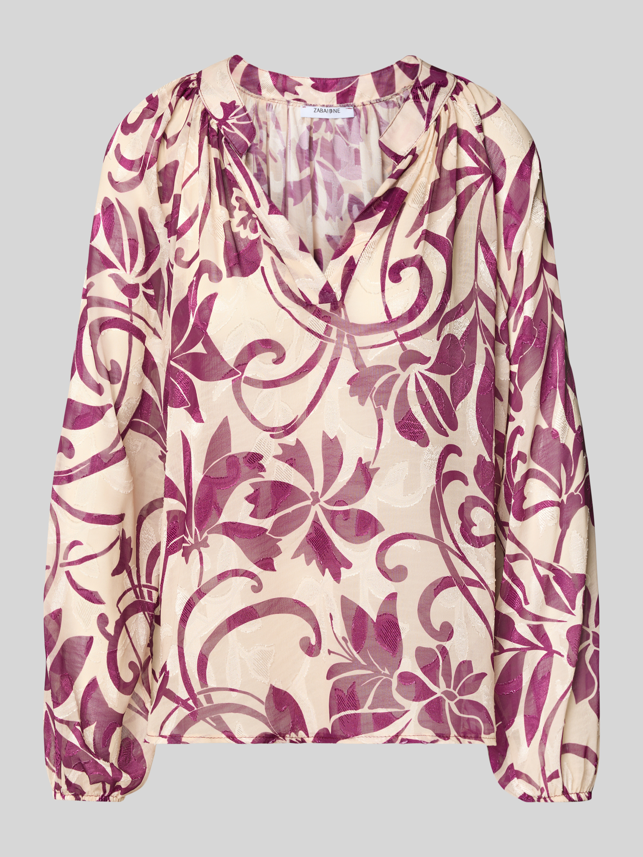 Die Regular Fit Bluse mit V-Ausschnitt von ZABAIONE fällt angenehm locker und sorgt durch das feine Strukturmuster für einen abwechslungsreichen Look. Dank der elastischen Ärmelabschlüsse bleibt Bewegungsfreiheit erhalten, während der eingefasste Saum einen dezenten Abschluss bildet. So eignet sich das Modell vielseitig für verschiedene Anlässe.