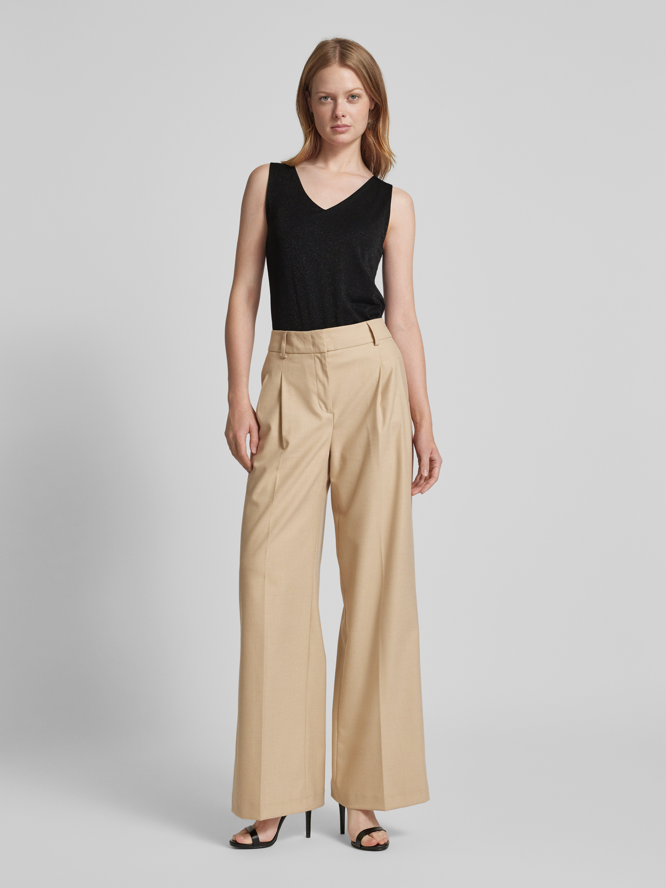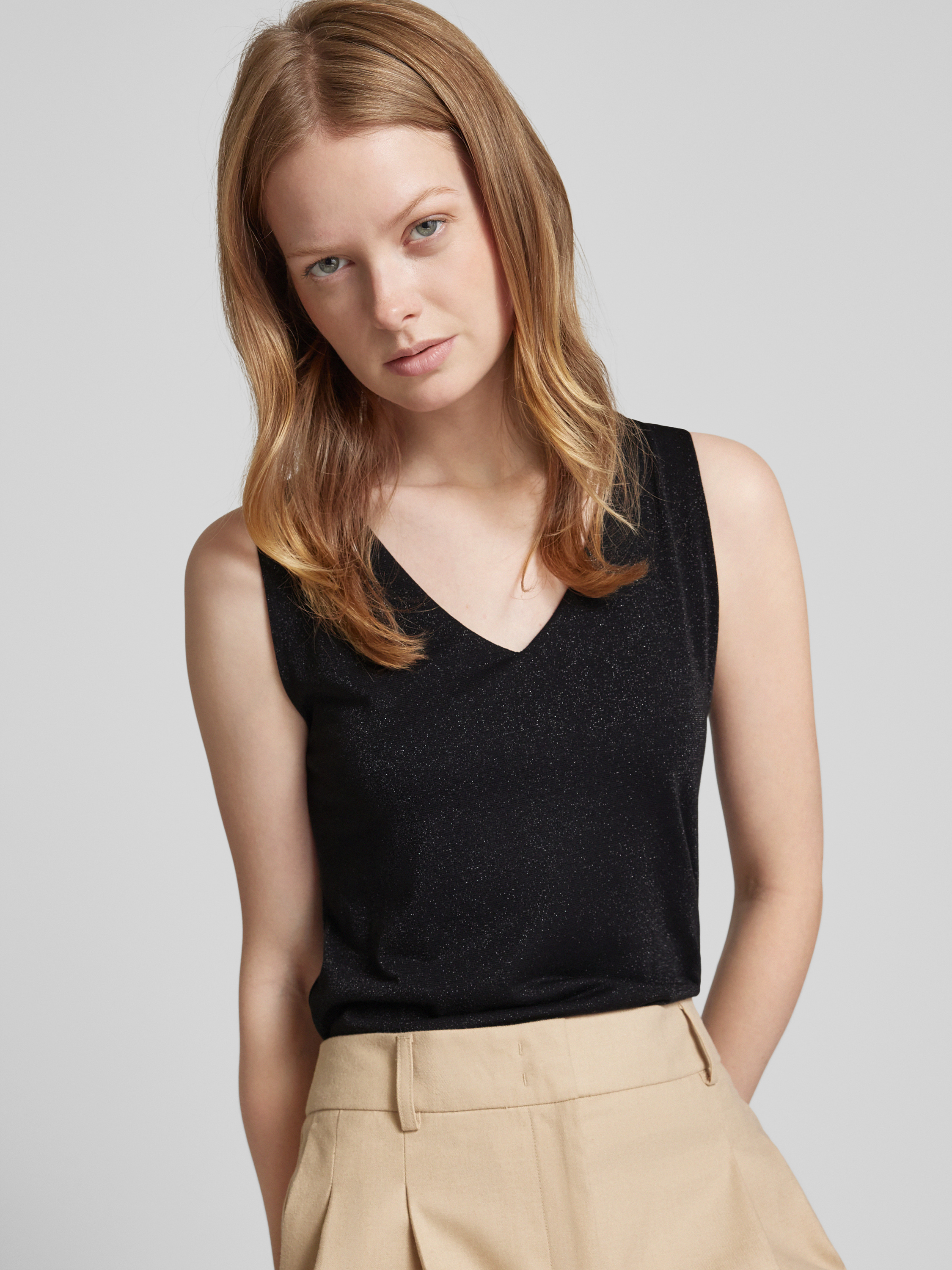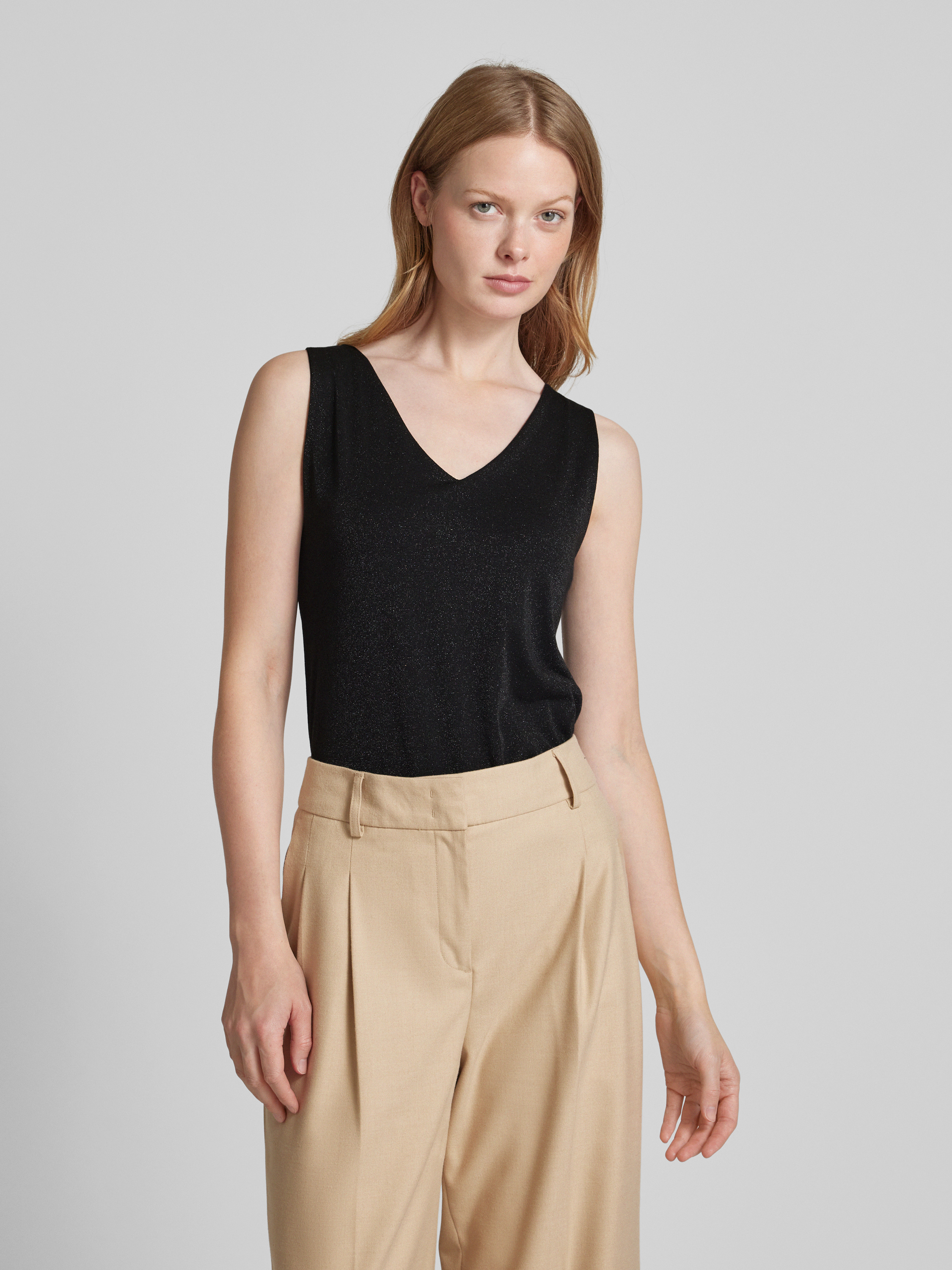 Das Damen Top von ZABAIONE aus einem Material-Mix mit Stretch-Anteil präsentiert sich in einem geraden Schnitt und bietet durch seinen V-Ausschnitt und breite Träger eine elegante Silhouette. Effektgarn verleiht dem Top eine besondere Struktur, die vielseitig kombinierbar ist.