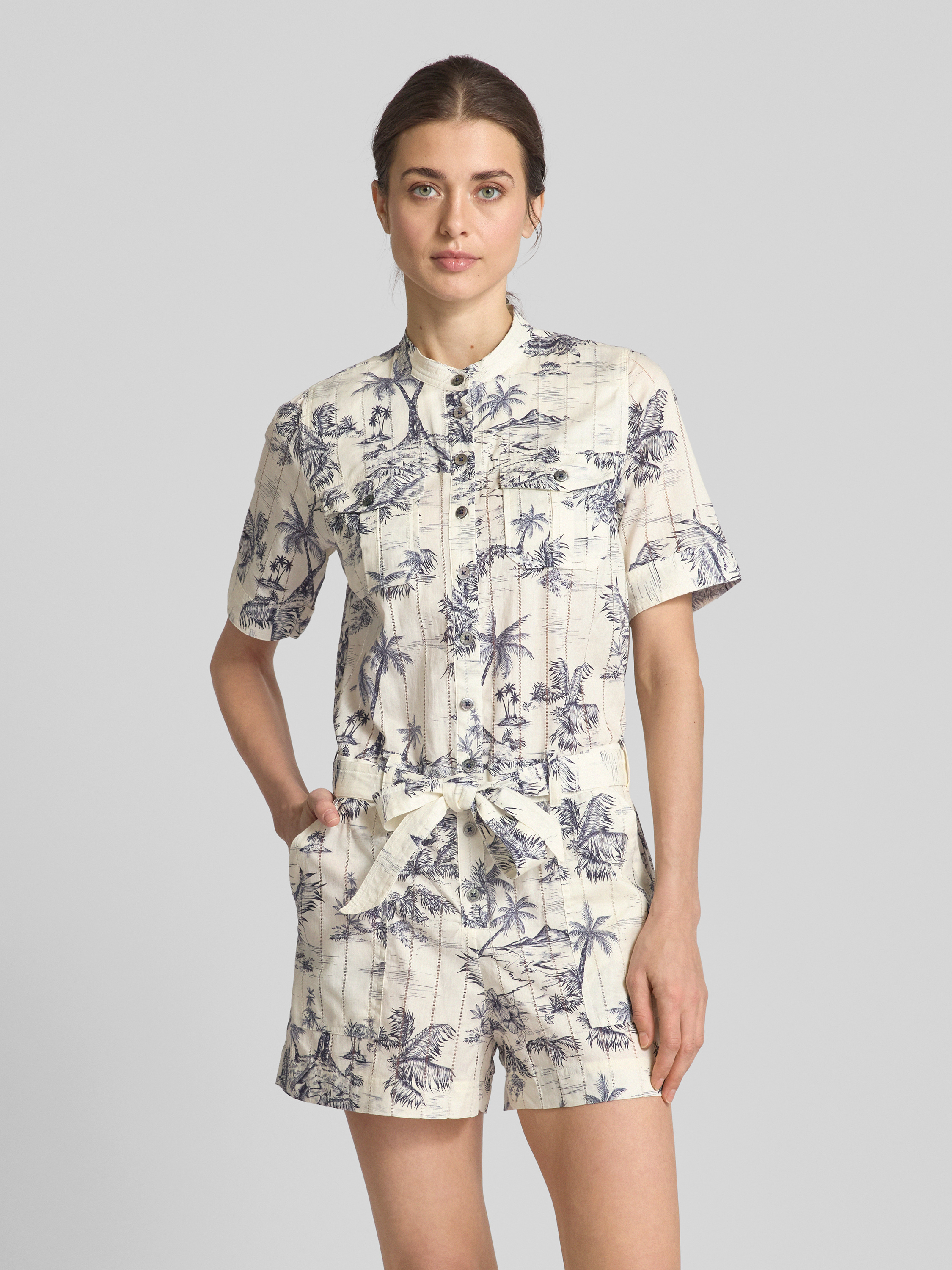 Der Damen Jumpsuit von Zadig&Voltaire, gefertigt aus reiner Baumwolle, besticht durch seinen geraden Schnitt und den charakteristischen Maokragen. Mit einem Bindegürtel lässt sich die Taille nach Belieben akzentuieren, während Brustpattentaschen und Eingrifftaschen praktischen Nutzen bieten. Ein vielseitiges Kleidungsstück für unterschiedliche Anlässe.